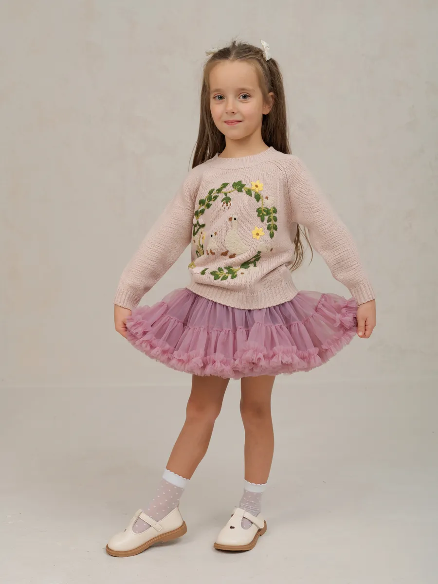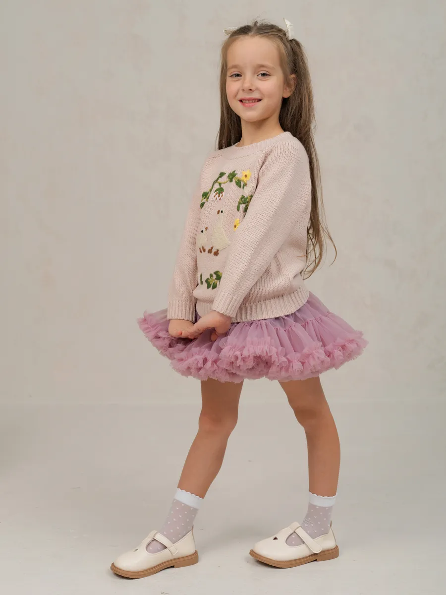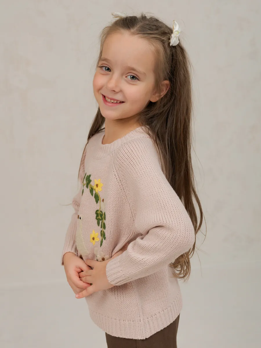 Джемпер вязаный для девочки с вышивкой от бренда ЭЛИС станет любимой вещью в гардеробе юной модницы.