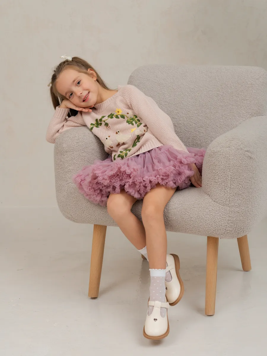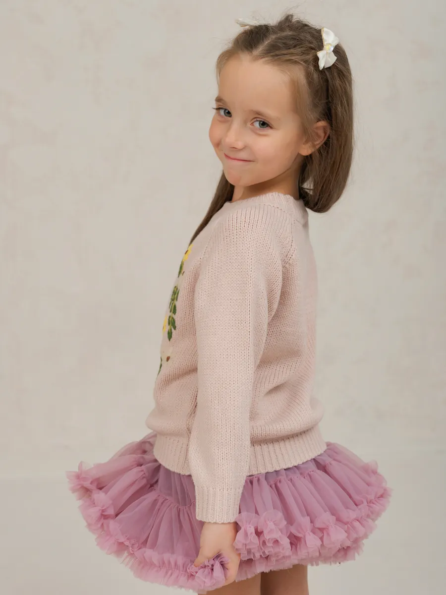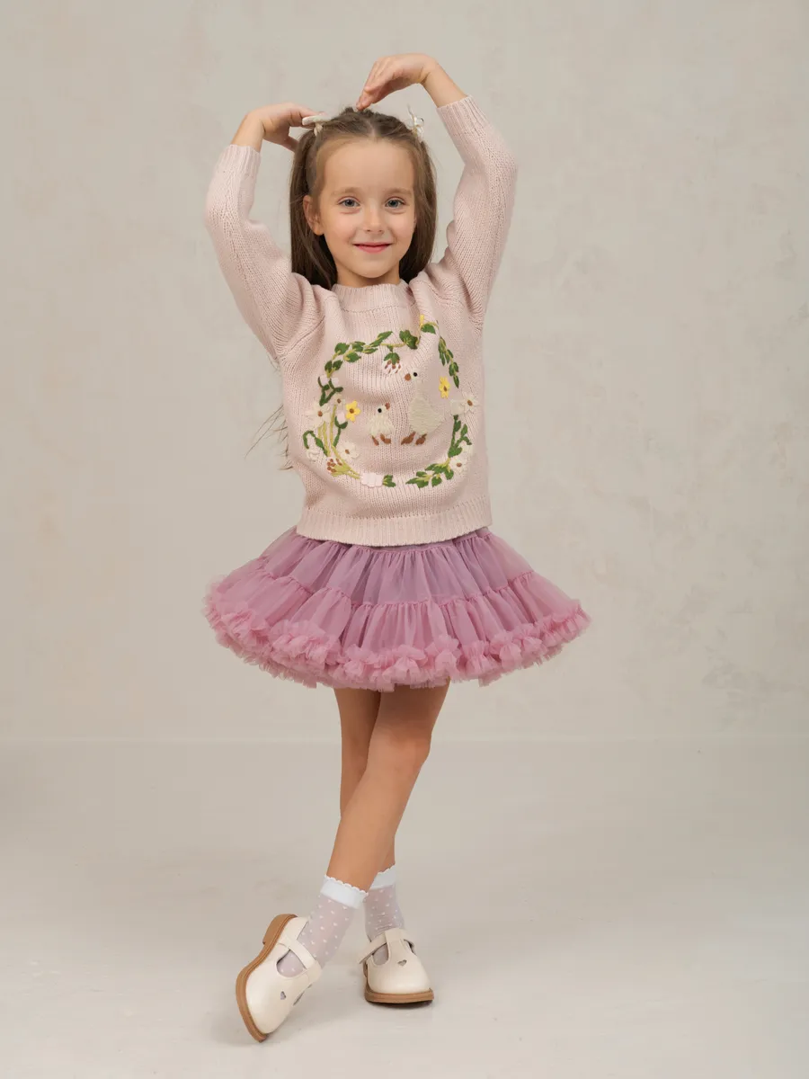 Джемпер вязаный для девочки с вышивкой от бренда ЭЛИС станет любимой вещью в гардеробе юной модницы.