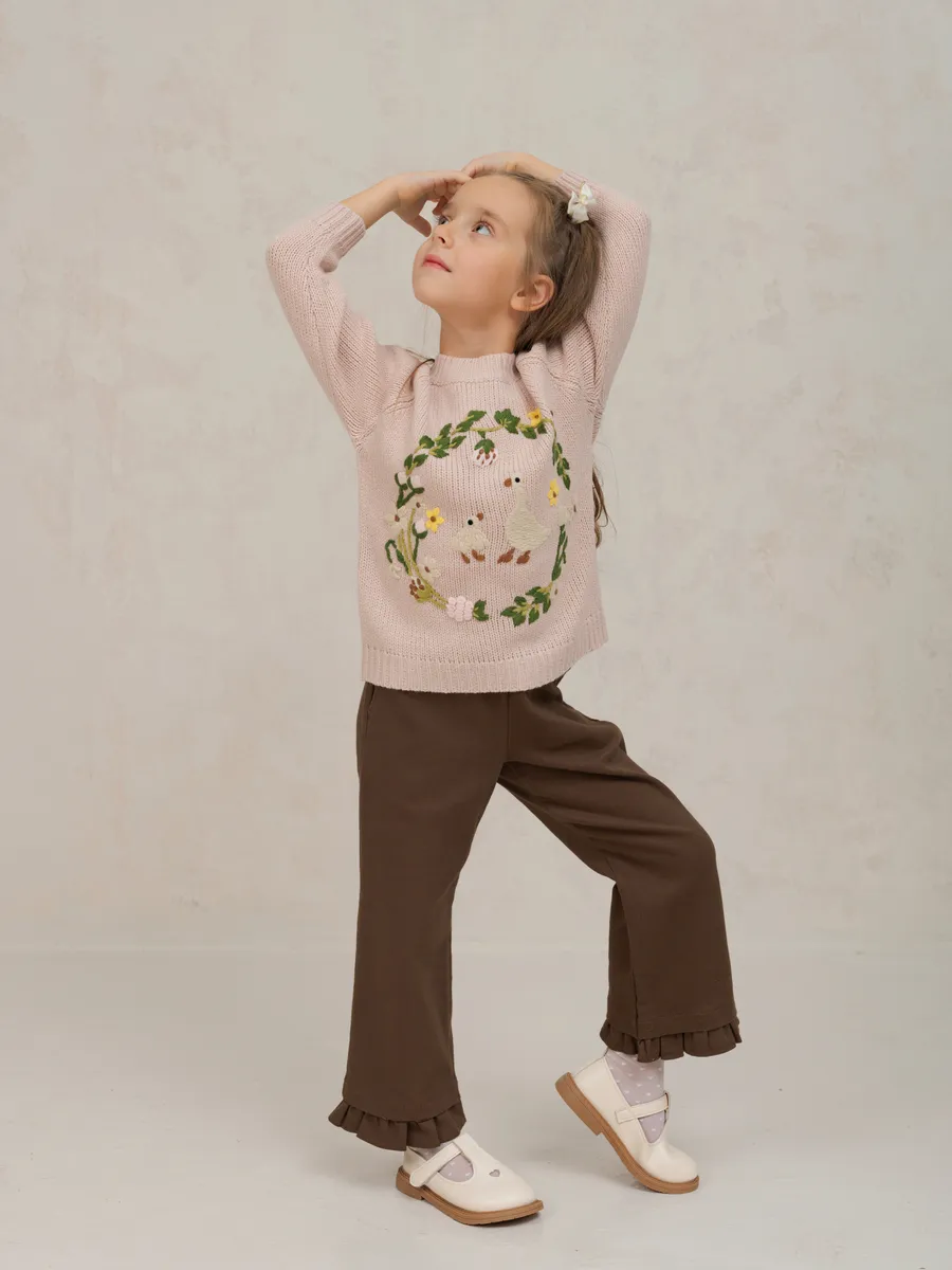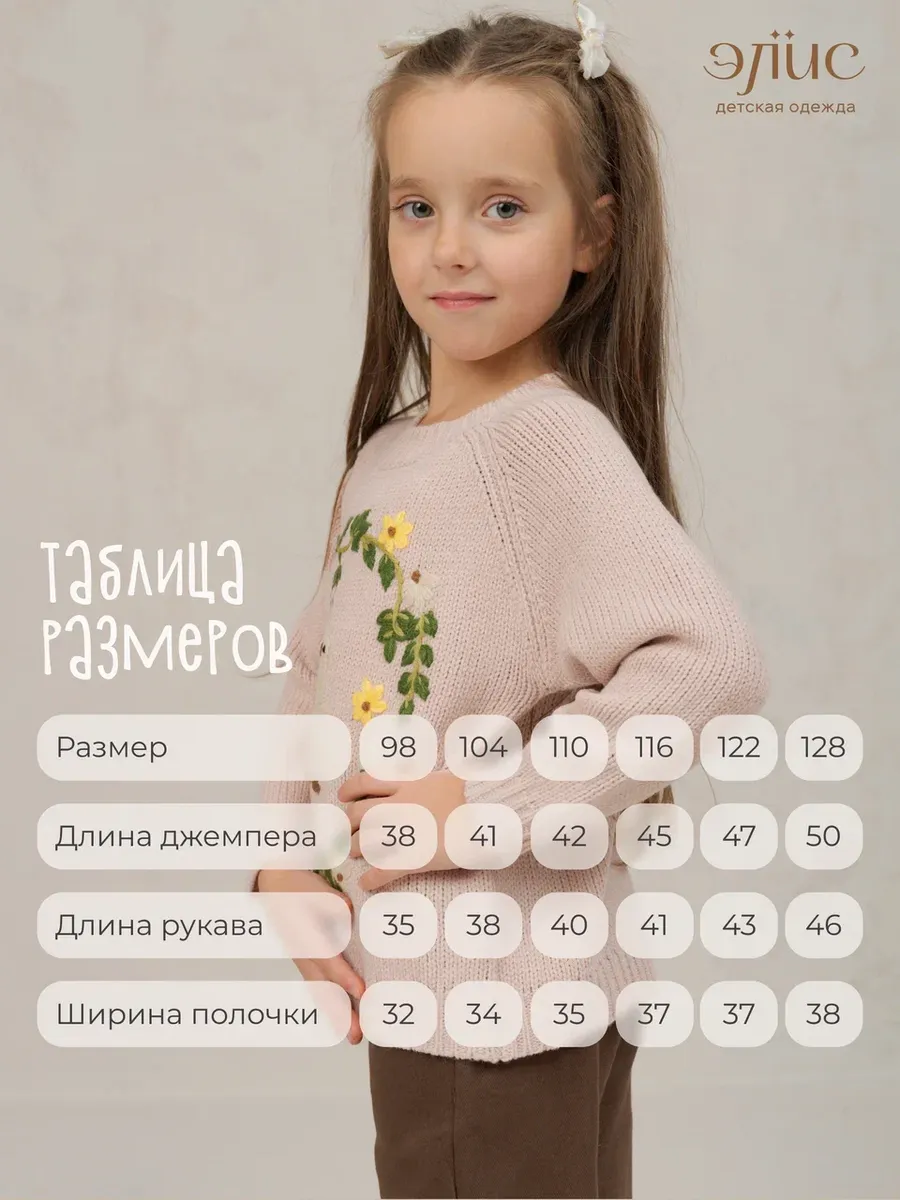 Этот вязаный джемпер для девочки - идеальный выбор для комфортной и стильной повседневной носки. Элегантный свитер соединяет практичность и декоративные элементы, создавая неповторимый образ. Вышивка на кофте добавляет изюминку и привлекает внимание, подчеркивая индивидуальность юной модницы.Данная модель прекрасно подходит как для школы, так и для более праздничных случаев. Теплая кофта согреет вашу маленькую принцессу в прохладные дни весны и осени. Она изготовлена из мягкого трикотажа, что обеспечивает комфорт в течение дня, а удобный фасон не стесняет движений. Это делает изделие отличным вариантом одежды как для детского сада, так и для прогулок на свежем воздухе.Пуловер можно сочетать с различными элементами гардероба: юбками, брюками или джинсами. Он легко впишется в любой стиль — от классического до повседневного, предоставляя достаточно вариантов комбинаций для создания разнообразных образов на каждый день. Этот свитер также может стать частью наряда для особых мероприятий благодаря своей универсальности.Благодаря продуманному дизайну и качественной вязке джемпер не только служит долгое время, но и умеренно сохраняет тепло, подходя даже самым маленьким модницам среди детских вещей. Оттенок изделия плавно сочетается с другими аксессуарами гардероба ребенка.Кофточки подобного плана давно полюбились многим за их многофункциональность и возможность подчеркнуть утонченный вкус вашей малышки. Особенности модели позволяют носить её практически круглый год — она станет фаворитом весенне-осеннего сезона.Трикотажный материал джемпера отличается мягкостью к коже детей, обеспечивая дополнительный уют без раздражения кожи ребенка. Легкость ухода за вещью продлевает срок ее службы: несколько простых правил помогут сохранить яркость узоров вышивки и целостность структуры плетения.