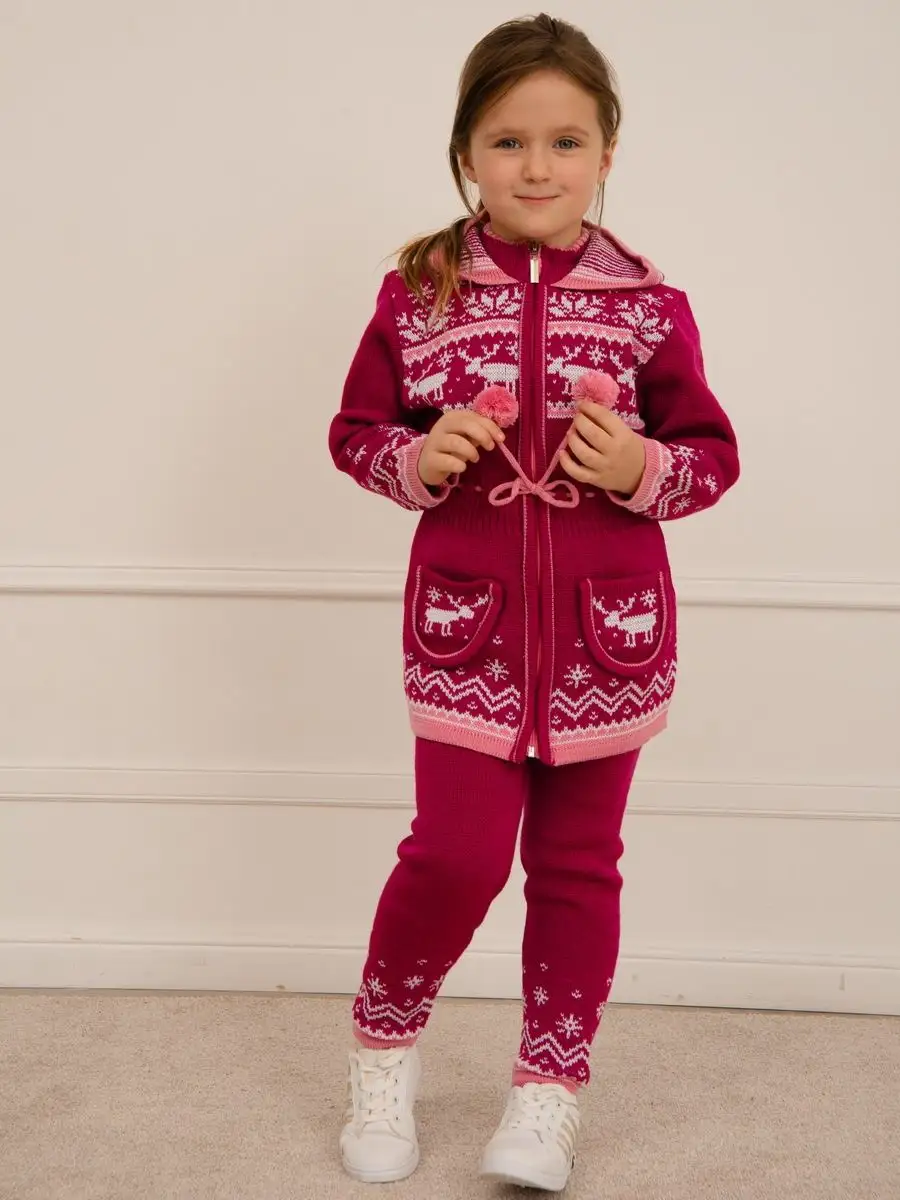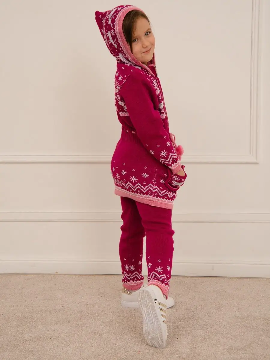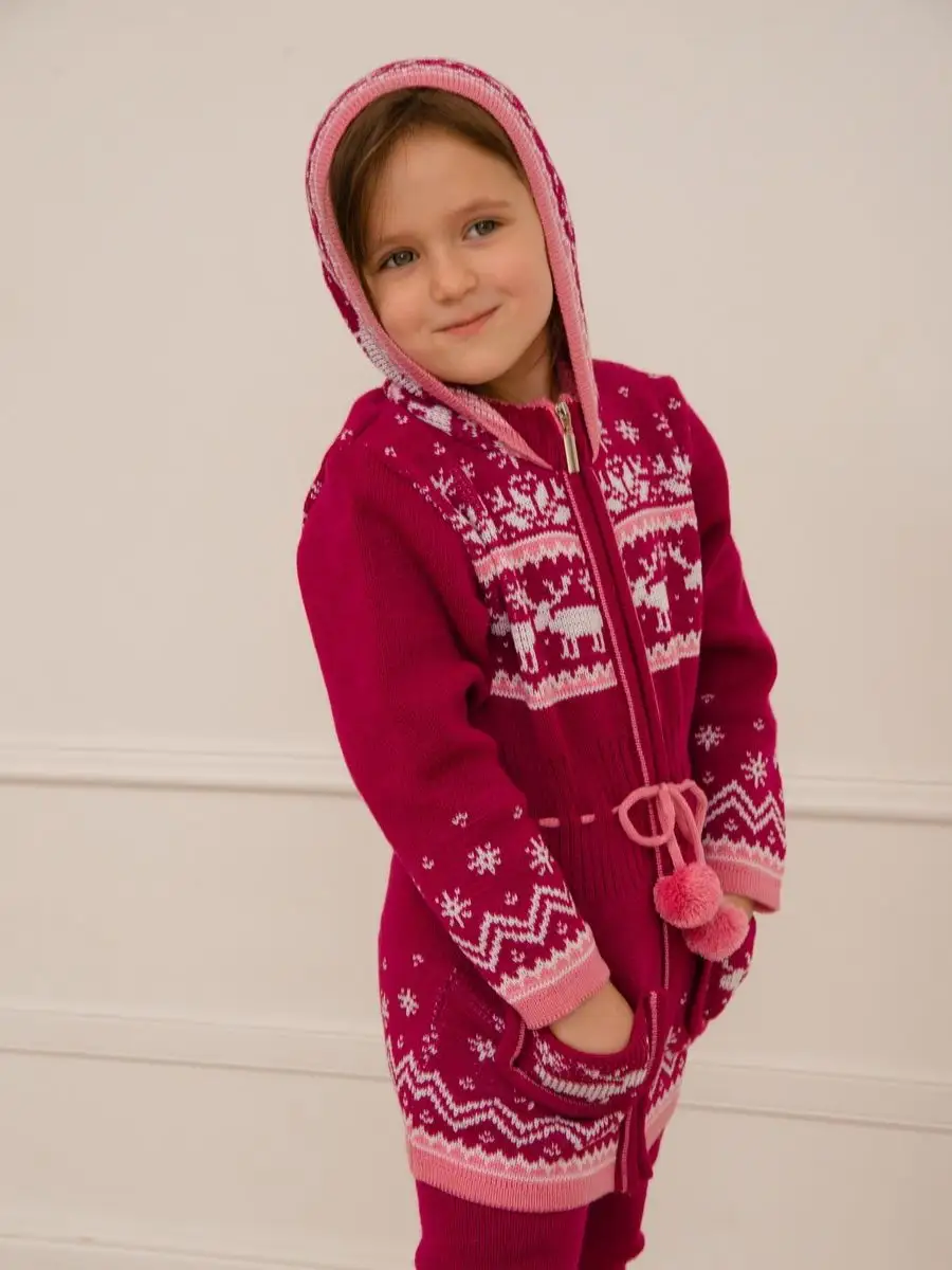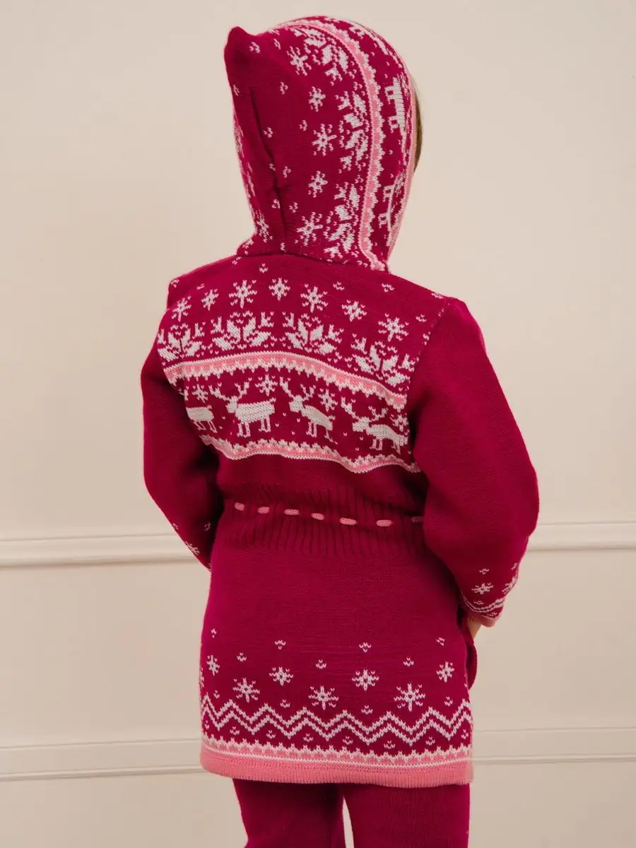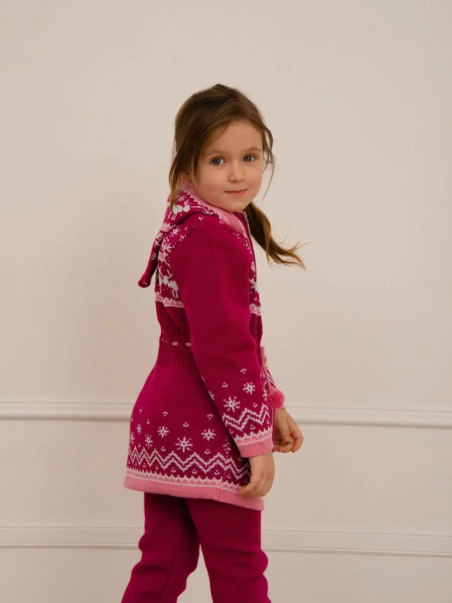 Кардиган вязаный для девочки на молнии с капюшоном и двумя карманами должен быть в повседневном гардеробе у каждой модницы. Особенностью модели является отделка по талии шнуром с помпонами, которая делает кардиган более интересным, а накладные карманы придают функциональности. Кофта для девочки украшена орнаментом в скандинавском стиле. Кардиган выполнен в технике жаккард без протяжек нити на изнаночной стороне. Вязаный кардиган комфортная и теплая вещь для носки в прохладную погоду, для праздничной фотосессии, а также станет прекрасной идеей для подарка. Кардиган выполнен из гипоаллергенной пряжи, поэтому юной моднице будет в нем комфортно, а благодаря свободному крою не стесняет движения. Высокое качество, тщательность исполнения и ручная отделка являются неоспоримыми преимуществами. При выборе размера советуем руководствоваться таблицей в карточке товара.