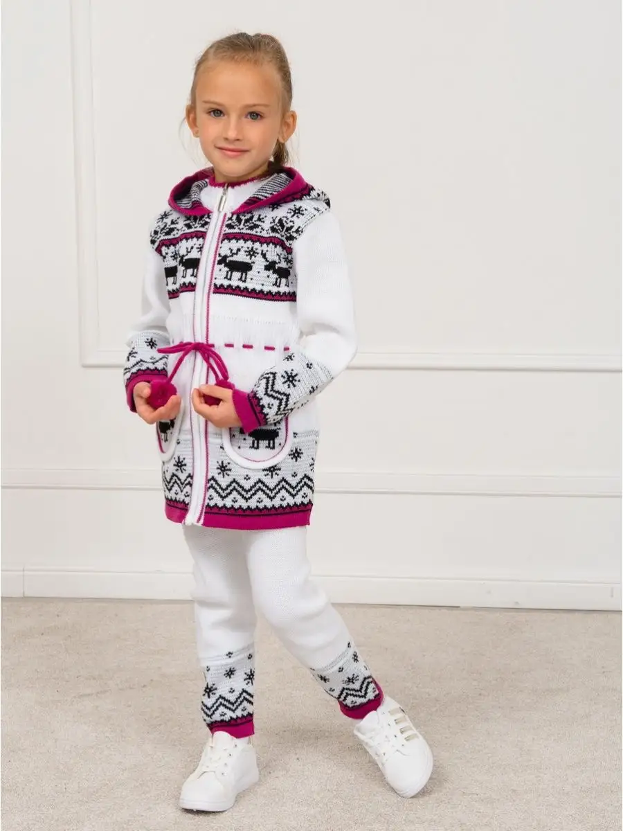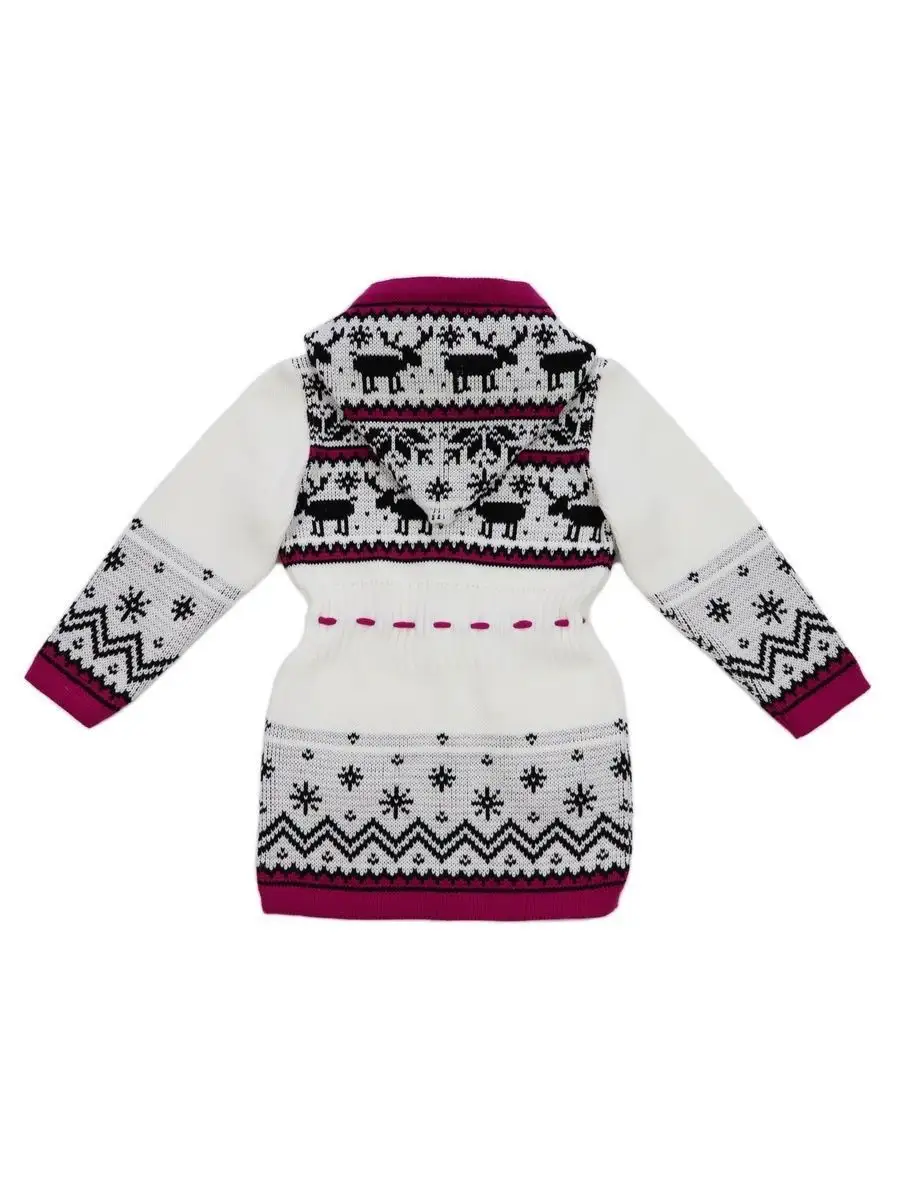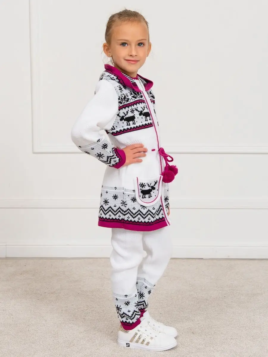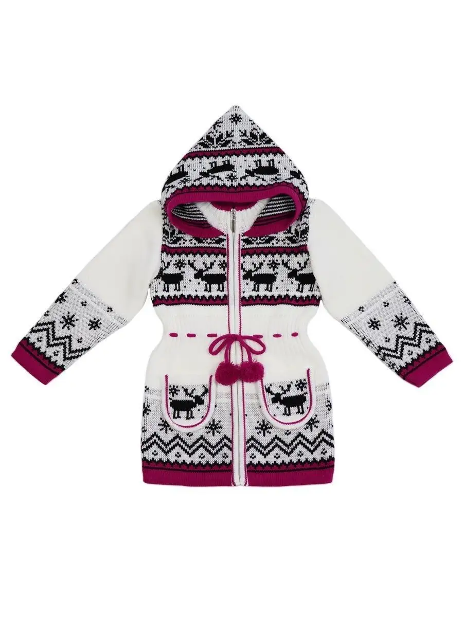 Кардиган вязаный для девочки на молнии с капюшоном и двумя карманами должен быть в повседневном гардеробе у каждой модницы. Особенностью модели является отделка по талии шнуром с помпонами, которая делает кардиган более интересным, а накладные карманы придают функциональности. Кофта для девочки украшена орнаментом в скандинавском стиле. Кардиган выполнен в технике жаккард без протяжек нити на изнаночной стороне. Вязаный кардиган комфортная и теплая вещь для носки в прохладную погоду, для праздничной фотосессии, а также станет прекрасной идеей для подарка. Кардиган выполнен из гипоаллергенной пряжи, поэтому юной моднице будет в нем комфортно, а благодаря свободному крою не стесняет движения. Высокое качество, тщательность исполнения и ручная отделка являются неоспоримыми преимуществами. При выборе размера советуем руководствоваться таблицей в карточке товара.