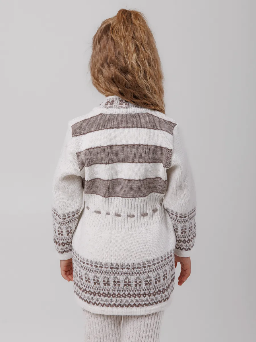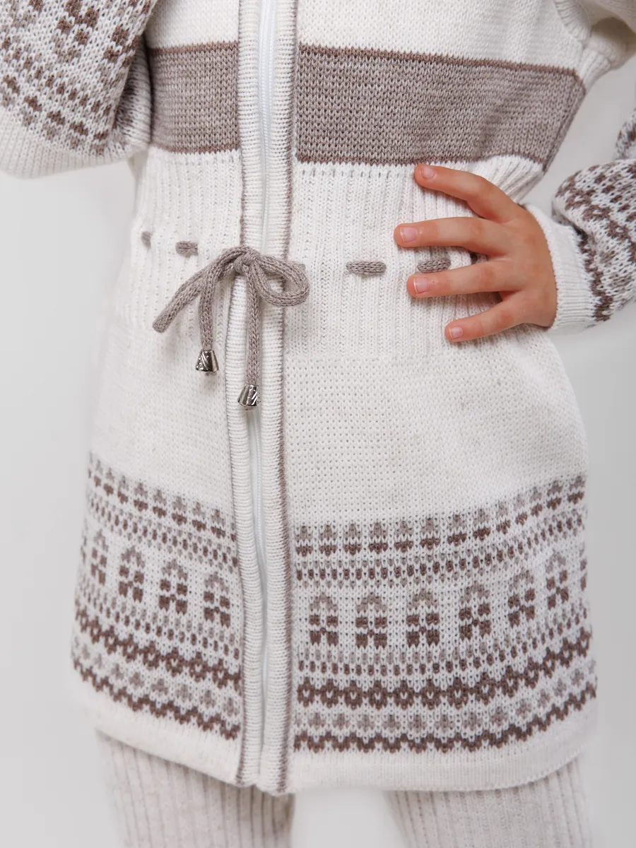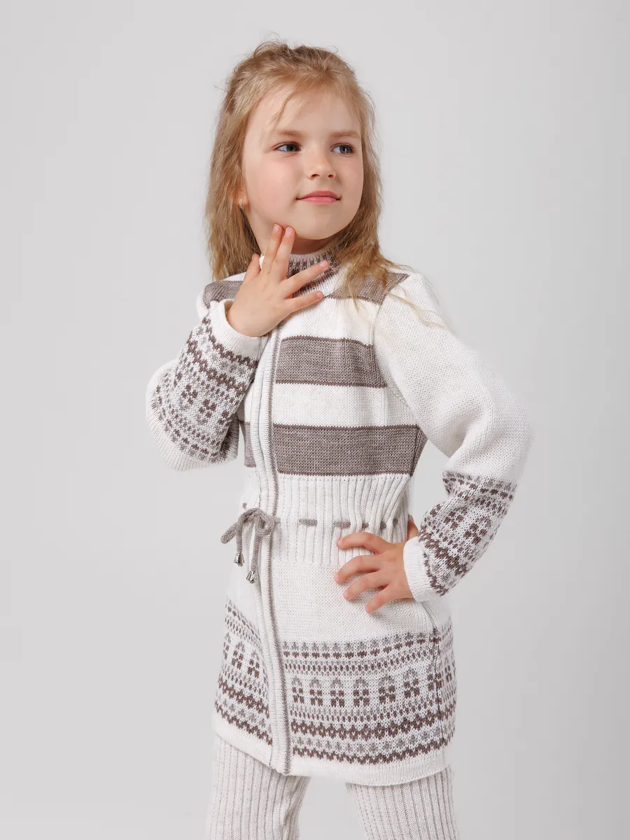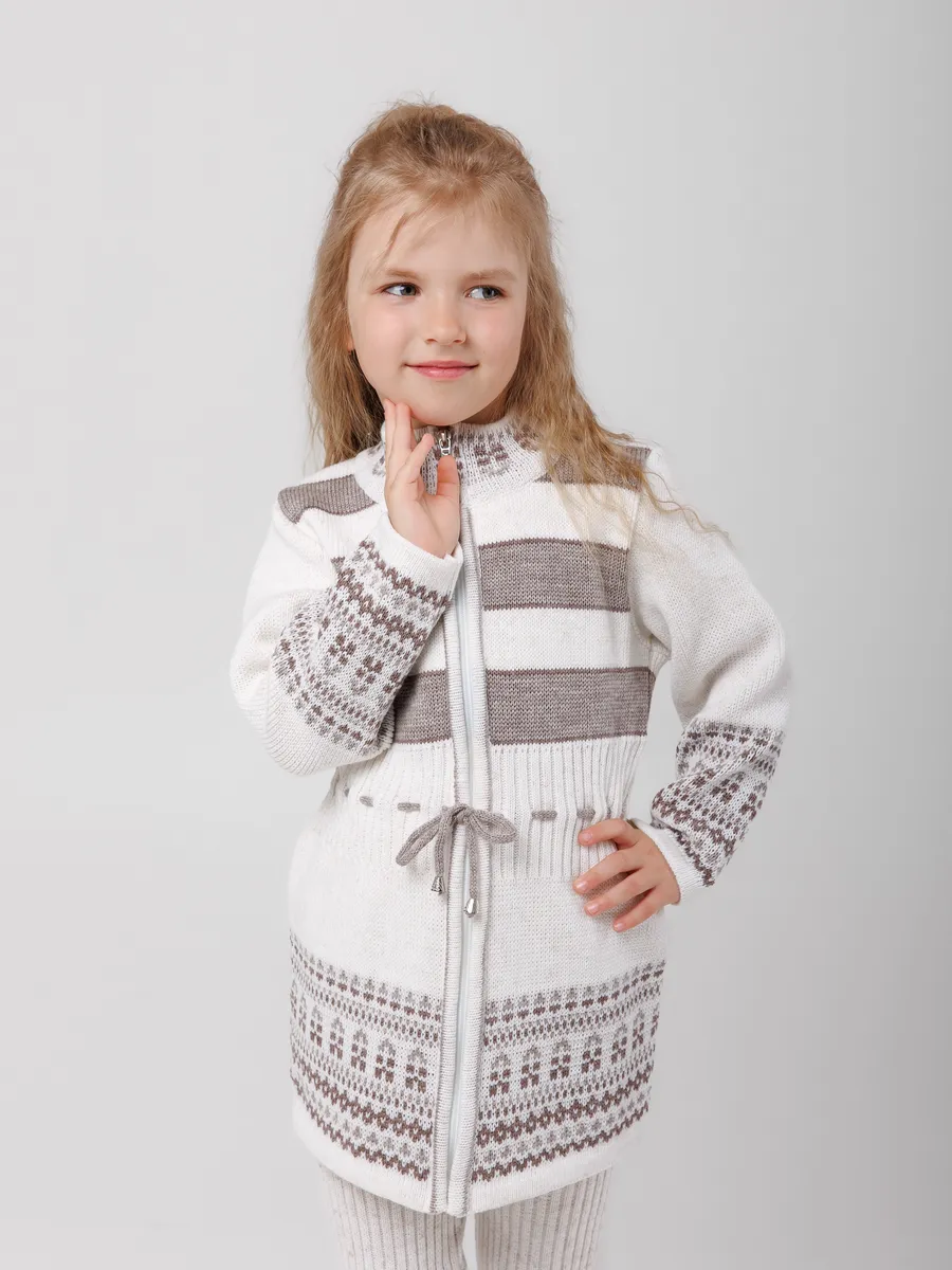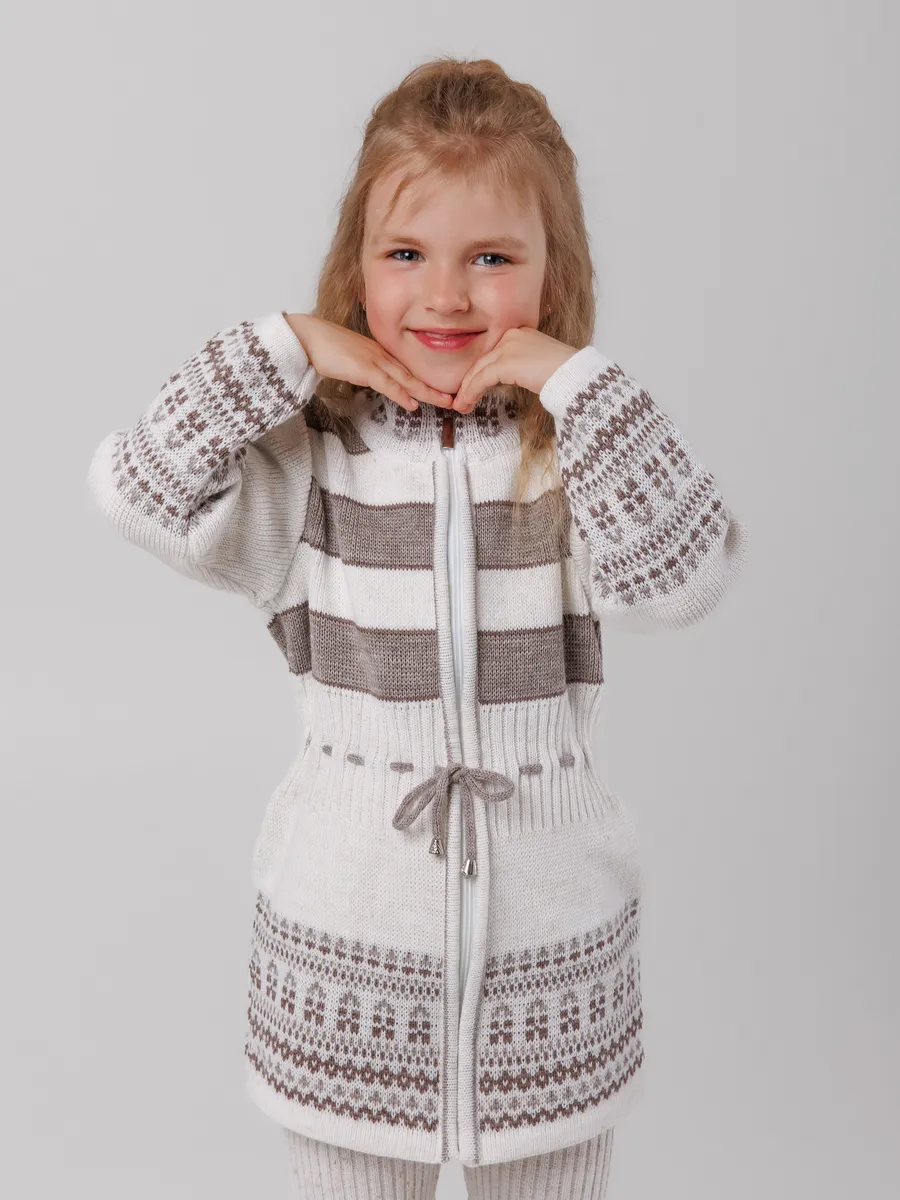 Кардиган на молнии для девочки от КОвровский ТРИкотаж – это стильное и практичное решение для повседневной носки. Изготовленный из дышащего и гипоаллергенного материала, он обеспечит комфорт и уют в течение всего дня. Оригинальный орнамент и шнуровка на талии придают кардигану неповторимый шарм. Благодаря удобной застежке на молнию и регулируемой утяжке на талии, кардиган легко надевается и снимается, а также идеально садится по фигуре.