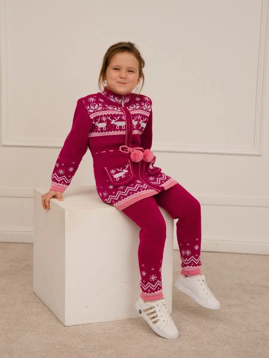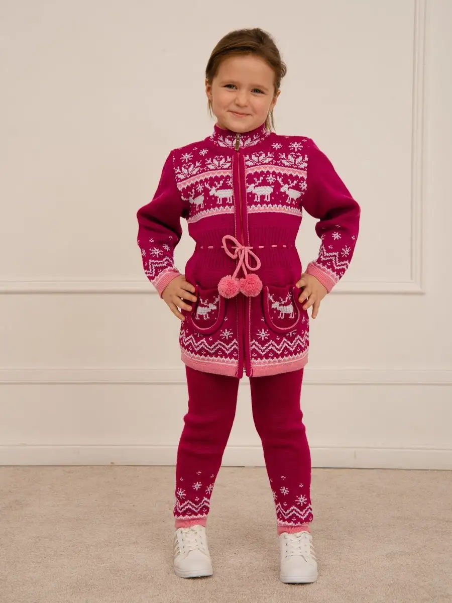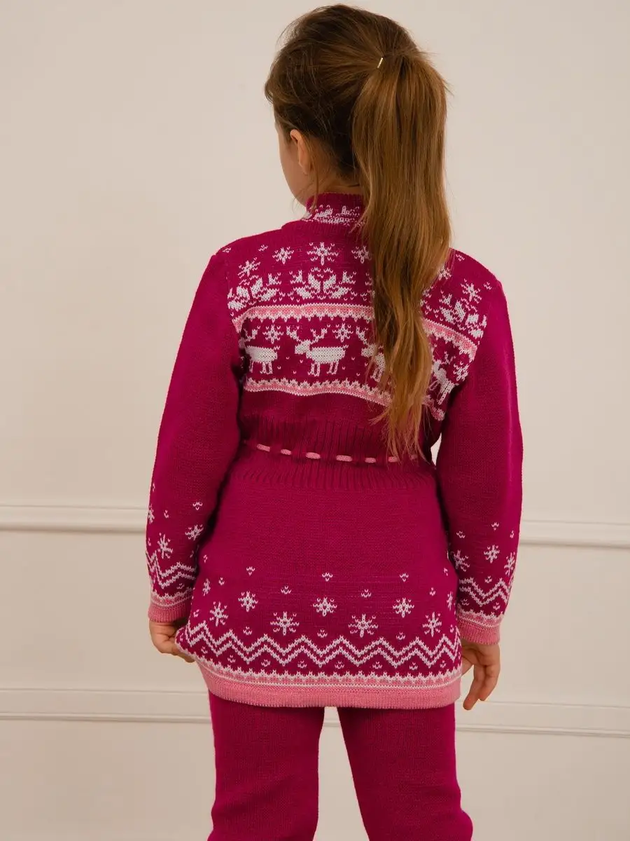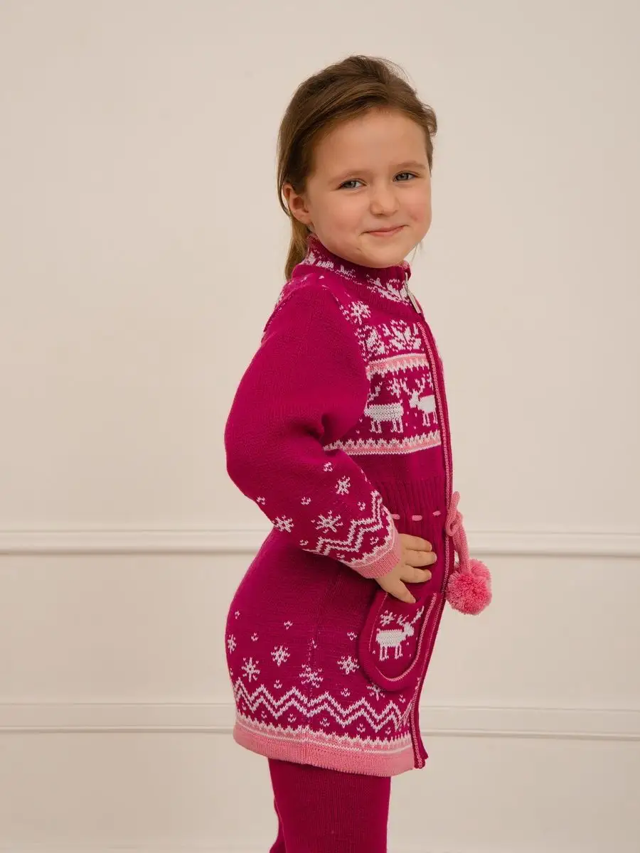 Кардиган вязаный для девочки на молнии с двумя карманами должен быть в повседневном гардеробе у каждой модницы. Особенностью модели является отделка по талии шнуром с помпонами, которая делает кардиган более интересным, а накладные карманы придают функциональности. Кофта для девочки украшена орнаментом в скандинавском стиле. Кардиган выполнен в технике жаккард без протяжек нити на изнаночной стороне. Вязаный кардиган комфортная и теплая вещь для носки в прохладную погоду, для праздничной фотосессии, а также станет прекрасной идеей для подарка. Кардиган выполнен из гипоаллергенной пряжи, поэтому юной моднице будет в нем комфортно, а благодаря свободному крою не стесняет движения. Высокое качество, тщательность исполнения и ручная отделка являются неоспоримыми преимуществами. При выборе размера советуем руководствоваться таблицей в карточке товара.