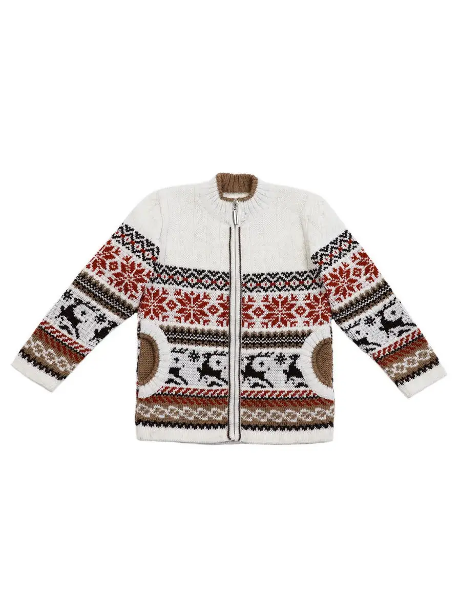 Теплый вязаный жакет на молнии с боковыми круглыми карманами.
