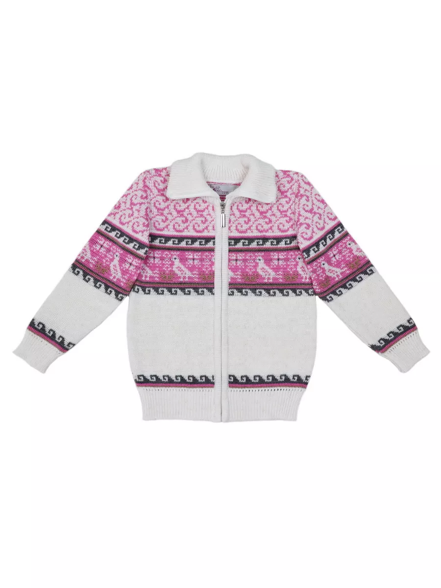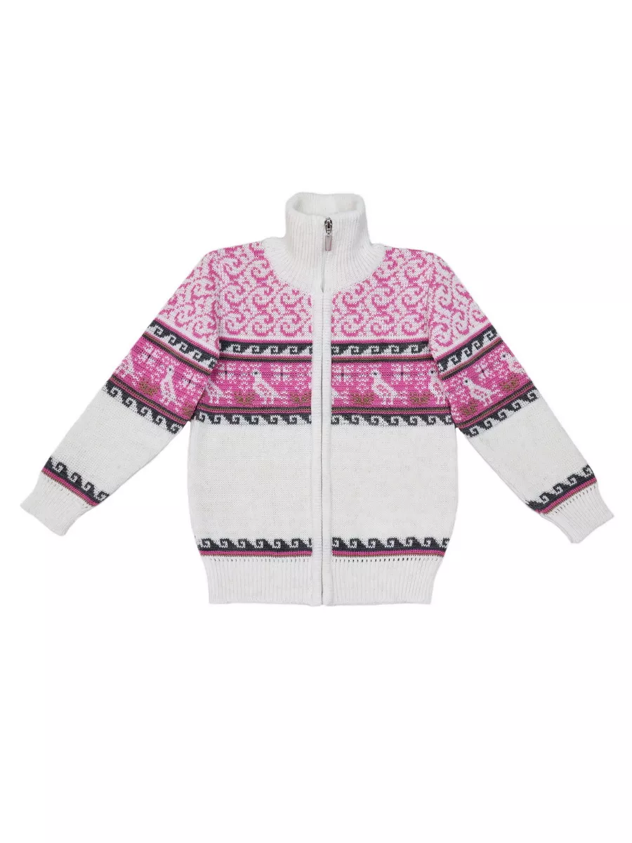 Детская вязаная кофта на молнии с воротником стойкой. Кофта выполнена в технике жаккард без протяжек нити на изнаночной стороне. Модель бомбера для малыша универсальна и подойдет как для девочки так и для мальчика. Кофта для малышей подойдет зимой как поддева, а весной, осенью и прохладным летом как верхняя одежда.