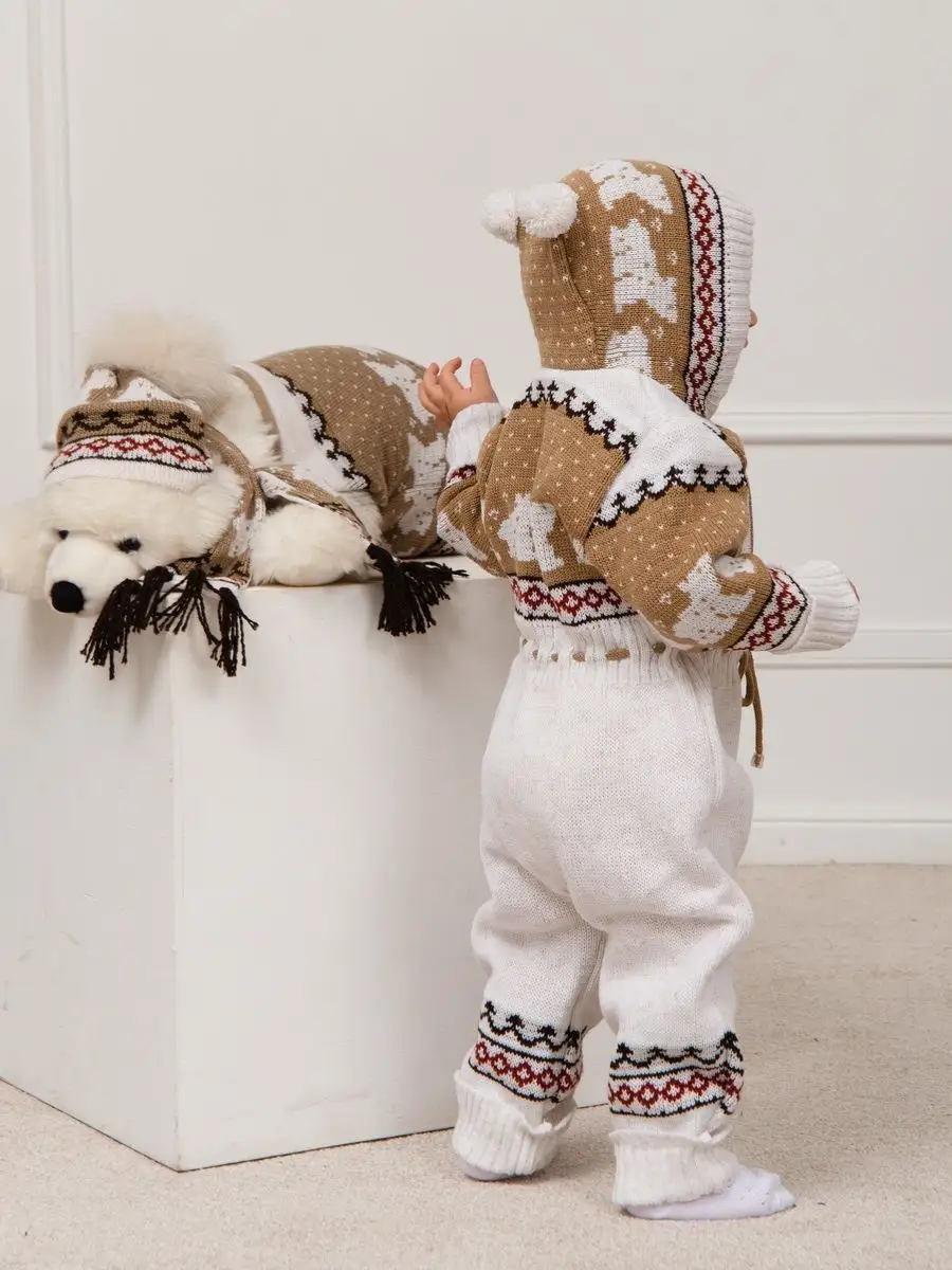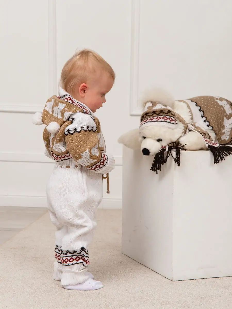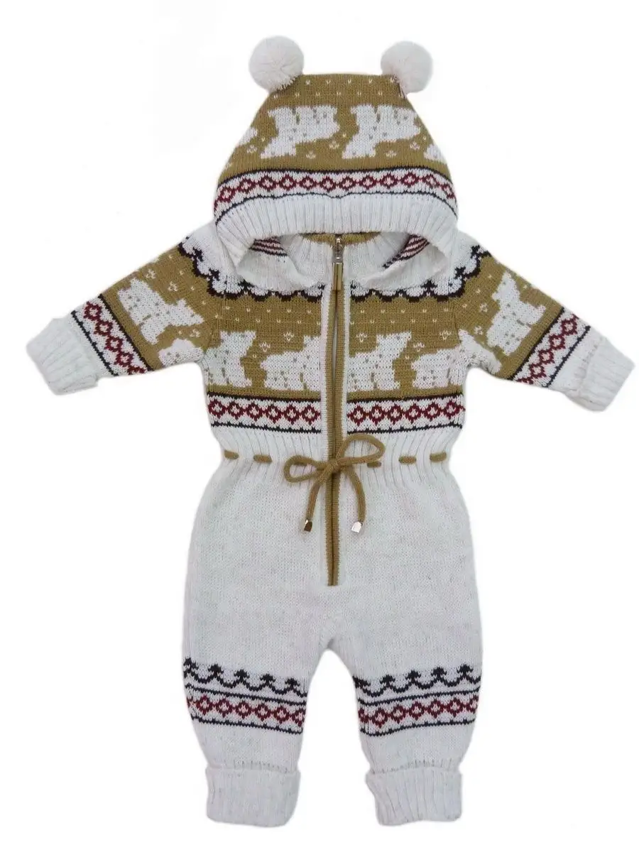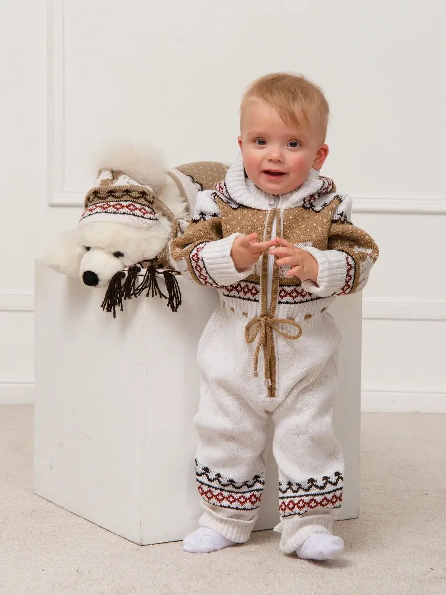 Красивый комбинезон с мишками для стильных малышей и родителей, которые ценят натуральные материалы. Данная модель -отличный вариант для ежедневных прогулок. Комбинезон имеет отгибающиеся манжеты на рукавах и штанишках, а также место для подгузника. Комбинезон изготовлен из гиппоалегргенных материалов, поэтому малышу будет очень комфортно, уютно и безопасно. Уникальный способ вязки обеспечивает необходимую терморегуляцию.