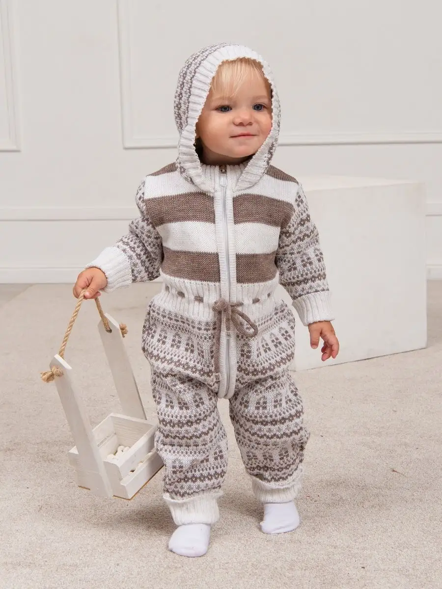 Комбинезон для малыша на молнии с капюшоном. Модель комбинезона универсальная и подойдет как для девочек так и для мальчиков. Комбинезон для новорожденного удобен тем, что манжеты на рукавах и штанишках можно отгибать по мере роста малыша. Комбинезон подойдет зимой как поддева, а весной, осенью и прохладным летом как верхняя одежда. Бодик выполнен из гипоаллергенной пряжи, поэтому малышу будет в нем комфортно, а благодаря свободному крою не стесняет движения. При выборе размера советуем руководствоваться таблицей в карточке товара.