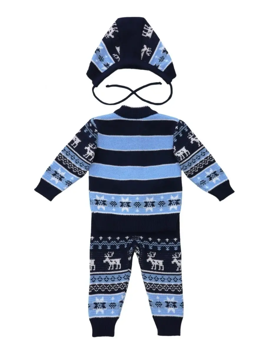 Костюмчик для самых маленьких из трех предметов: жакет на молнии, рейтузы и шапочка.