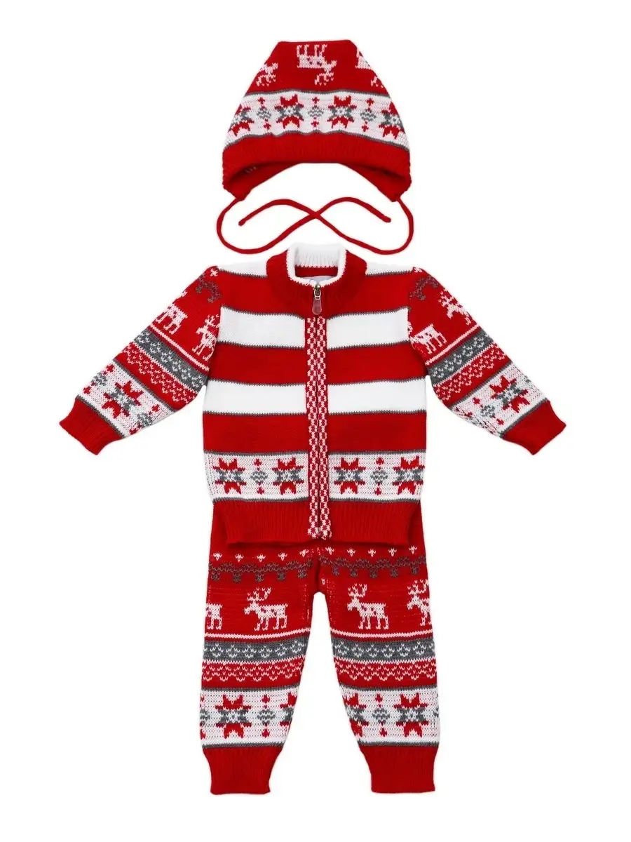 Костюмчик для самых маленьких из трех предметов: жакет на молнии, рейтузы и шапочка.