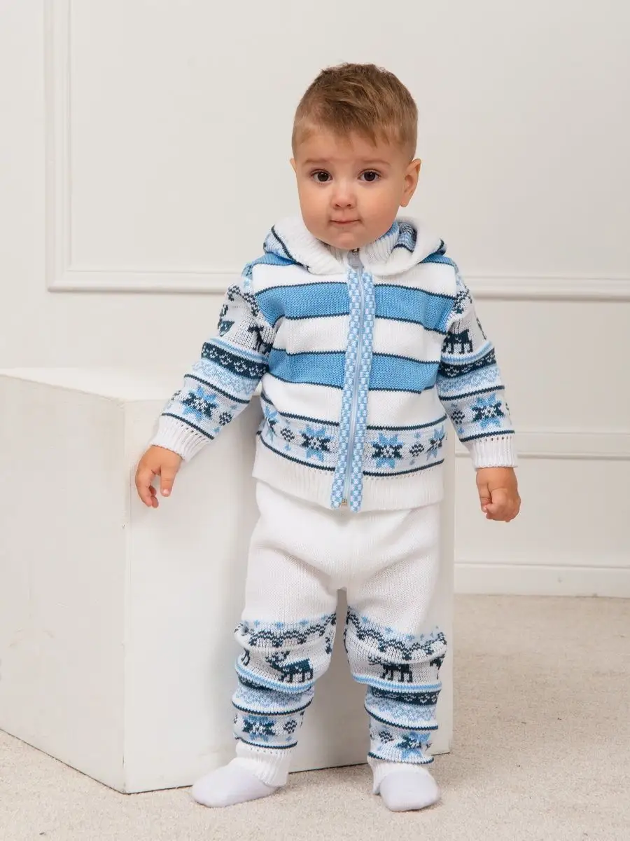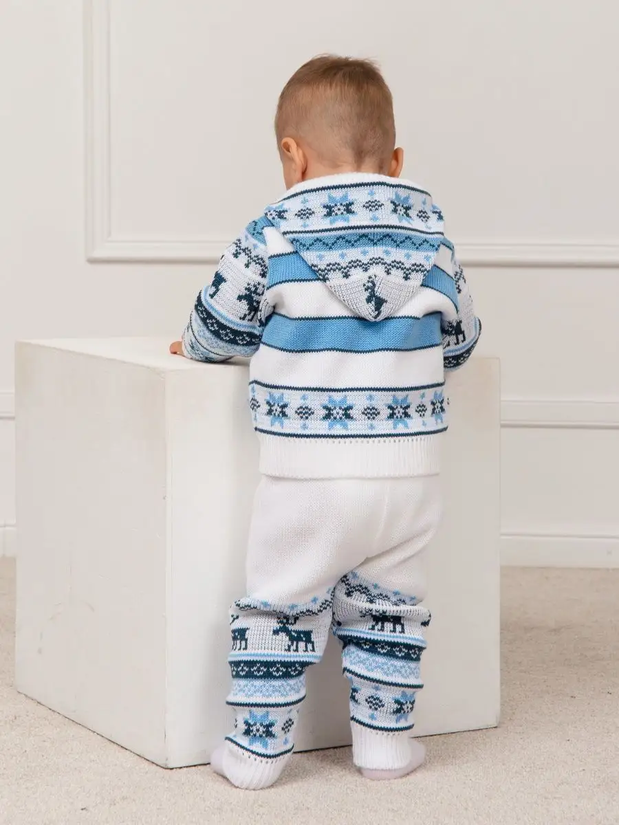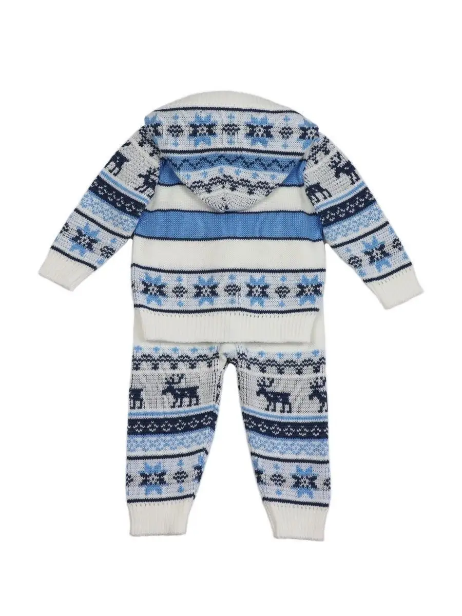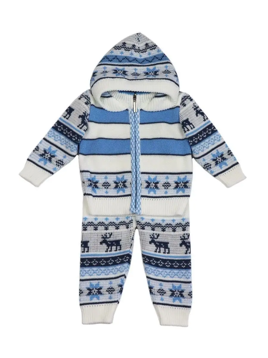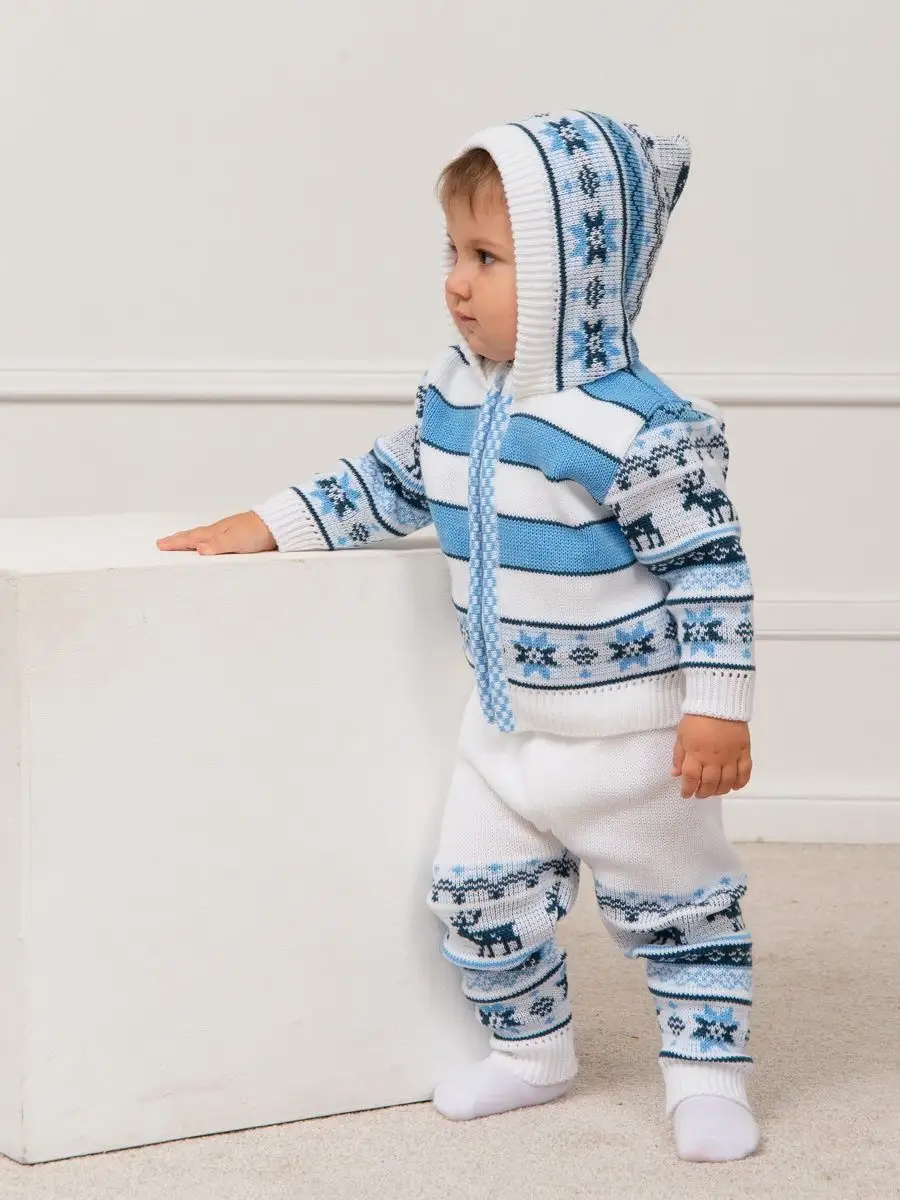 Костюм для малыша с орнаментом из двух предметов: кофта на молнии с капюшоном и рейтузы. Модель костюма универсальная и подойдет как для девочки так и для мальчика. Детский костюм идеальный вариант как для повседневной одежды второго слоя в холодное время года, так и верхней одежды в межсезонье. Теплый детский костюм выполнен из гипоаллергенной пряжи, поэтому малышу будет в нем комфортно, а благодаря свободному крою и ластовице в штанишках не стесняет движения. Вязаный комплект выполнен в технике жаккард без протяжек нити на изнаночной стороне. Высокое качество, тщательность исполнения и ручная отделка являются неоспоримыми преимуществами. При выборе размера советуем руководствоваться таблицей в карточке товара.