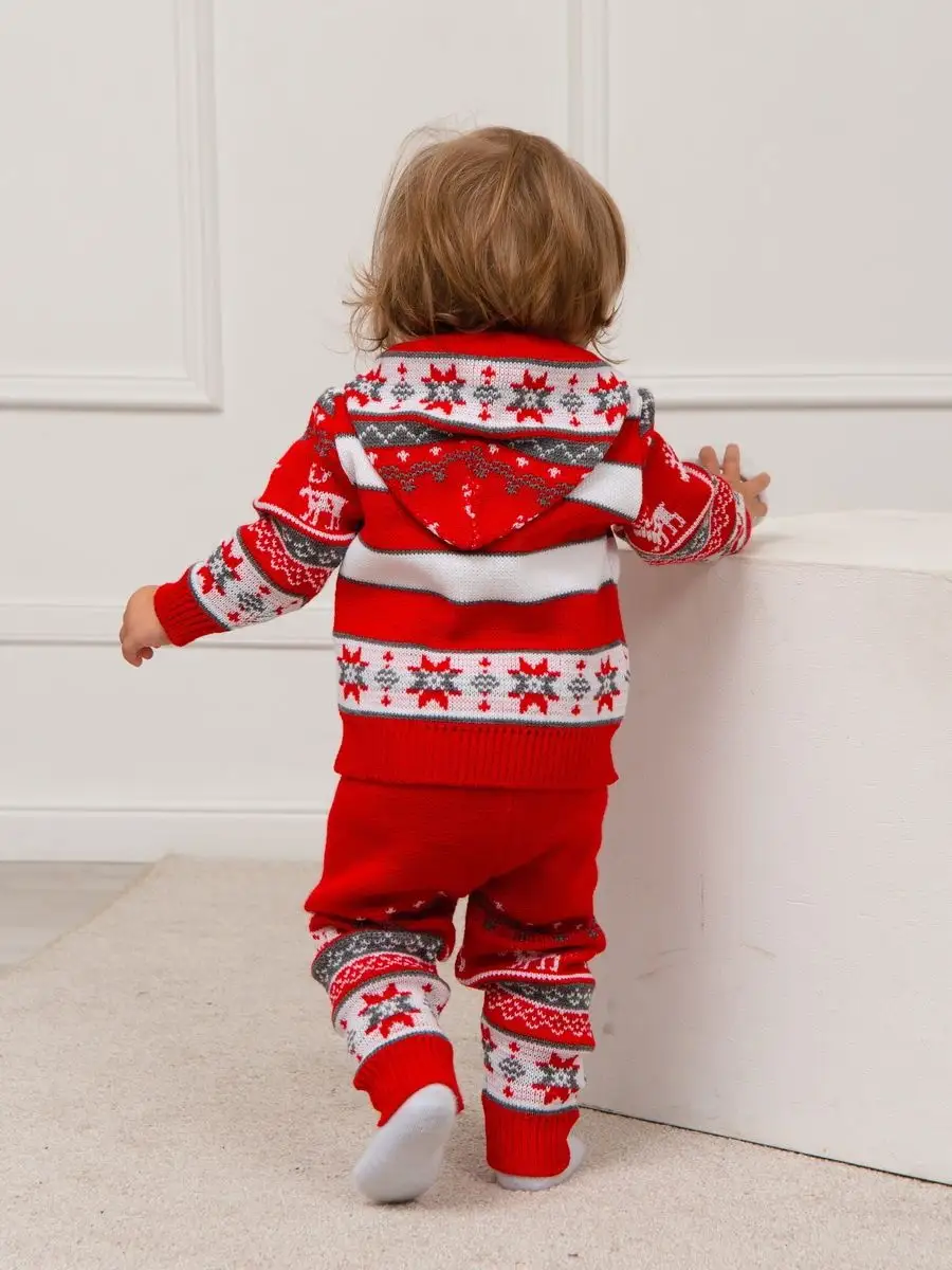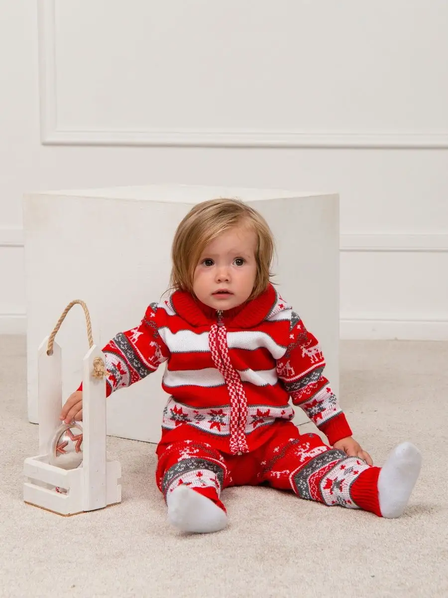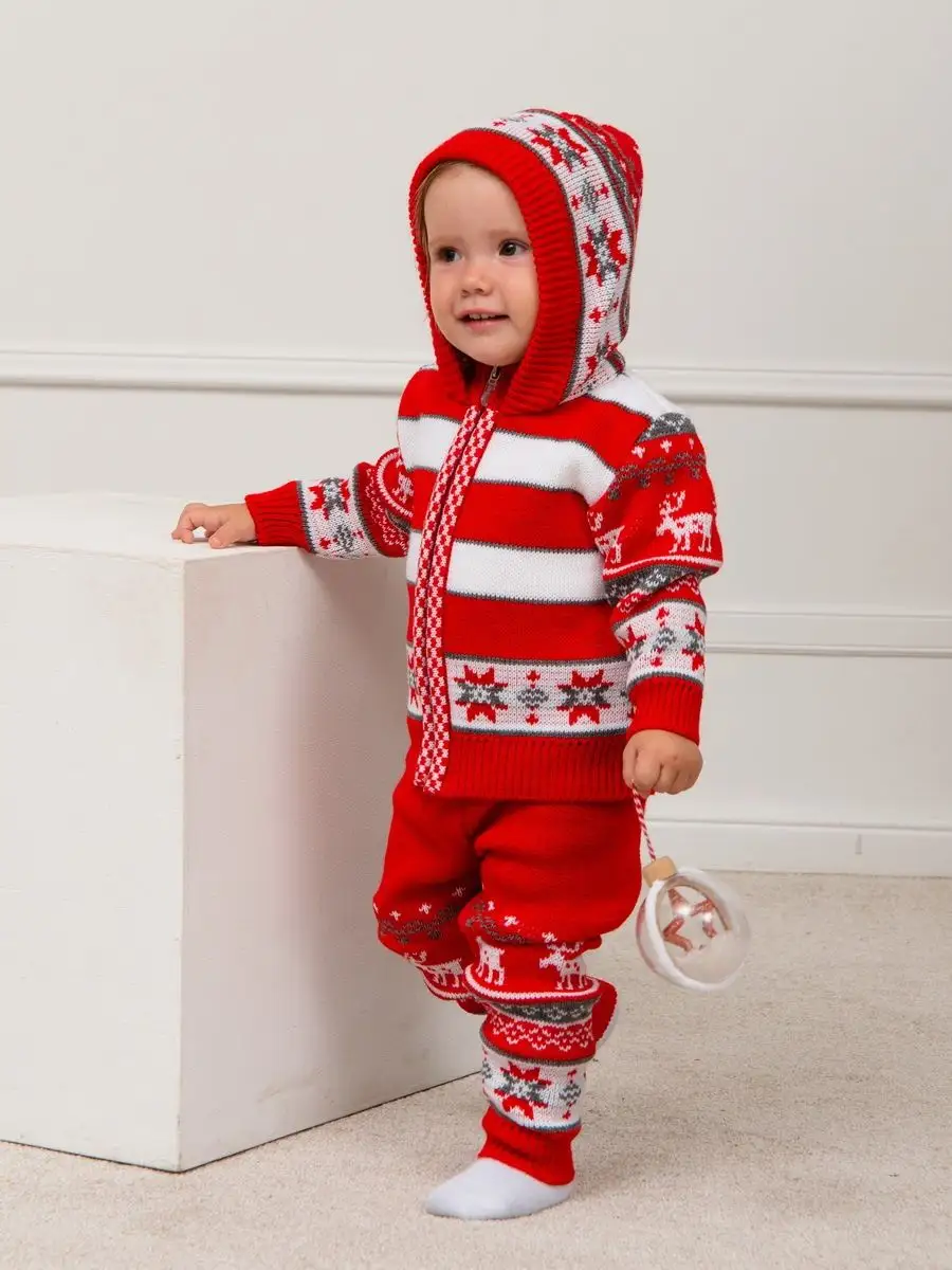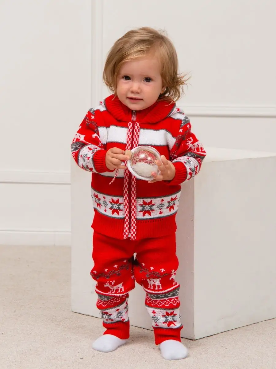 Костюм для малыша с орнаментом из двух предметов: кофта на молнии с капюшоном и рейтузы. Модель костюма универсальная и подойдет как для девочки так и для мальчика. Детский костюм идеальный вариант как для повседневной одежды второго слоя в холодное время года, так и верхней одежды в межсезонье. Теплый детский костюм выполнен из гипоаллергенной пряжи, поэтому малышу будет в нем комфортно, а благодаря свободному крою и ластовице в штанишках не стесняет движения. Вязаный комплект выполнен в технике жаккард без протяжек нити на изнаночной стороне. Высокое качество, тщательность исполнения и ручная отделка являются неоспоримыми преимуществами. При выборе размера советуем руководствоваться таблицей в карточке товара.