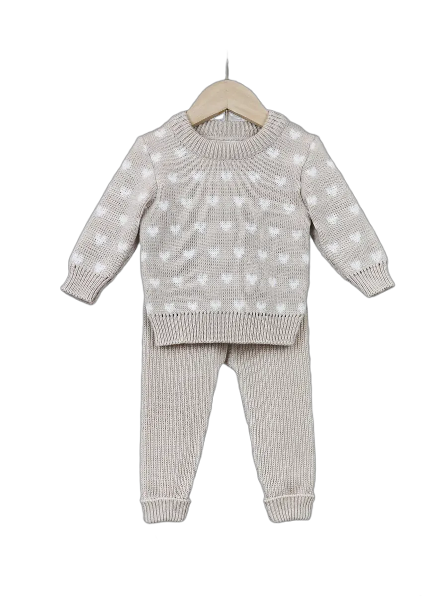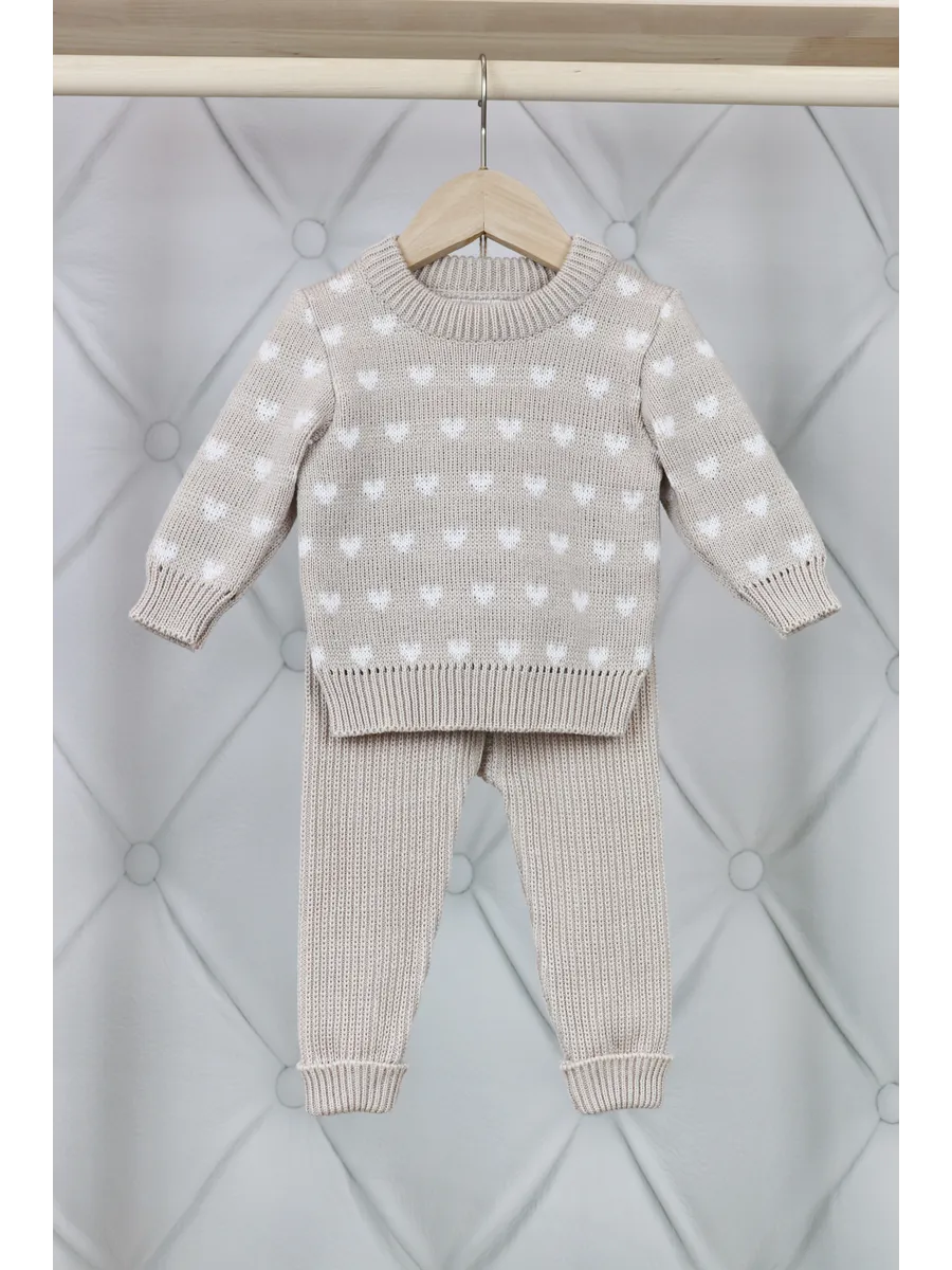 Детский вязаный костюм "Сердечки" от КОвровский ТРИкотаж - это идеальный выбор для вашего малыша. Мягкий и уютный костюм, выполненный из гипоаллергенной смеси шерсти и пан, обеспечит комфорт и тепло в любое время года. Джемпер с круглым вырезом и джоггеры с полуприлегающим покроем создают стильный и удобный образ. Сердечки на джемпере добавят очарования вашему маленькому моднику. Костюм "Сердечки" - это практичный и милый вариант для повседневной носки, прогулок и домашних посиделок.