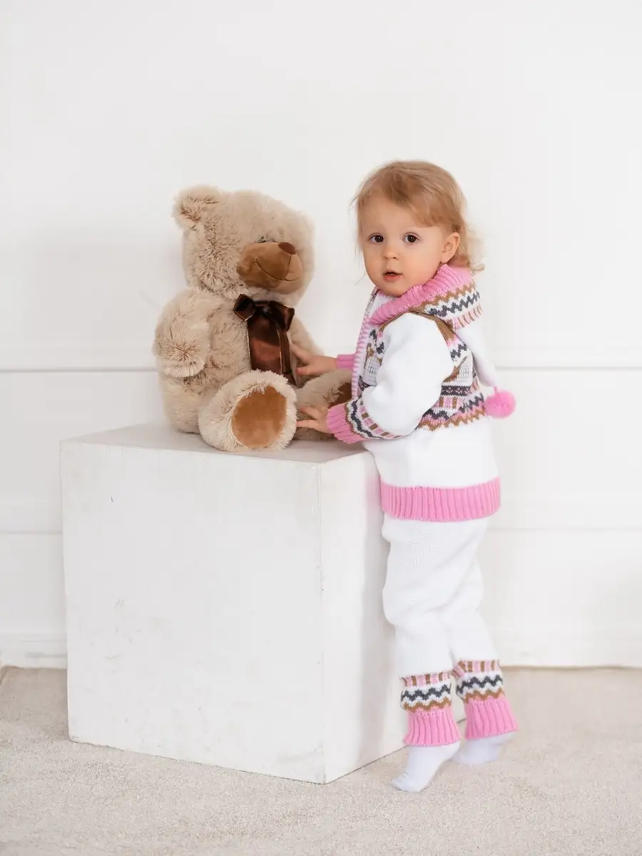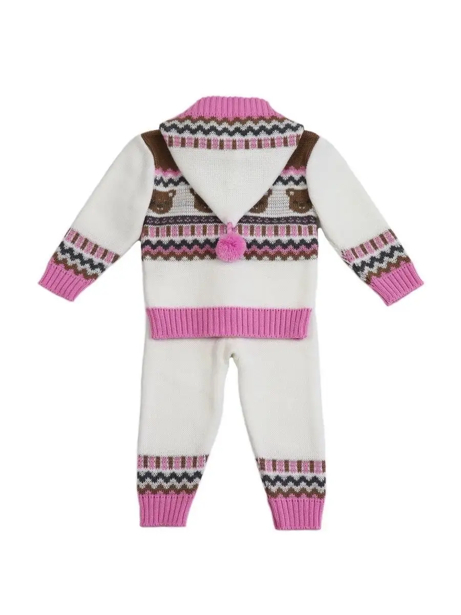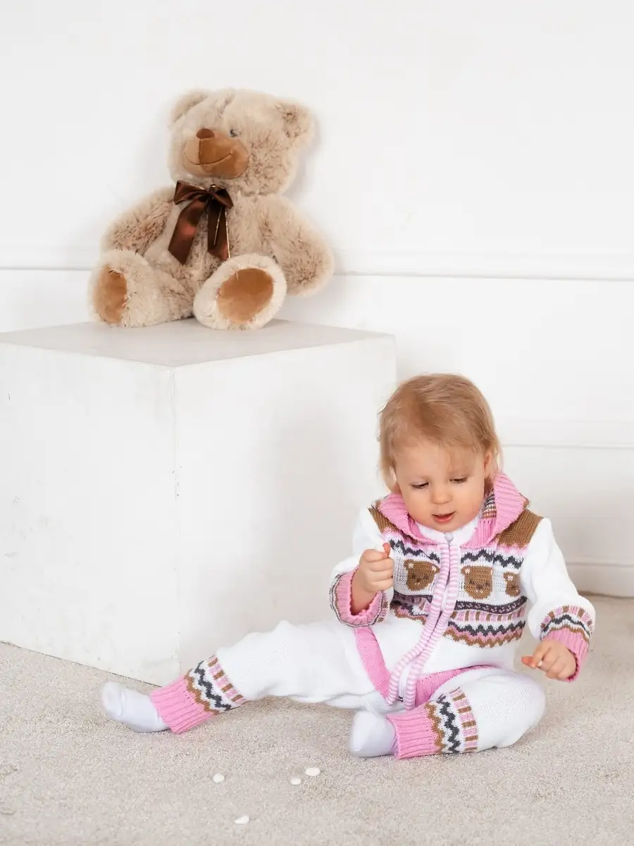 Костюм для малыша с забавным орнаментом из двух предметов: кофта на молнии с капюшоном и рейтузы. Модель костюма универсальная и подойдет как для девочки так и для мальчика. Детский костюм идеальный вариант как для повседневной одежды второго слоя в холодное время года, так и верхней одежды в межсезонье. Теплый детский костюм выполнен из гипоаллергенной пряжи, поэтому малышу будет в нем комфортно, а благодаря свободному крою и ластовице в штанишках не стесняет движения. Вязаный комплект выполнен в технике жаккард без протяжек нити на изнаночной стороне. Высокое качество, тщательность исполнения и ручная отделка являются неоспоримыми преимуществами. При выборе размера советуем руководствоваться таблицей в карточке товара.