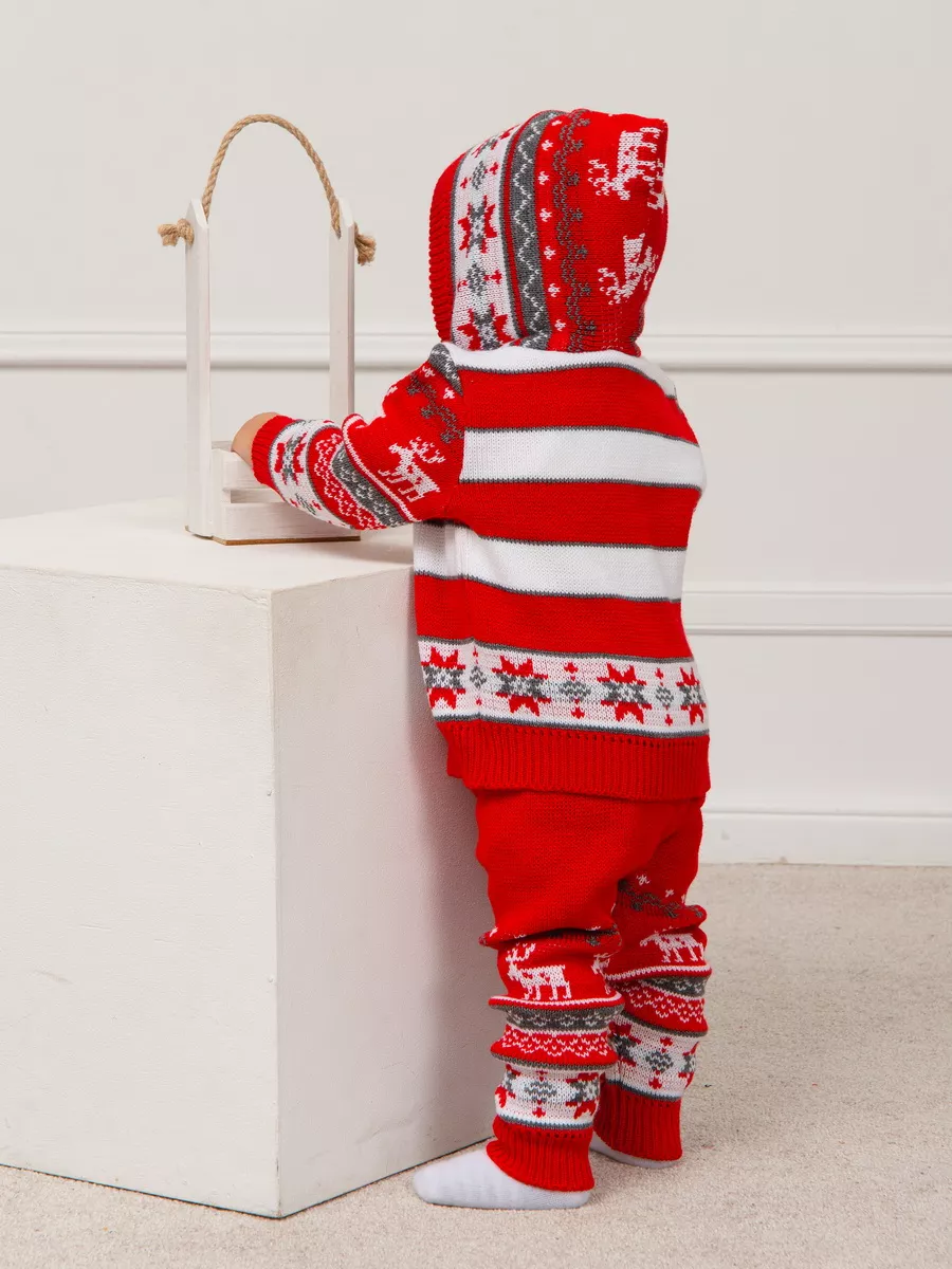 Костюм для малыша с орнаментом из двух предметов: кофта на молнии с капюшоном и рейтузы. Модель костюма универсальная и подойдет как для девочки так и для мальчика. Детский костюм идеальный вариант как для повседневной одежды второго слоя в холодное время года, так и верхней одежды в межсезонье. Теплый детский костюм выполнен из гипоаллергенной пряжи, поэтому малышу будет в нем комфортно, а благодаря свободному крою и ластовице в штанишках не стесняет движения. Вязаный комплект выполнен в технике жаккард без протяжек нити на изнаночной стороне. Высокое качество, тщательность исполнения и ручная отделка являются неоспоримыми преимуществами. При выборе размера советуем руководствоваться таблицей в карточке товара.