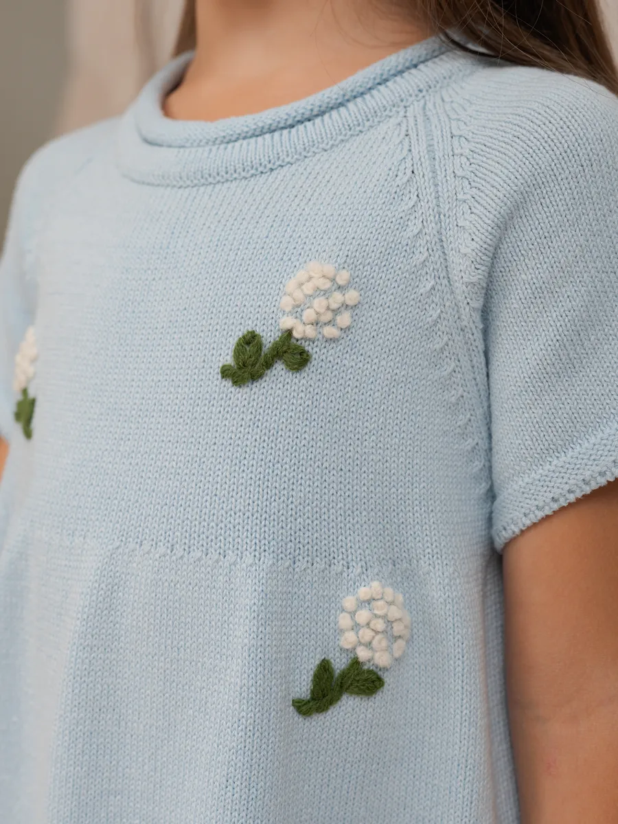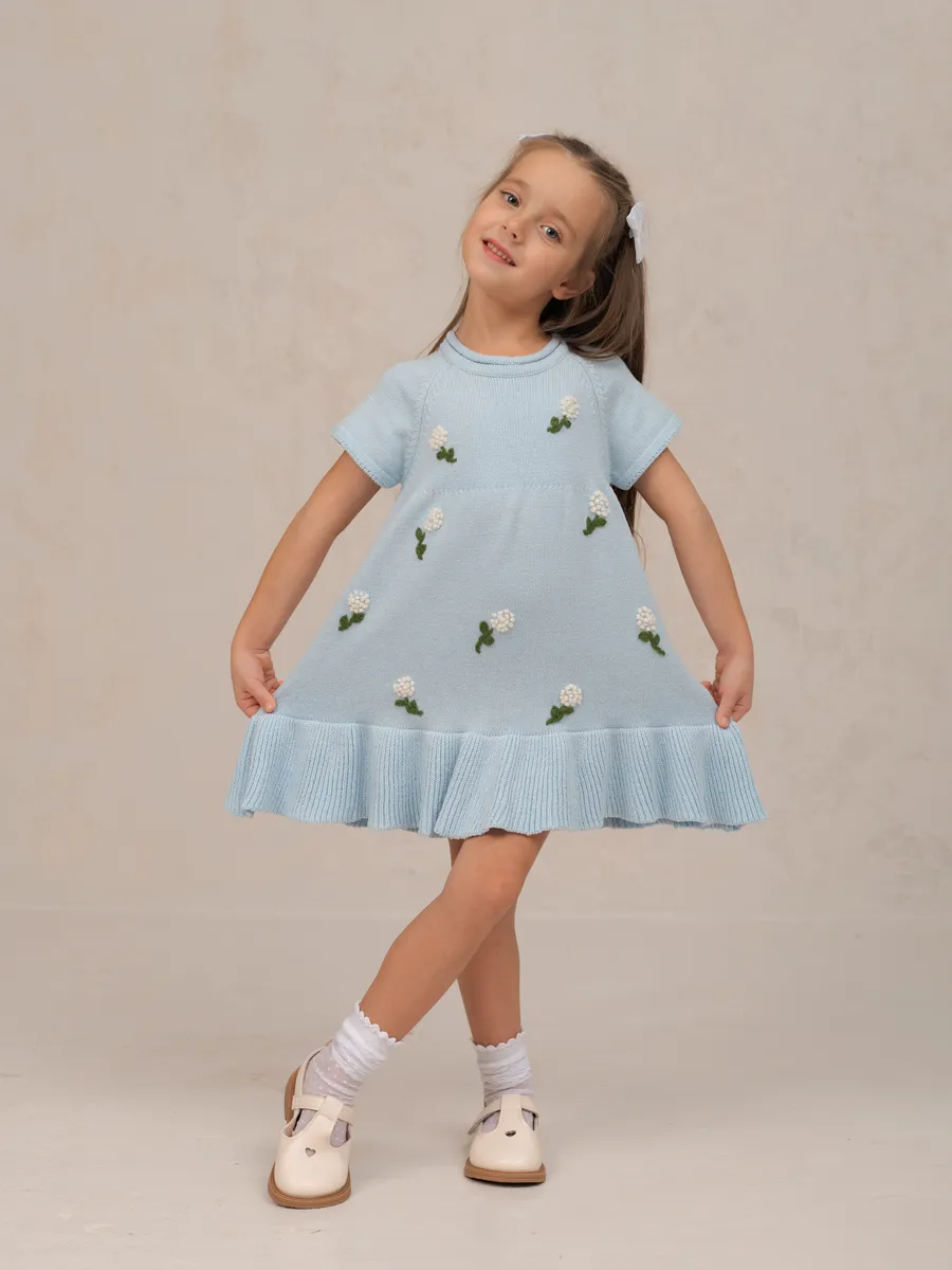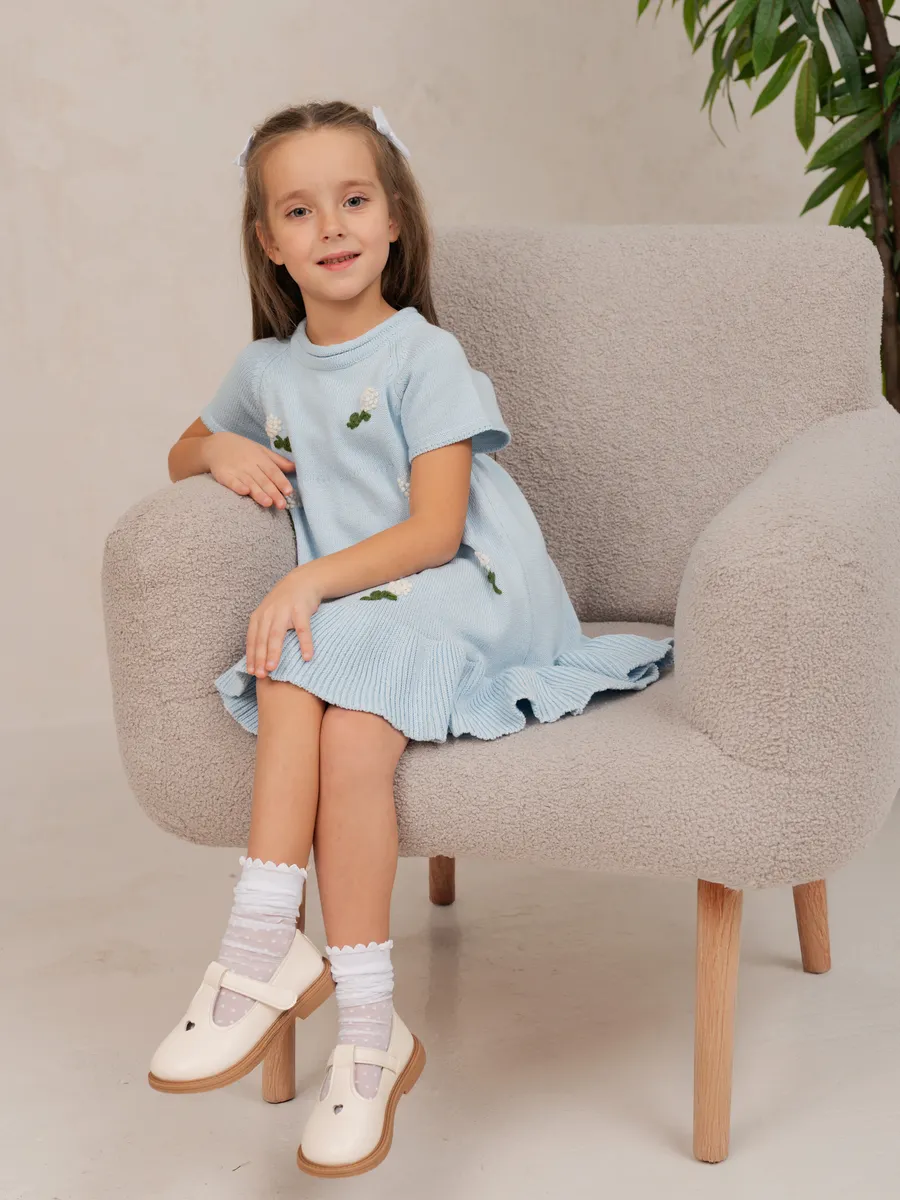Ручная вышивка в виде цветов добавляет элегантности и оригинальности образу, превращая даже обычный день в небольшое торжество.Платье может быть использовано как нарядное одеяние на праздник или утренник – от комфортных каждодневных прогулок до ярких семейных ужинов. Светлые тона подойдут к любому сезону года, обеспечивая свежий стильный вид своему обладателю.