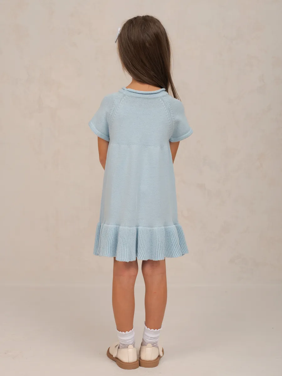 Вязаное оформление платья напоминает трендовые дизайнерские решения известных модельеров, а ручная работа гарантирует уникальность каждой детали. Подобные красивые платья подчеркивают индивидуальность ребенка и делают его внешний вид запоминающимся. Трапециевидный крой создает эффект легкости движений и свободы комфорта при максимальной простоте надевания.