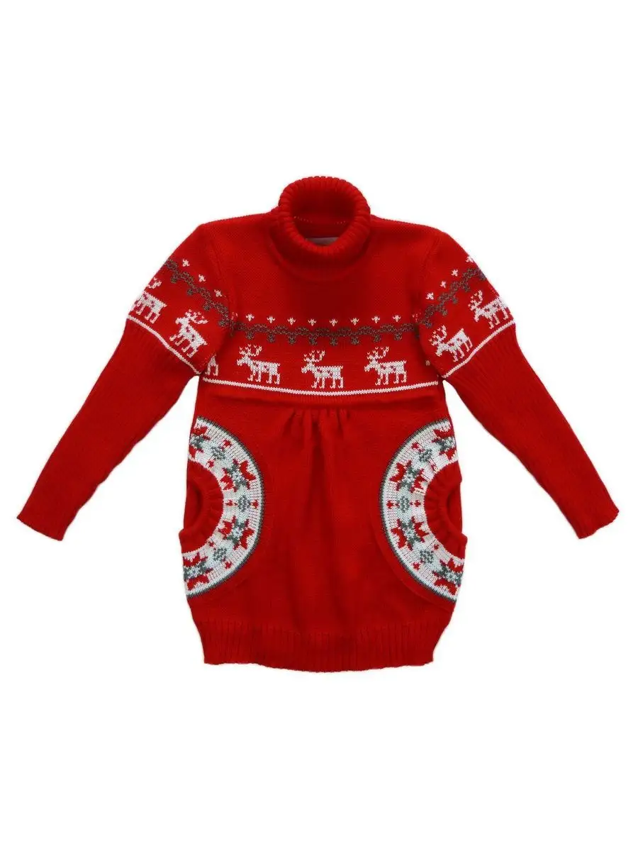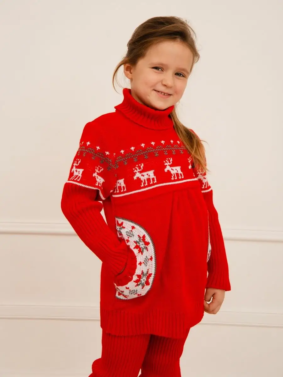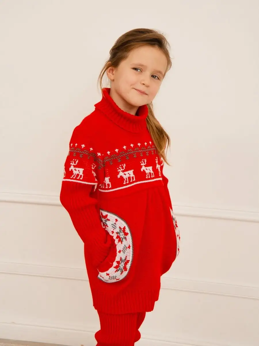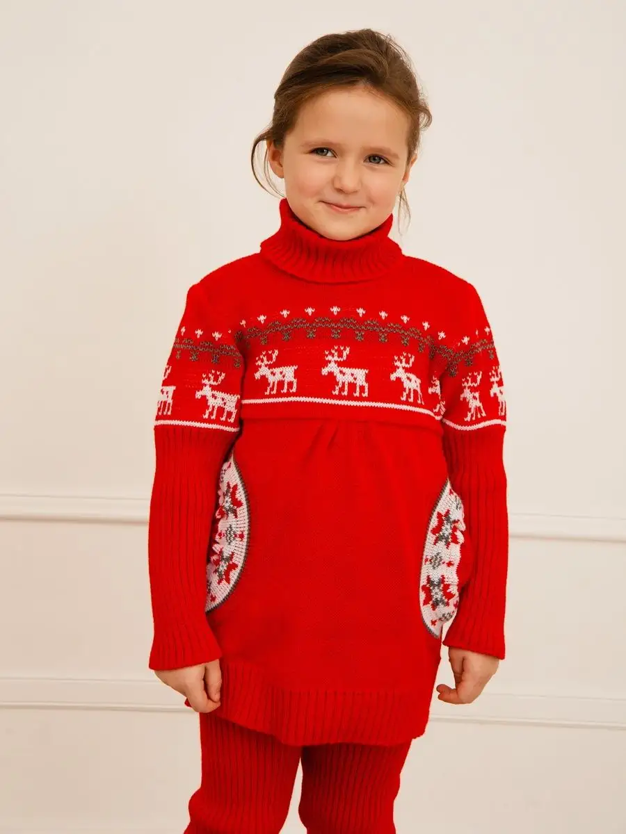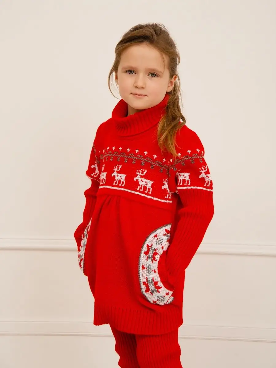 Туника для девочки со свитерным воротником, с длинными рукавами и круглыми боковыми карманами. Особенностью модели является кокетка, которая делает платье более интересным, а боковые круглые карманы придают функциональности. Платье туника вязаное имеет длину мини и может сочетаться как с леггинсами, так и с колготками. Платье вязаное для девочки украшено орнаментом в скандинавском стиле. Платье свитер комфортная и теплая вещь для носки в прохладную погоду, в новогодние дни, для праздничной фотосессии, а также станет прекрасной идеей для подарка. Платье туника для девочки выполнено из гипоаллергенной пряжи, поэтому юной моднице будет в нем комфортно, а благодаря свободному крою не стесняет движения. При выборе размера советуем руководствоваться таблицей в карточке товара.