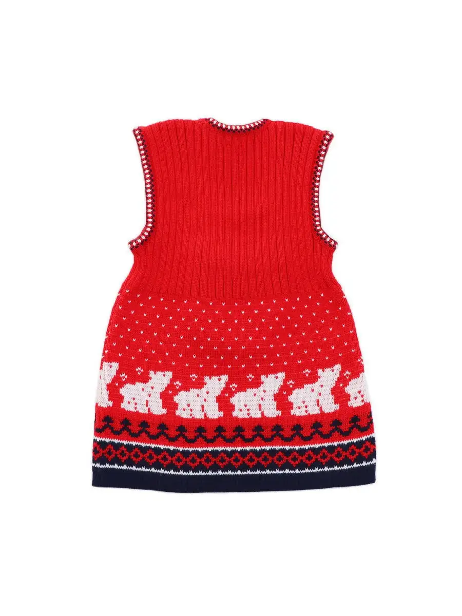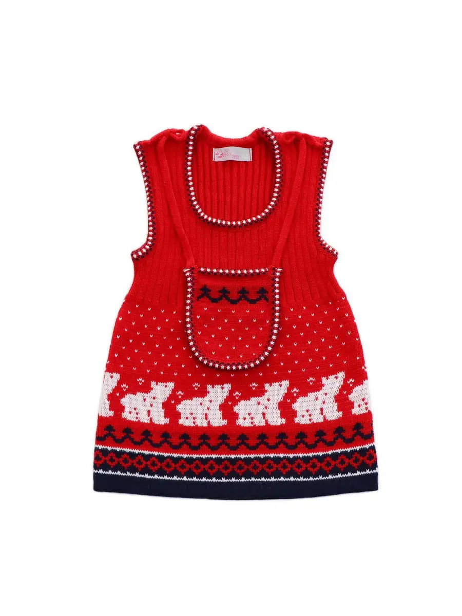 Удобный вязаный сарафан с орнаментом для девочки с сумочкой.