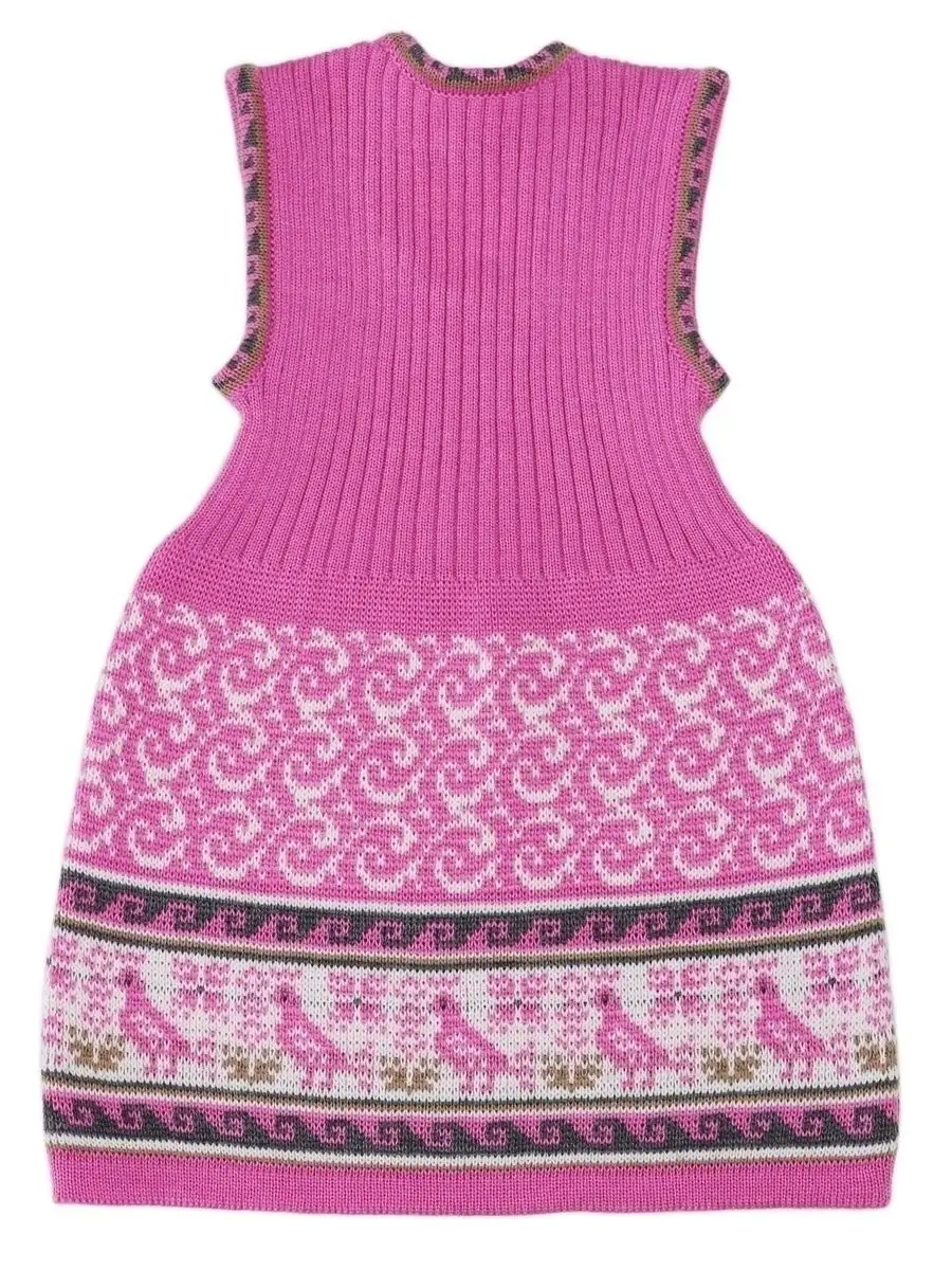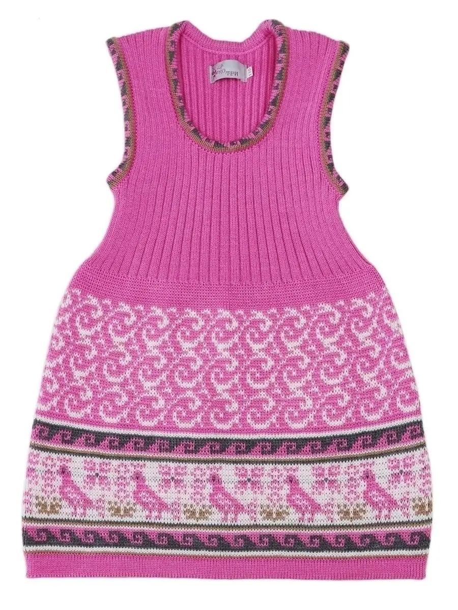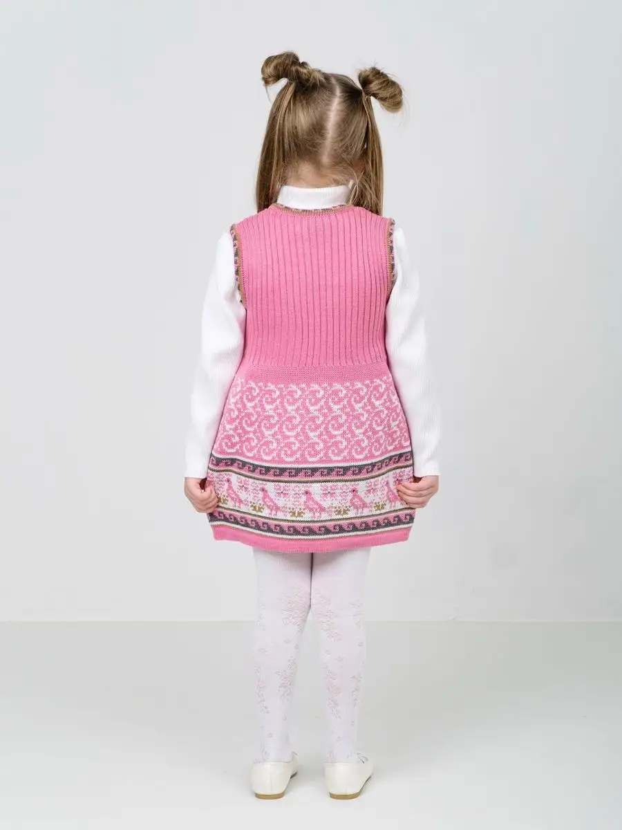 Сарафан для девочки вязаный с орнаментом. Сарафан платье выполнен из гипоаллергенной пряжи, поэтому юной моднице будет в нем комфортно, а благодаря полуприлегающему крою и вязке "резинкой" не стесняет движения. Сарафан для девочки в садик выполнен в технике жаккард, что делает модель нарядной и оригинальной. Сарафан подойдёт как для повседневной носки, так и на праздничный выход на утренник, день рождения, в цирк или в театр. При выборе размера советуем руководствоваться таблицей в карточке товара.