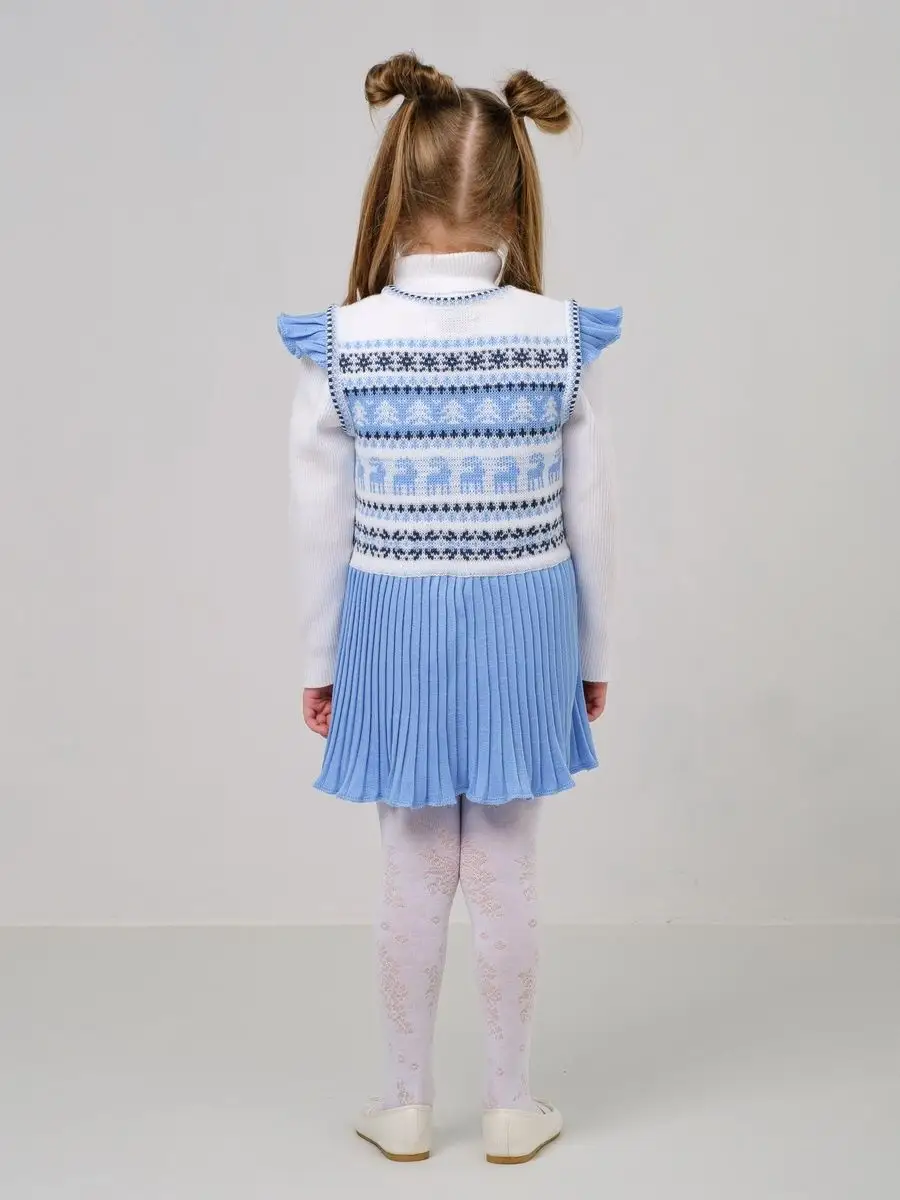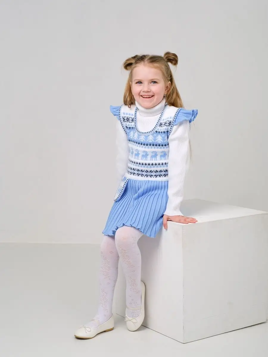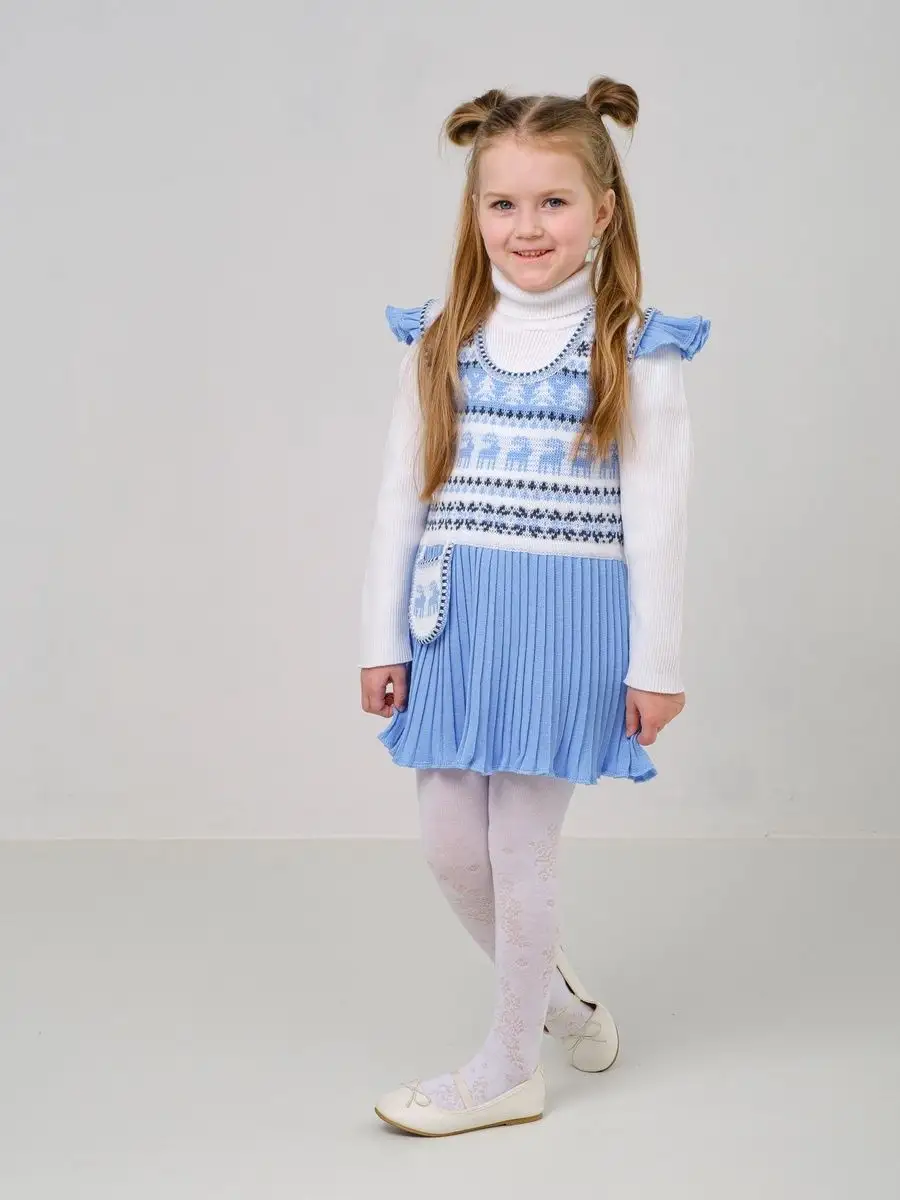 Нарядный сарафан для девочки с юбкой плиссе и кармашком-сумочкой. Особенностью модели является заниженная талия и крылышки на брителях, которые делают сарафан более интересным, а карман-сумочка придает функциональности. Платье вязаное имеет длину мини и может сочетаться как с леггинсами, так и с колготками. Сарафан для девочки украшен орнаментом в скандинавском стиле и цветной кеттлевкой на горловине и пройме. Сарафан подойдёт как для повседневной носки, так и на праздничный выход на утренник, день рождения, в цирк или в театр. Высокое качество, тщательность исполнения и ручная отделка являются неоспоримыми преимуществами. Платье сарафан для девочки выполнено из гипоаллергенной пряжи, поэтому юной моднице будет в нем комфортно, а благодаря свободному крою не стесняет движения. При выборе размера советуем руководствоваться таблицей в карточке товара.