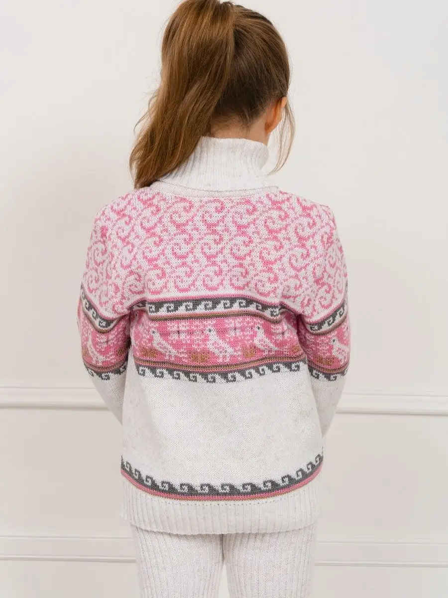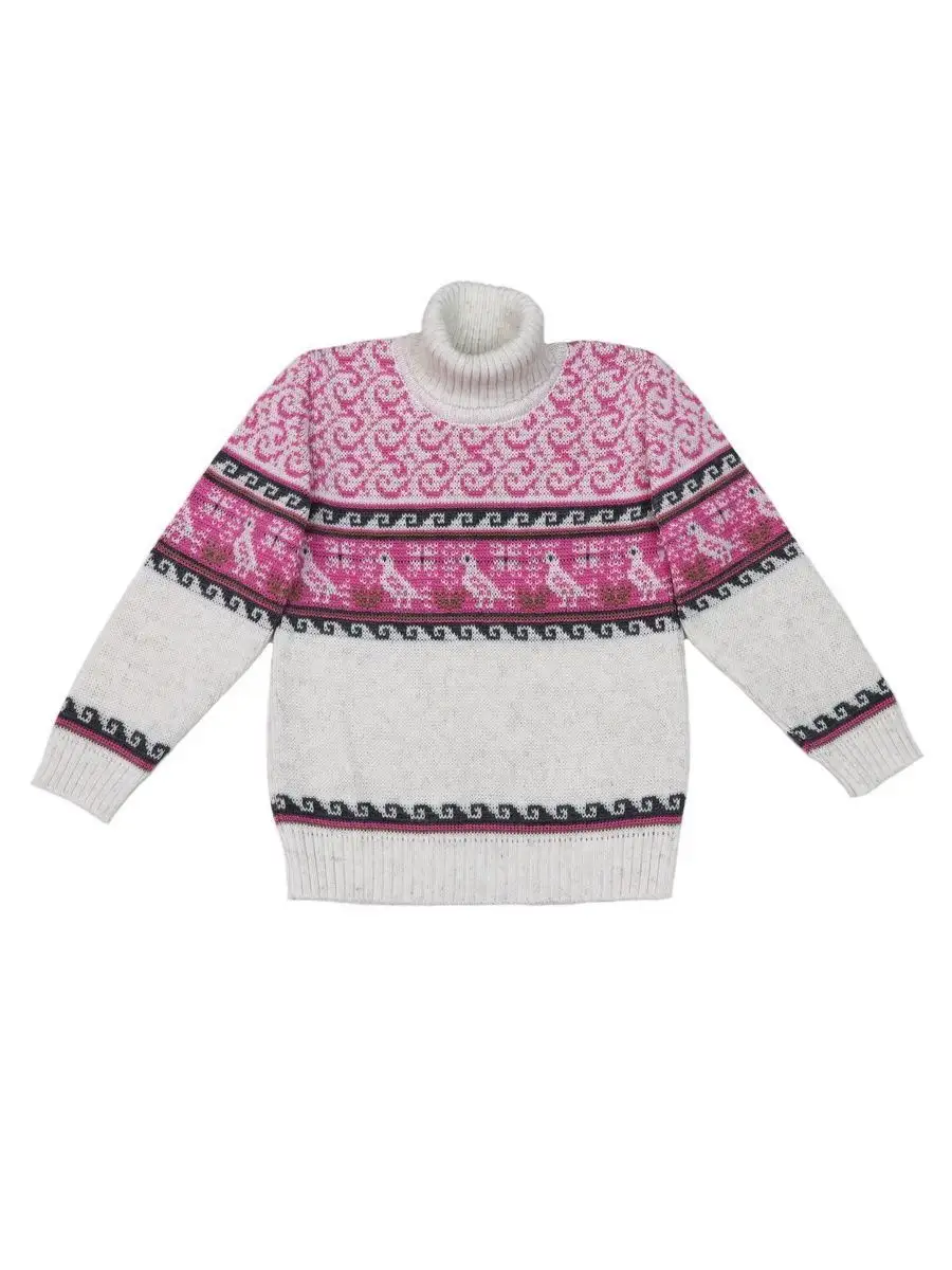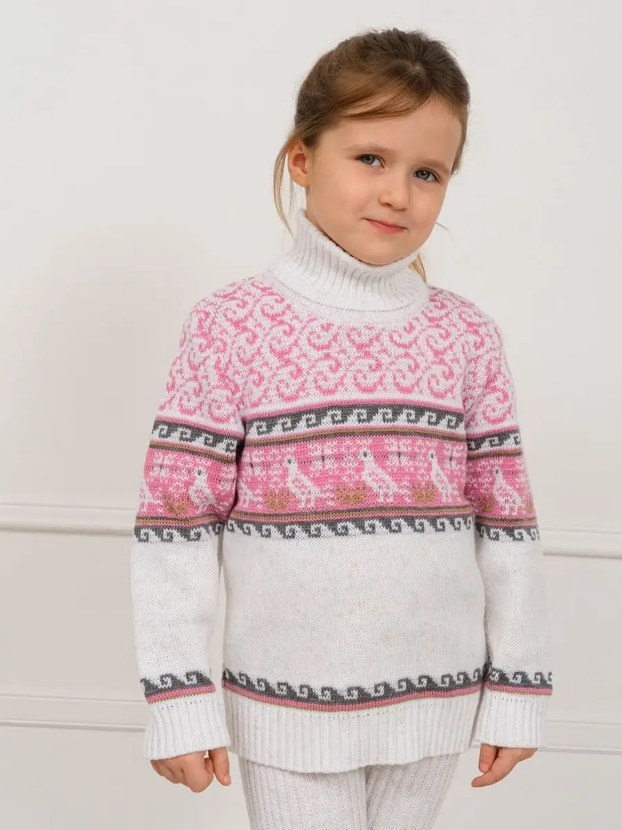 Вязаный классический свитер с орнаментом - необходимая вещь в гардеробе ребенка.Свитер детский подойдет как для мальчиков, так и для девочек. Удобный высокий воротник хорошо защищает от холода. Свитер с горлом комфортная и теплая вещь для носки в холодную погоду, в новогодние дни, для праздничной фотосессии, для прогулки на лыжах и катания на коньках, а также станет прекрасной идеей для подарка. Свитер вязаный выполнен из гипоаллергенной пряжи, поэтому ребенку будет в нем комфортно, а благодаря свободному крою не стесняет движения. При выборе размера советуем руководствоваться таблицей в карточке товара.
