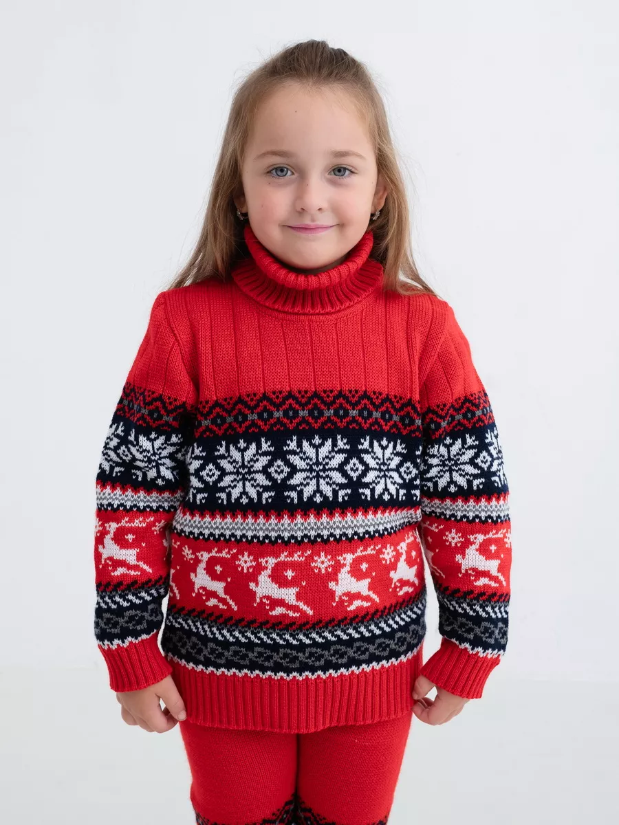 Классический вязаный свитер с оленями - необходимая вещь в гардеробе ребенка. Детский свитер подойдет как для мальчика, так и для девочки. Удобный высокий воротник хорошо защищает от холода. Свитер с горлом комфортная и теплая вещь для носки в холодную погоду, в новогодние дни, для праздничной фотосессии, для прогулки на лыжах и катания на коньках, а также станет прекрасной идеей для подарка. Вязаный свитер выполнен из гипоаллергенной пряжи, поэтому ребенку будет в нем комфортно, а благодаря свободному крою не стесняет движения. При выборе размера советуем руководствоваться таблицей в карточке товара.