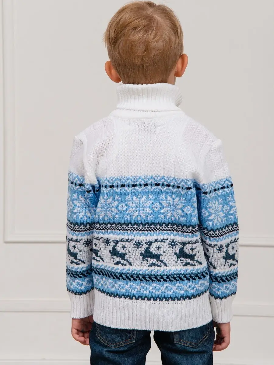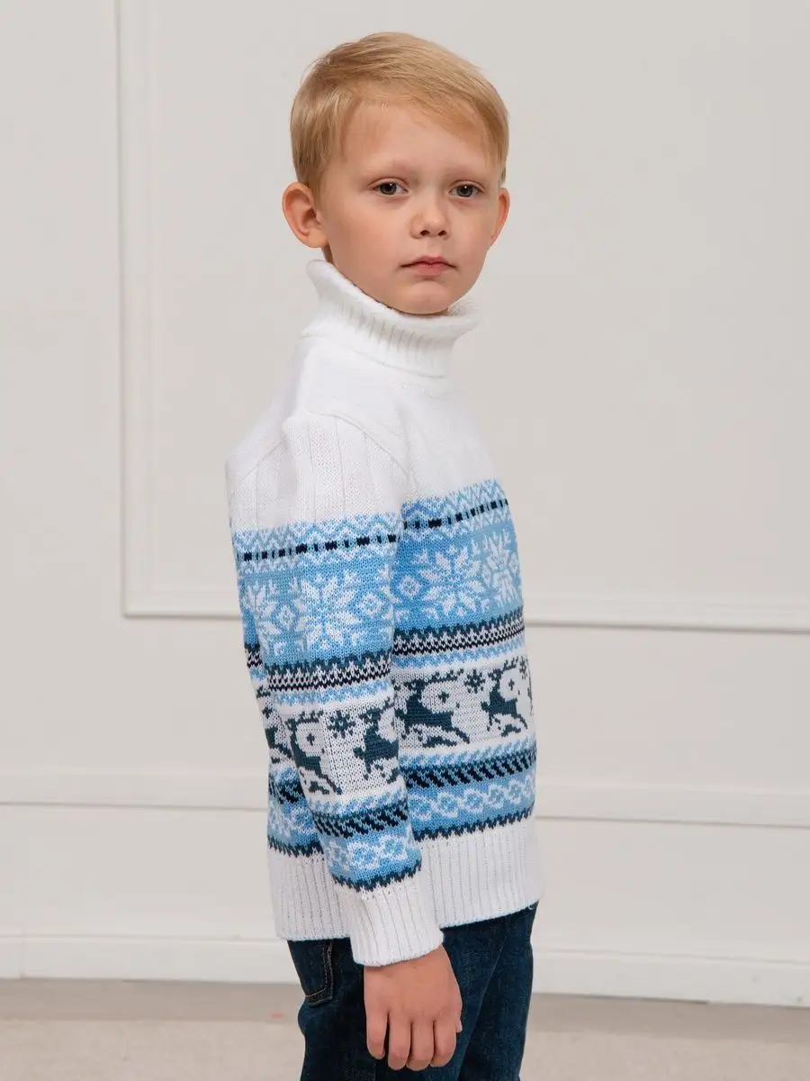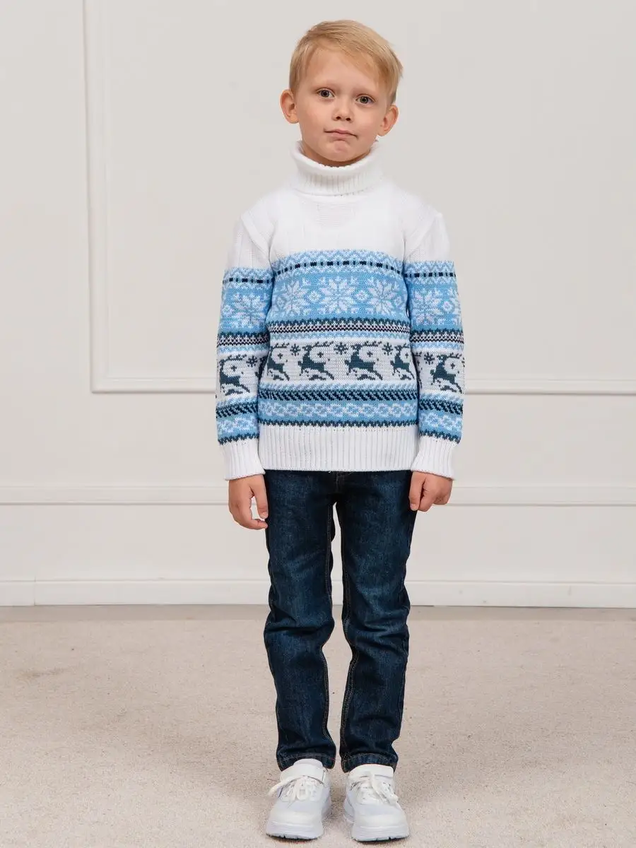 Классический вязаный свитер с оленями - необходимая вещь в гардеробе ребенка. Детский свитер подойдет как для мальчика, так и для девочки. Удобный высокий воротник хорошо защищает от холода. Свитер с горлом комфортная и теплая вещь для носки в холодную погоду, в новогодние дни, для праздничной фотосессии, для прогулки на лыжах и катания на коньках, а также станет прекрасной идеей для подарка. Вязаный свитер выполнен из гипоаллергенной пряжи, поэтому ребенку будет в нем комфортно, а благодаря свободному крою не стесняет движения. При выборе размера советуем руководствоваться таблицей в карточке товара.