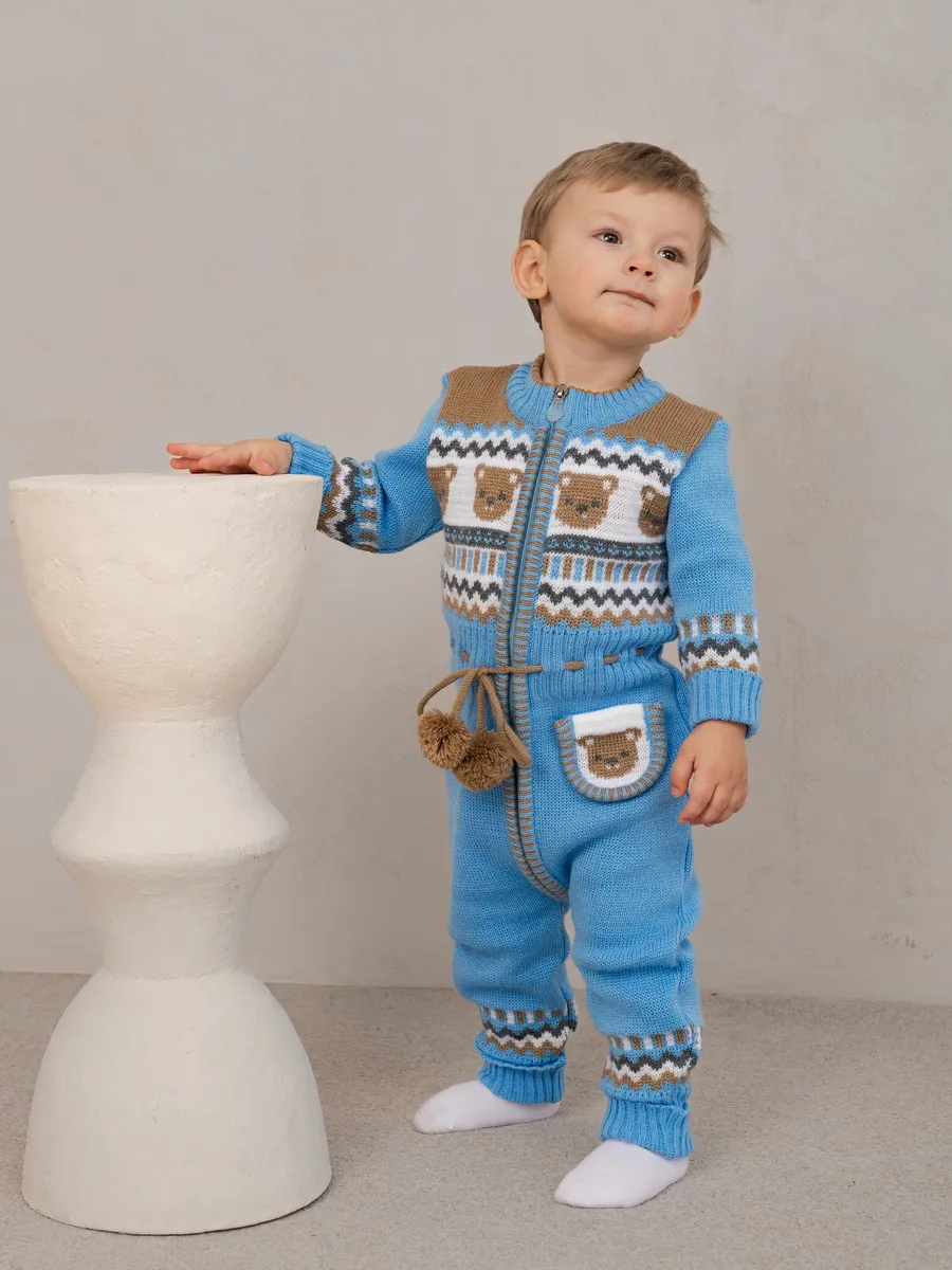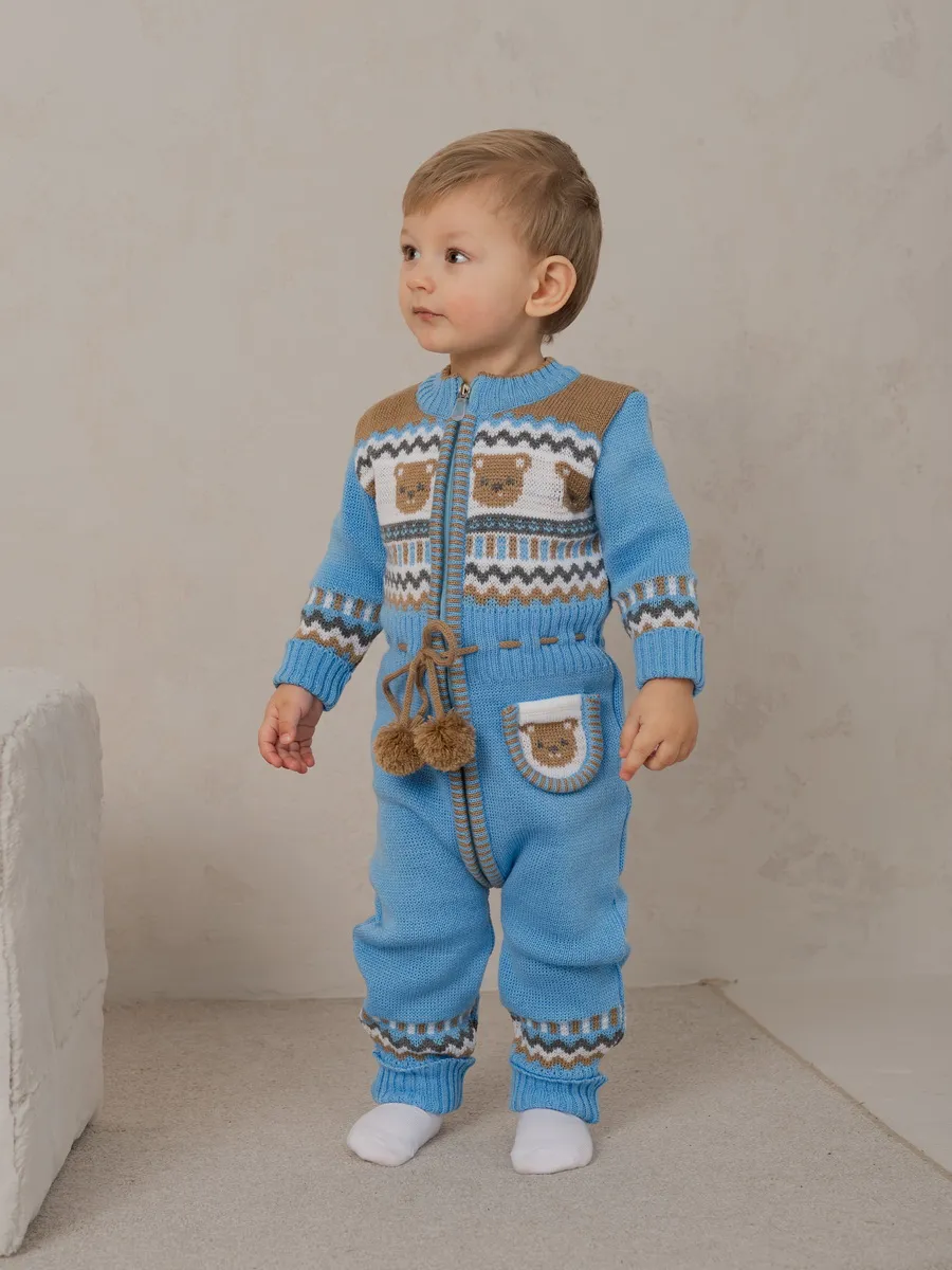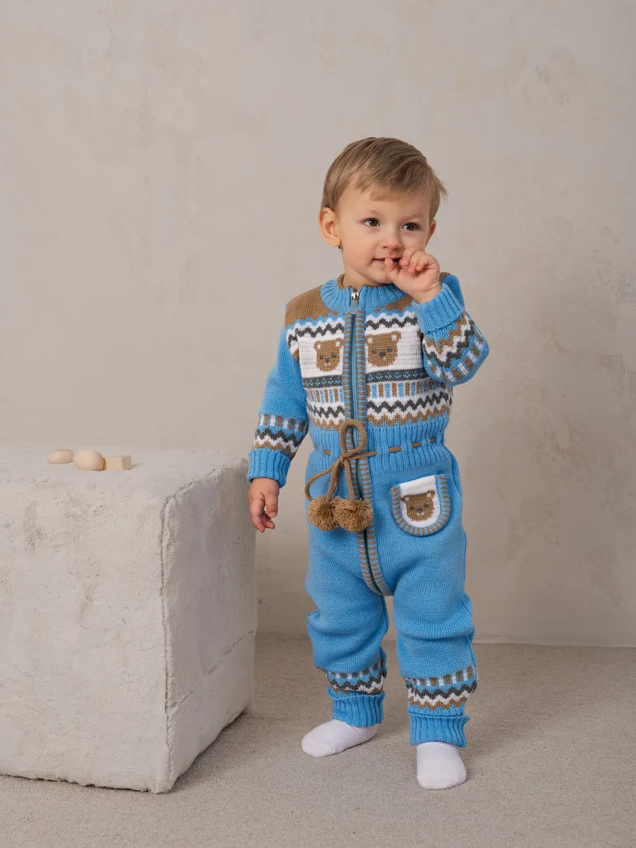 Милый комбинезон с мишками для малыша на молнии с помпончиками на кулиске не оставит равнодушным никого! Модель комбинезона универсальная и подойдет как для девочки так и для мальчика. Комбинезон для новорожденного совмещает в себе практические и эстетические характеристики: накладной кармашек с мордочкой мишки, помпончики-завязочки, отгибающиеся манжеты на рукавах и штанишках, которые можно регулировать по мере роста малыша, удобный воротничок, место для подгузника. Комбинезон подойдет зимой как поддева, а весной, осенью и прохладным летом как верхняя одежда. Бодик выполнен из гипоаллергенной пряжи, поэтому малышу будет в нем комфортно, а благодаря свободному крою не стесняет движения. Вязаный комбинезон выполнен в технике жаккард без протяжек нити на изнаночной стороне. Высокое качество, тщательность исполнения и ручная отделка являются неоспоримыми преимуществами. При выборе размера советуем руководствоваться таблицей в карточке товара.