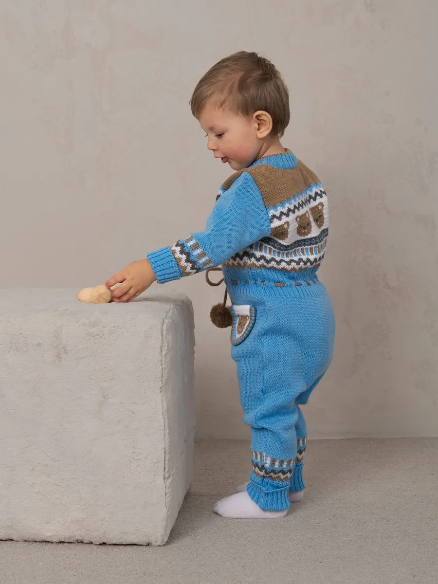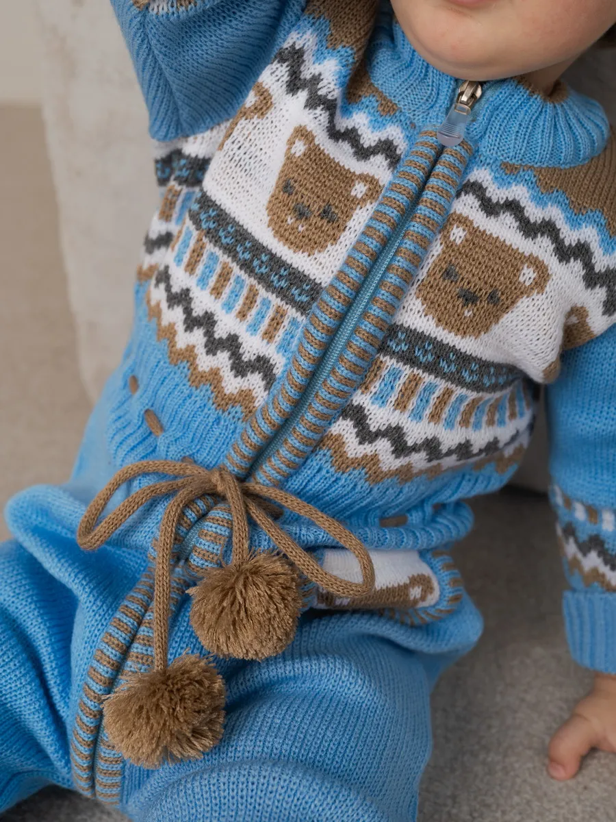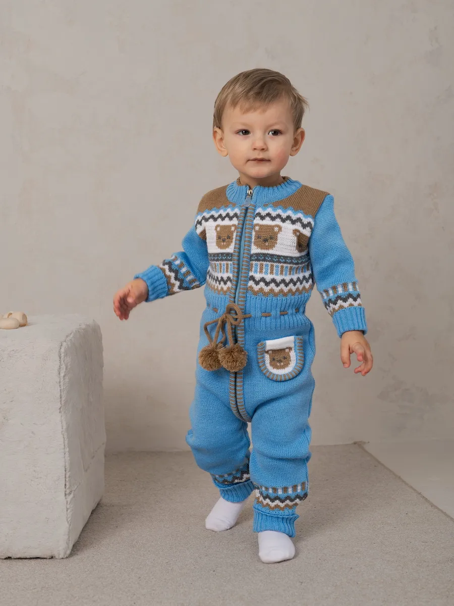Милый комбинезон с мишками для малыша на молнии с помпончиками на кулиске не оставит равнодушным никого! Модель комбинезона универсальная и подойдет как для девочки так и для мальчика. Комбинезон для новорожденного совмещает в себе практические и эстетические характеристики: накладной кармашек с мордочкой мишки, помпончики-завязочки, отгибающиеся манжеты на рукавах и штанишках, которые можно регулировать по мере роста малыша, удобный воротничок, место для подгузника. Комбинезон подойдет зимой как поддева, а весной, осенью и прохладным летом как верхняя одежда. Бодик выполнен из гипоаллергенной пряжи, поэтому малышу будет в нем комфортно, а благодаря свободному крою не стесняет движения. Вязаный комбинезон выполнен в технике жаккард без протяжек нити на изнаночной стороне. Высокое качество, тщательность исполнения и ручная отделка являются неоспоримыми преимуществами. При выборе размера советуем руководствоваться таблицей в карточке товара.