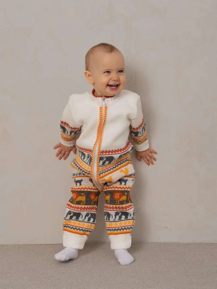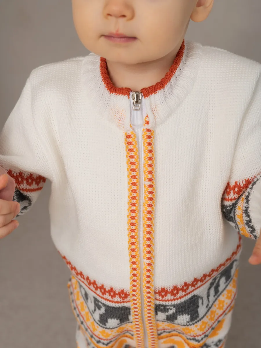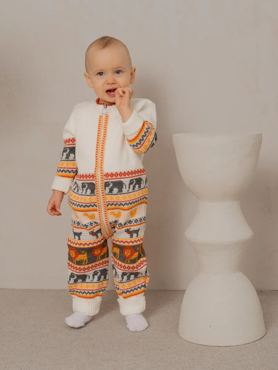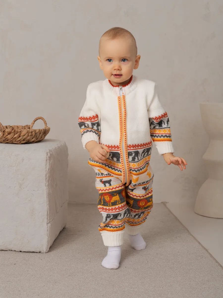 Комбинезон от КОвровский ТРИкотаж – идеальный выбор для самых маленьких. Свободный крой и мягкая крупная вязка из шерсти и пан обеспечивают комфорт и уют малышу. Молния по всей длине комбинезона позволяет быстро и удобно его надеть и снять. Модель с брюками и длинными рукавами подходит как для повседневной носки, так и для праздничных выходов. Оригинальный орнамент добавляет стильный акцент, делая комбинезон не только удобным, но и красивым.