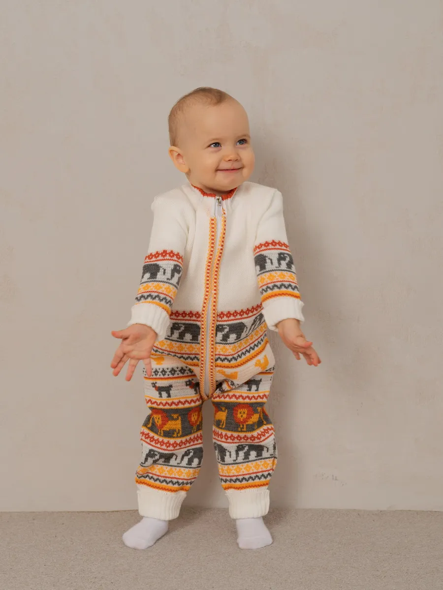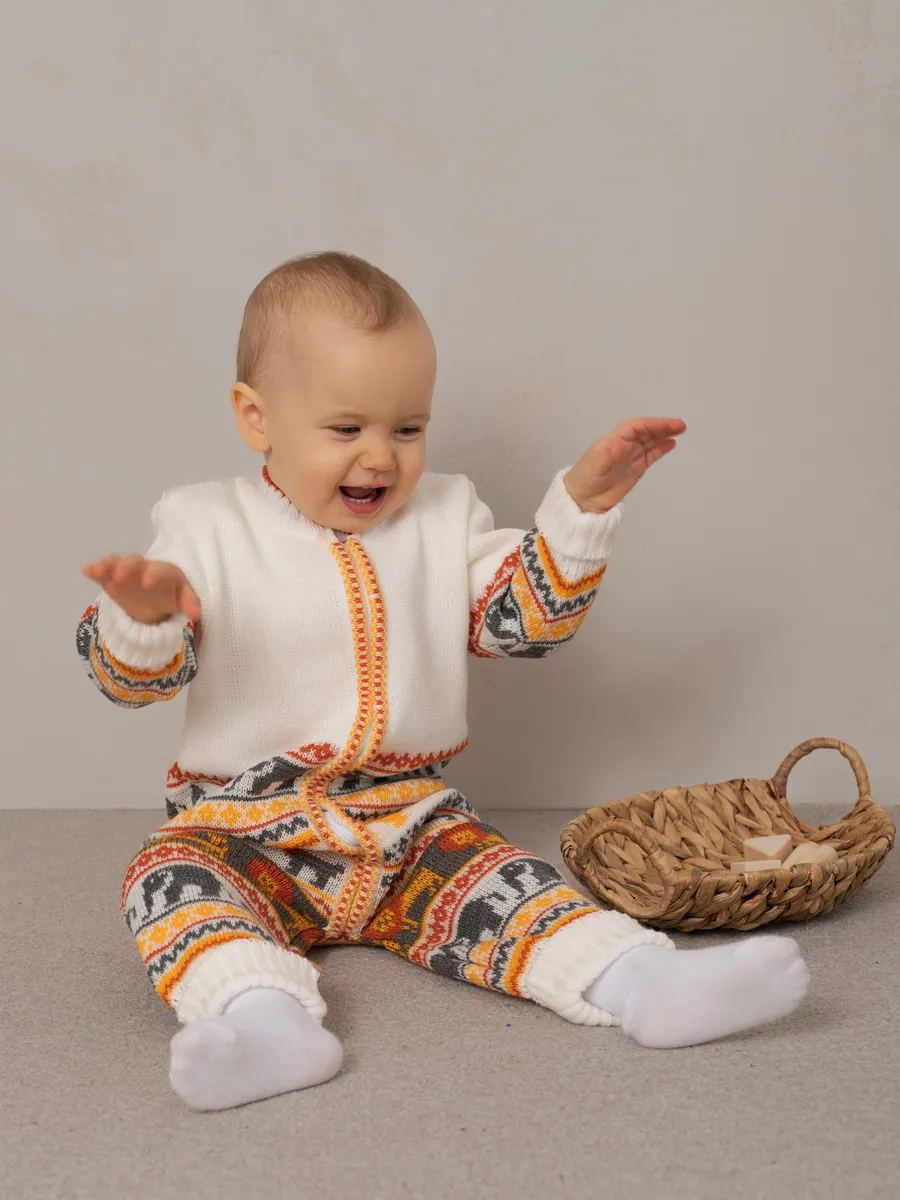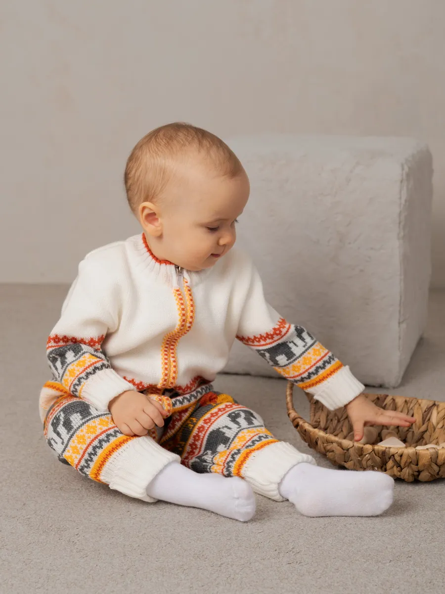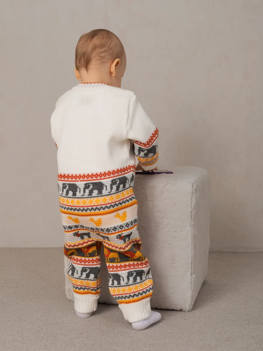 Комбинезон от КОвровский ТРИкотаж – идеальный выбор для самых маленьких. Свободный крой и мягкая крупная вязка из шерсти и пан обеспечивают комфорт и уют малышу. Молния по всей длине комбинезона позволяет быстро и удобно его надеть и снять. Модель с брюками и длинными рукавами подходит как для повседневной носки, так и для праздничных выходов. Оригинальный орнамент добавляет стильный акцент, делая комбинезон не только удобным, но и красивым.