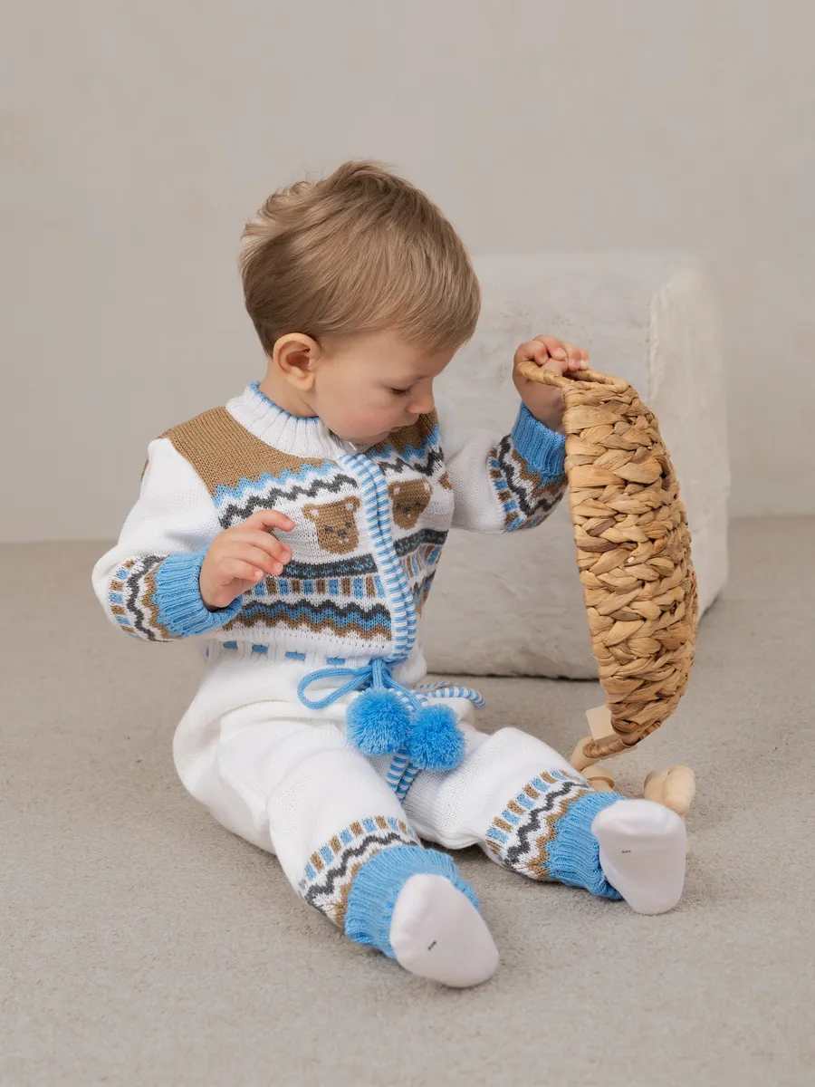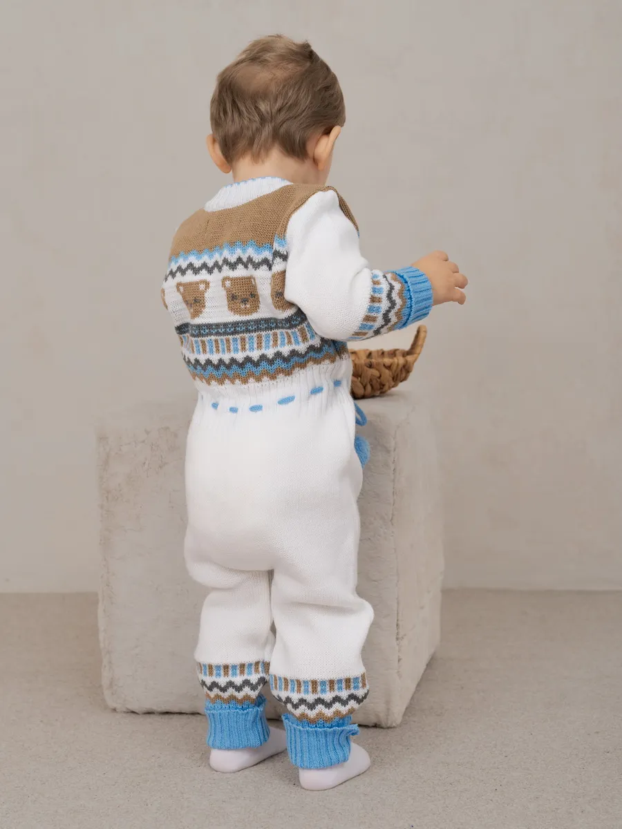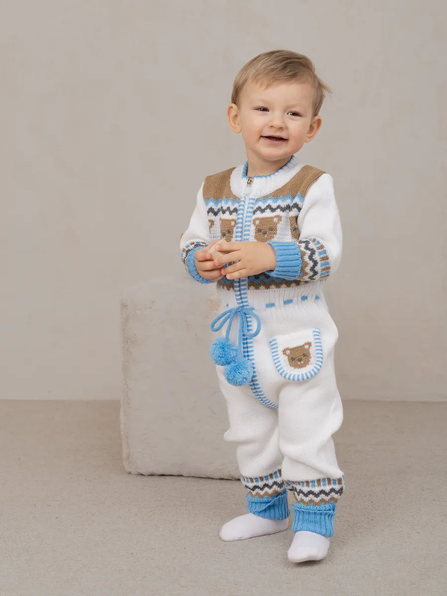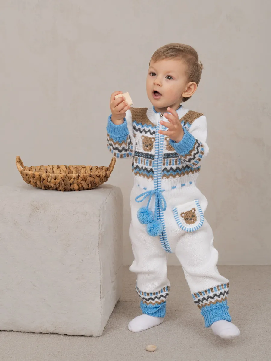 Милый комбинезон с мишками для малыша на молнии с помпончиками на кулиске не оставит равнодушным никого! Модель комбинезона универсальная и подойдет как для девочки так и для мальчика. Комбинезон для новорожденного совмещает в себе практические и эстетические характеристики: накладной кармашек с мордочкой мишки, помпончики-завязочки, отгибающиеся манжеты на рукавах и штанишках, которые можно регулировать по мере роста малыша, удобный воротничок, место для подгузника. Комбинезон подойдет зимой как поддева, а весной, осенью и прохладным летом как верхняя одежда. Бодик выполнен из гипоаллергенной пряжи, поэтому малышу будет в нем комфортно, а благодаря свободному крою не стесняет движения. Вязаный комбинезон выполнен в технике жаккард без протяжек нити на изнаночной стороне. Высокое качество, тщательность исполнения и ручная отделка являются неоспоримыми преимуществами. При выборе размера советуем руководствоваться таблицей в карточке товара.
