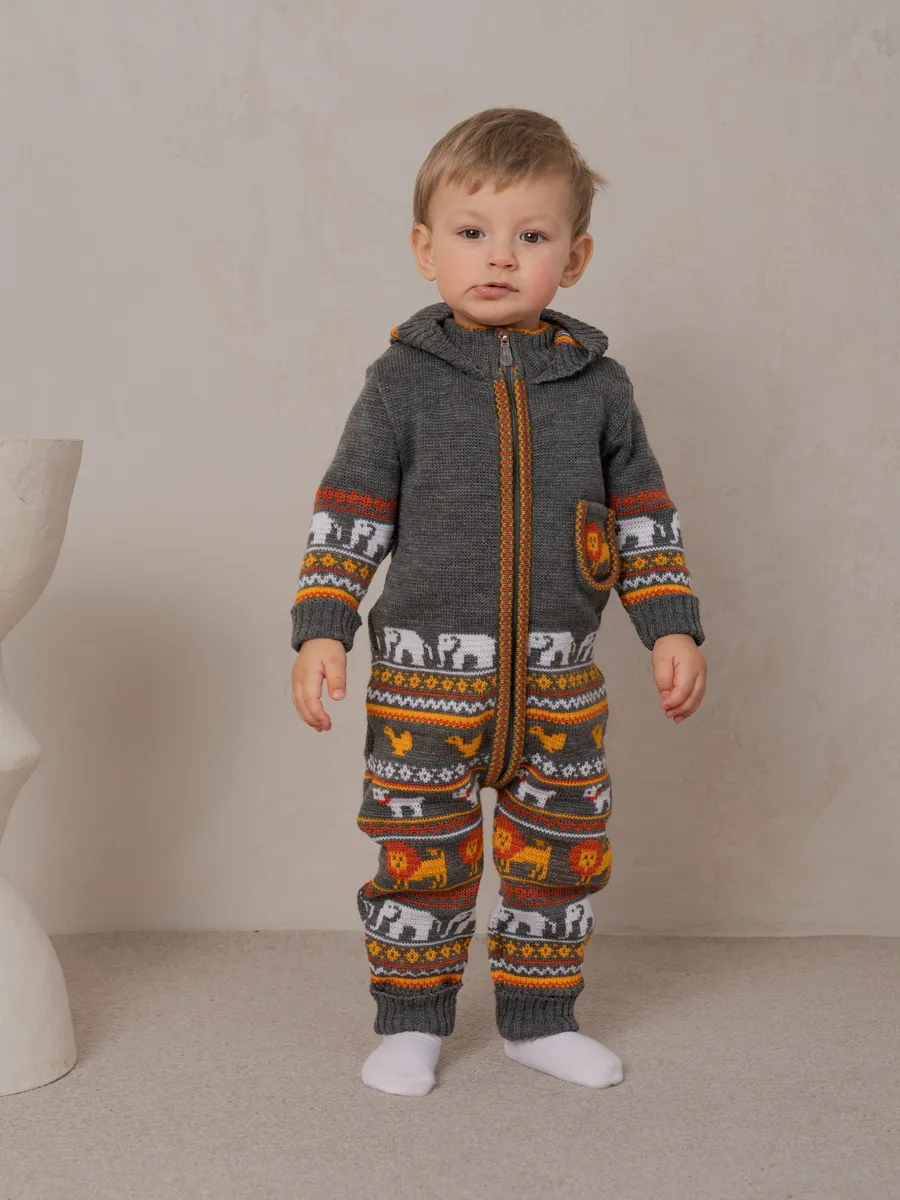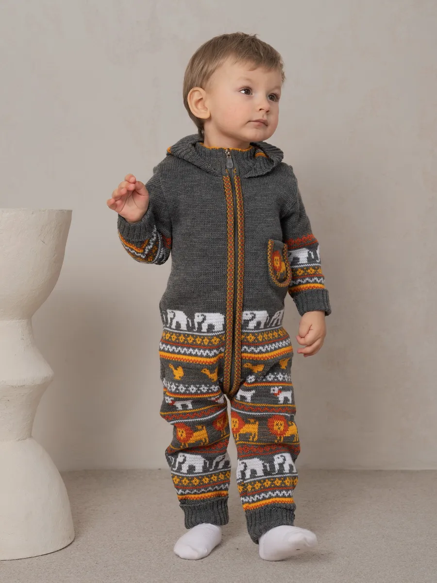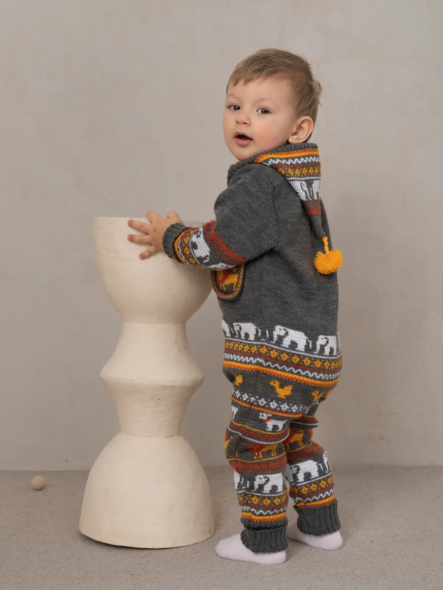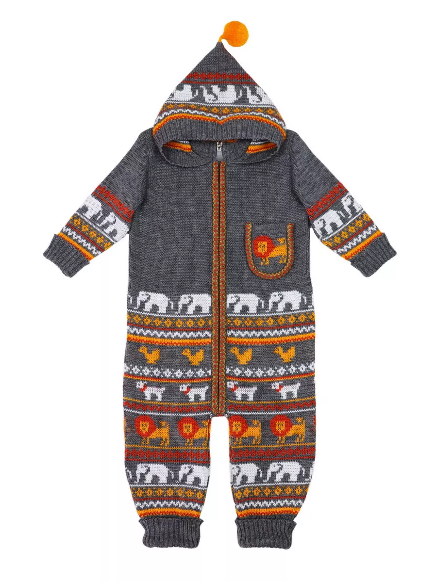 Комбинезон для малыша с забавным орнаментом на молнии с капюшоном и кармашком. Модель комбинезона универсальная и подойдет как для девочки так и для мальчика. Детский комбинезон идеальный вариант как для повседневной одежды второго слоя в холодное время года, так и верхней одежды в межсезонье. Теплый детский комбинезон выполнен из гипоаллергенной пряжи, поэтому малышу будет в нем комфортно, а благодаря свободному крою не стесняет движения. Вязаный комплект выполнен в технике жаккард без протяжек нити на изнаночной стороне. Высокое качество, тщательность исполнения и ручная отделка являются неоспоримыми преимуществами. При выборе размера советуем руководствоваться таблицей в карточке товара.