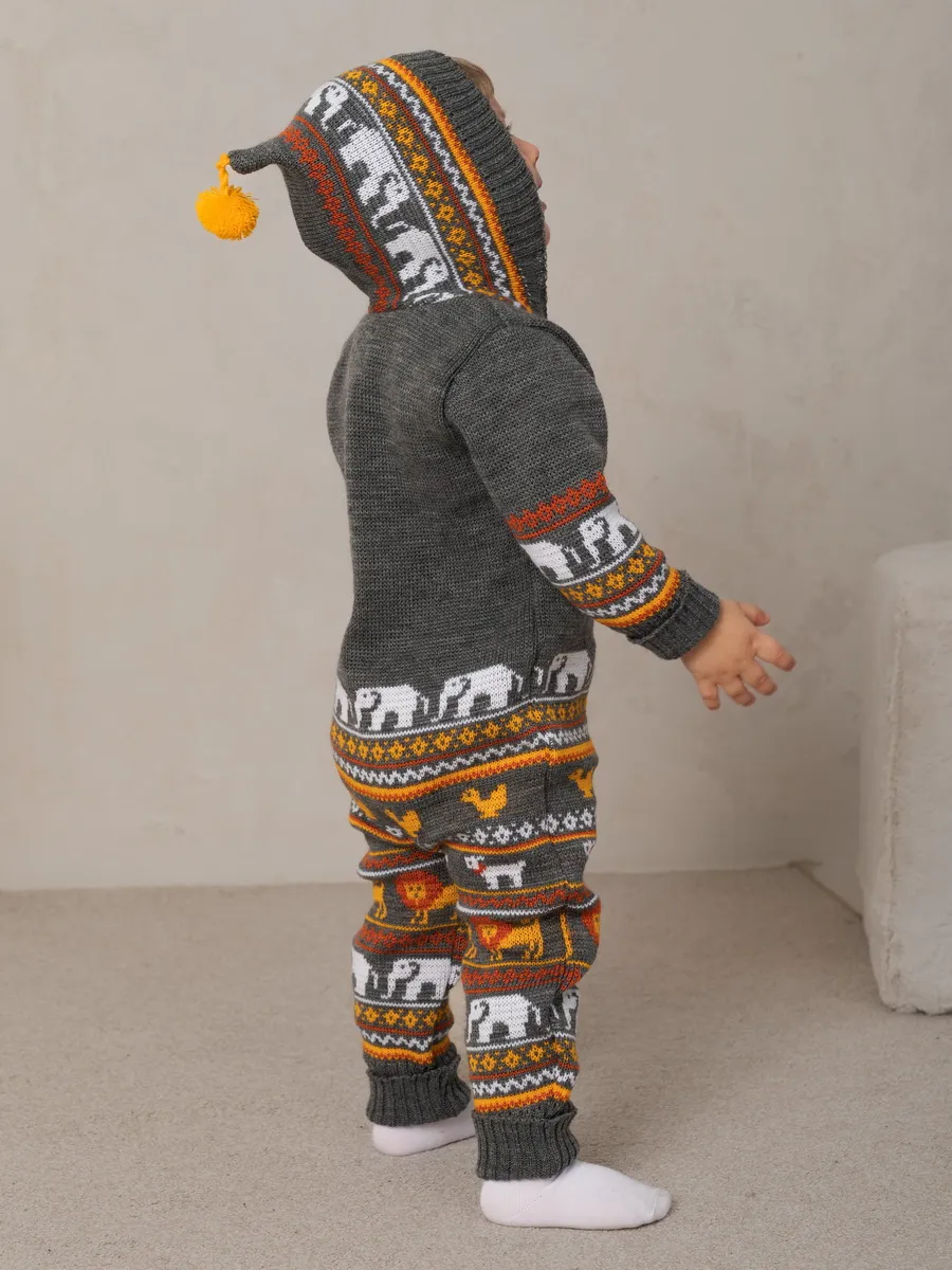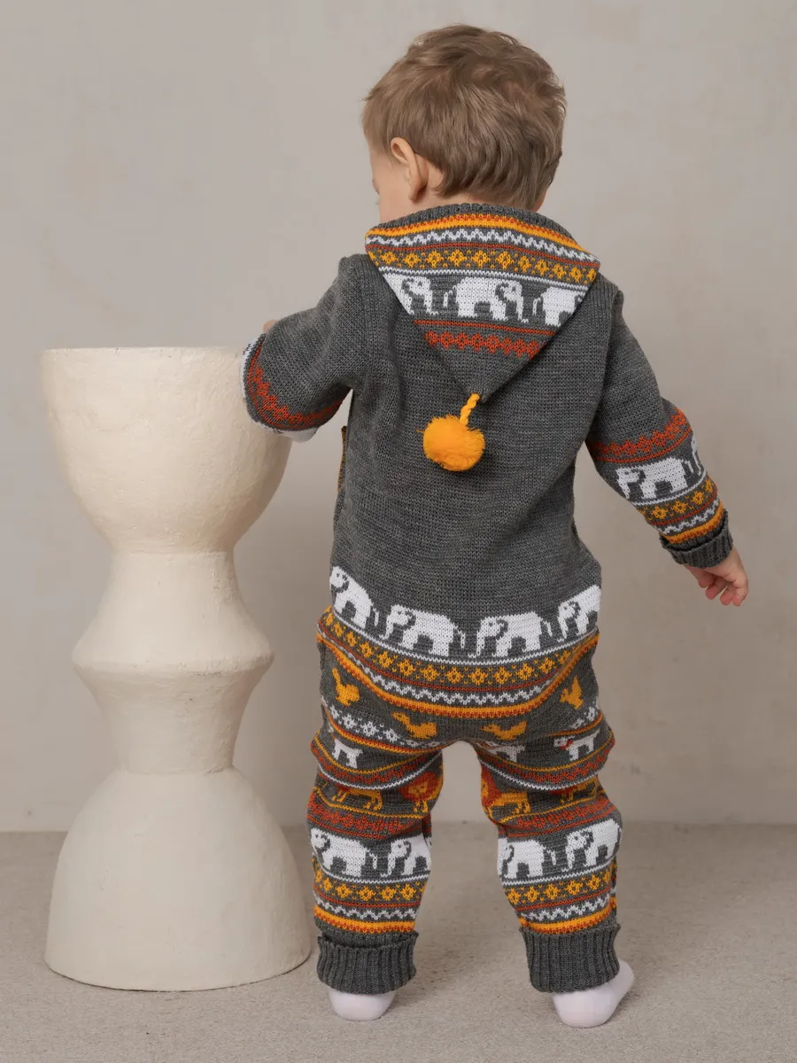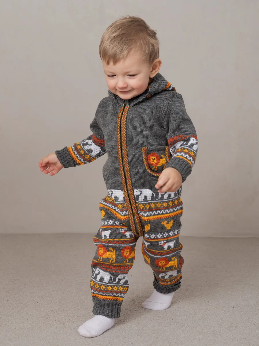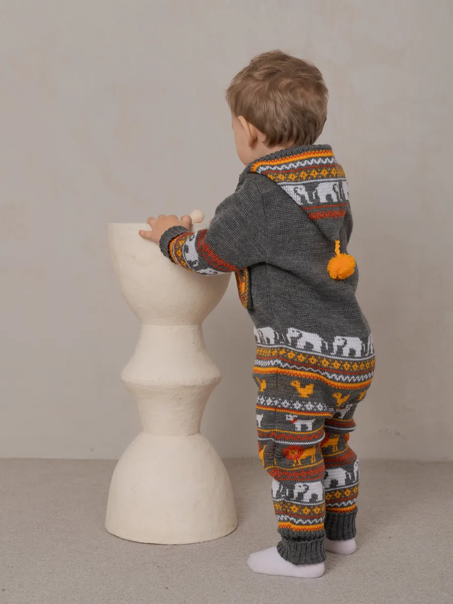 Комбинезон для малыша с забавным орнаментом на молнии с капюшоном и кармашком. Модель комбинезона универсальная и подойдет как для девочки так и для мальчика. Детский комбинезон идеальный вариант как для повседневной одежды второго слоя в холодное время года, так и верхней одежды в межсезонье. Теплый детский комбинезон выполнен из гипоаллергенной пряжи, поэтому малышу будет в нем комфортно, а благодаря свободному крою не стесняет движения. Вязаный комплект выполнен в технике жаккард без протяжек нити на изнаночной стороне. Высокое качество, тщательность исполнения и ручная отделка являются неоспоримыми преимуществами. При выборе размера советуем руководствоваться таблицей в карточке товара.