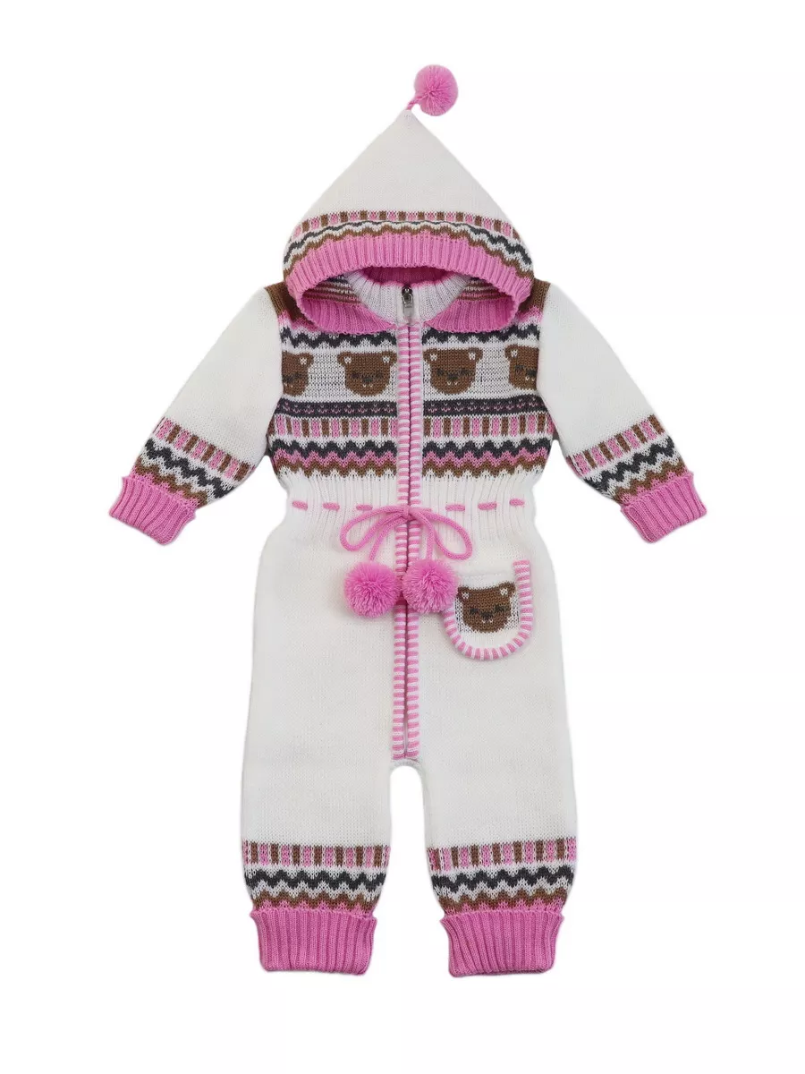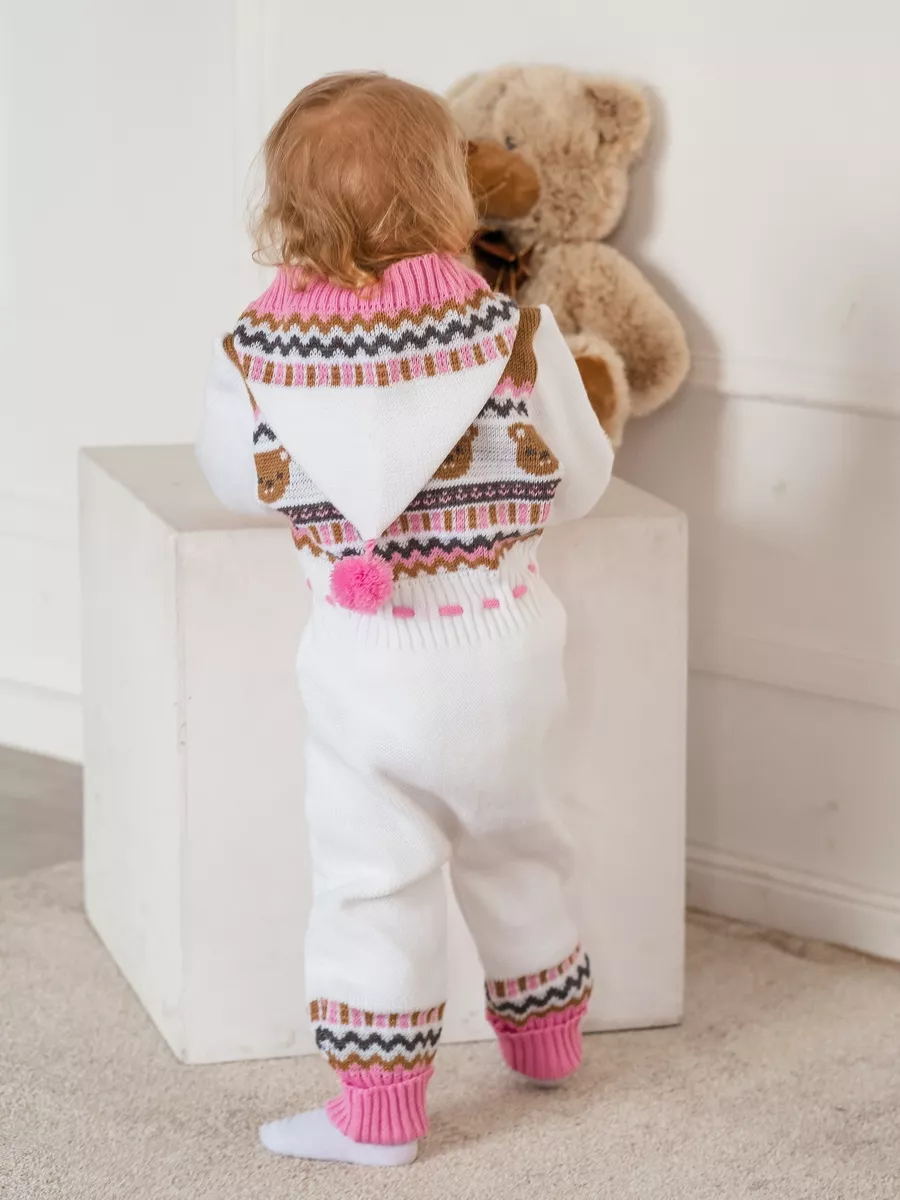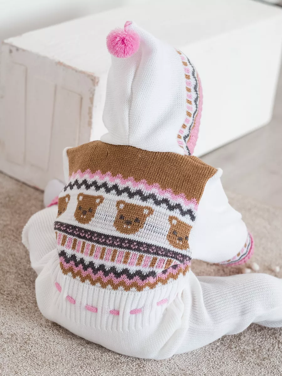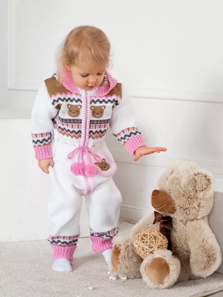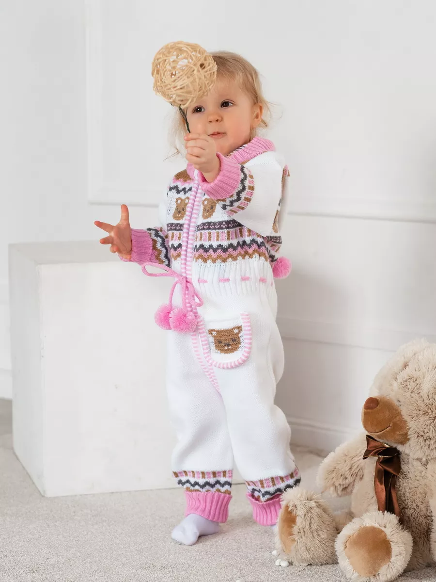 Милый комбинезон с мишками для малыша на молнии с помпончиком на макушке капюшона не оставит равнодушным никого! Модель комбинезона универсальная и подойдет как для девочки так и для мальчика. Комбинезон для новорожденного совмещает в себе практические и эстетические характеристики: накладной кармашек с мордочкой мишки, помпончики-завязочки, отгибающиеся манжеты на рукавах и штанишках, которые можно регулировать по мере роста малыша, удобный воротничок, место для подгузника. Комбинезон подойдет зимой как поддева, а весной, осенью и прохладным летом как верхняя одежда. Бодик выполнен из гипоаллергенной пряжи, поэтому малышу будет в нем комфортно, а благодаря свободному крою не стесняет движения. Вязаный комбинезон выполнен в технике жаккард без протяжек нити на изнаночной стороне. Высокое качество, тщательность исполнения и ручная отделка являются неоспоримыми преимуществами. При выборе размера советуем руководствоваться таблицей в карточке товара.