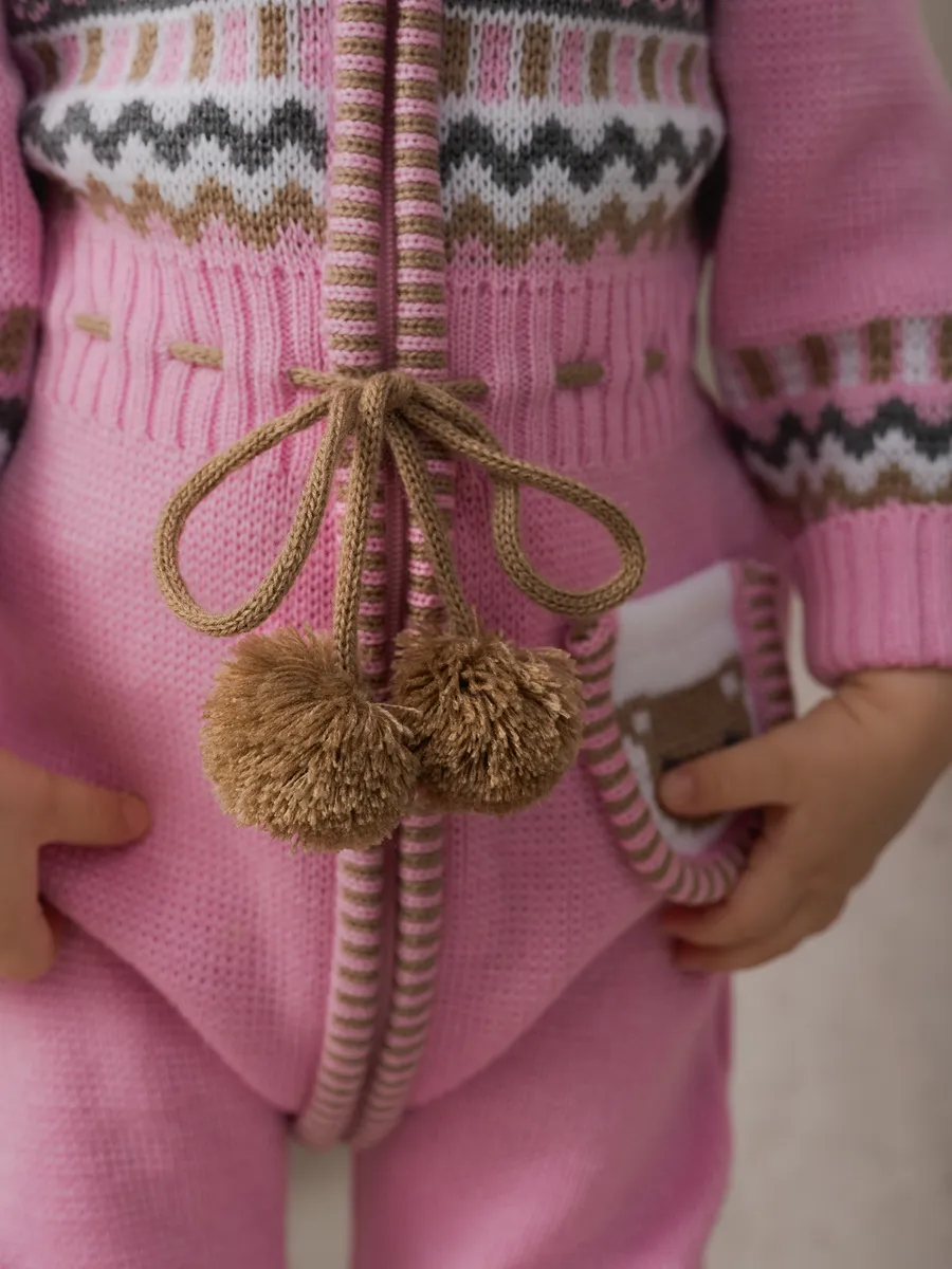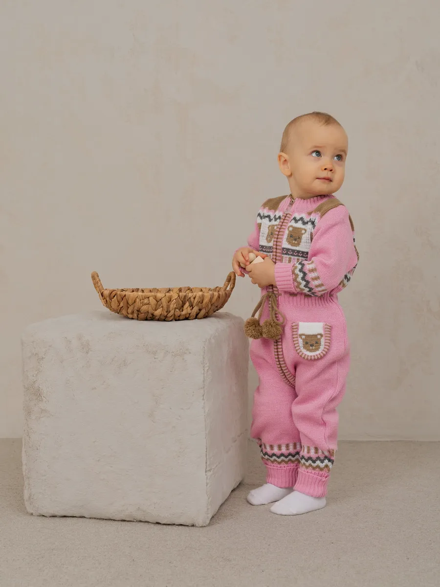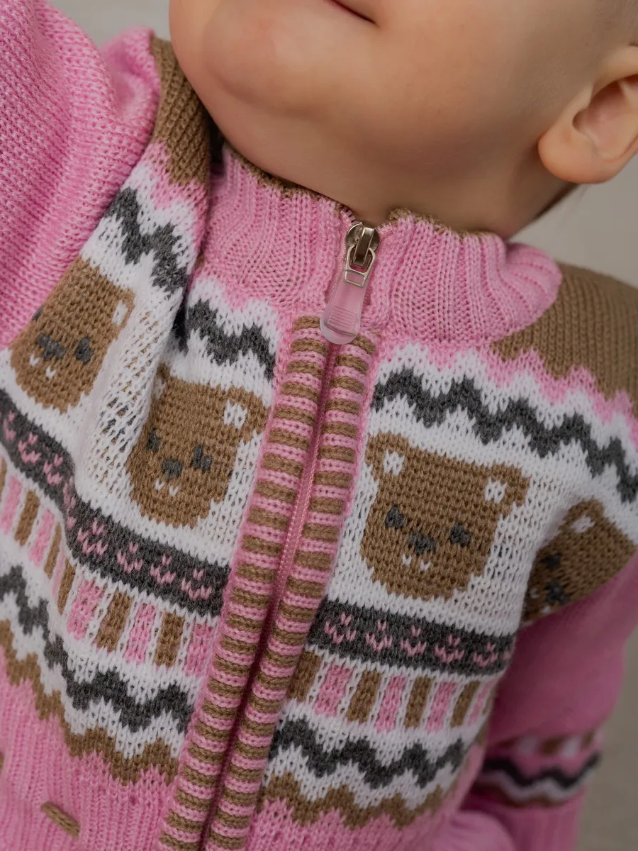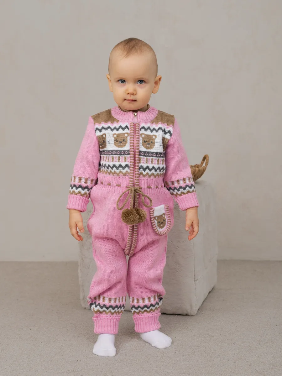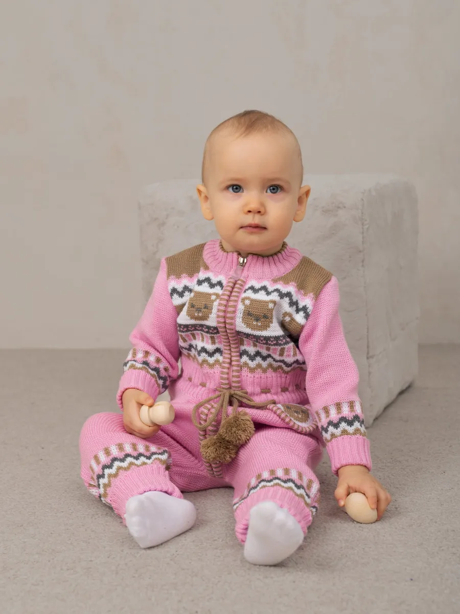 Милый комбинезон с мишками для малыша на молнии с помпончиками на кулиске не оставит равнодушным никого! Модель комбинезона универсальная и подойдет как для девочки так и для мальчика. Комбинезон для новорожденного совмещает в себе практические и эстетические характеристики: накладной кармашек с мордочкой мишки, помпончики-завязочки, отгибающиеся манжеты на рукавах и штанишках, которые можно регулировать по мере роста малыша, удобный воротничок, место для подгузника. Комбинезон подойдет зимой как поддева, а весной, осенью и прохладным летом как верхняя одежда. Бодик выполнен из гипоаллергенной пряжи, поэтому малышу будет в нем комфортно, а благодаря свободному крою не стесняет движения. Вязаный комбинезон выполнен в технике жаккард без протяжек нити на изнаночной стороне. Высокое качество, тщательность исполнения и ручная отделка являются неоспоримыми преимуществами. При выборе размера советуем руководствоваться таблицей в карточке товара.