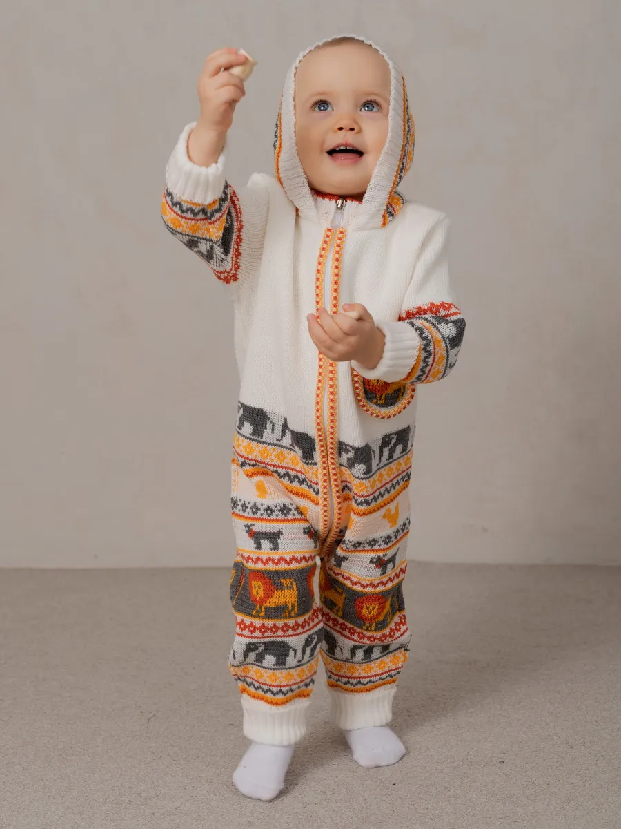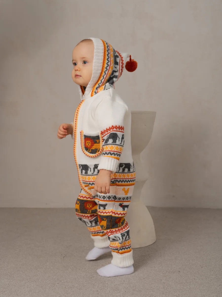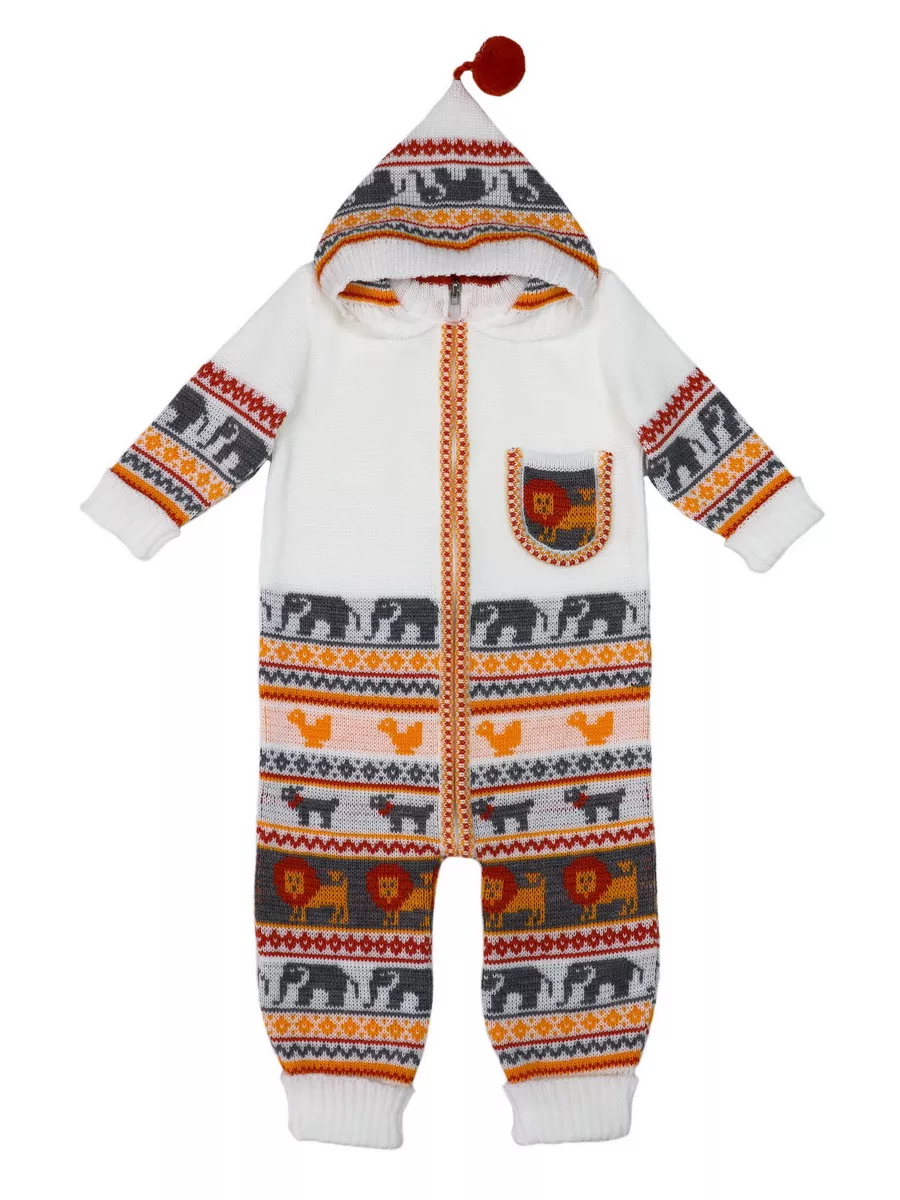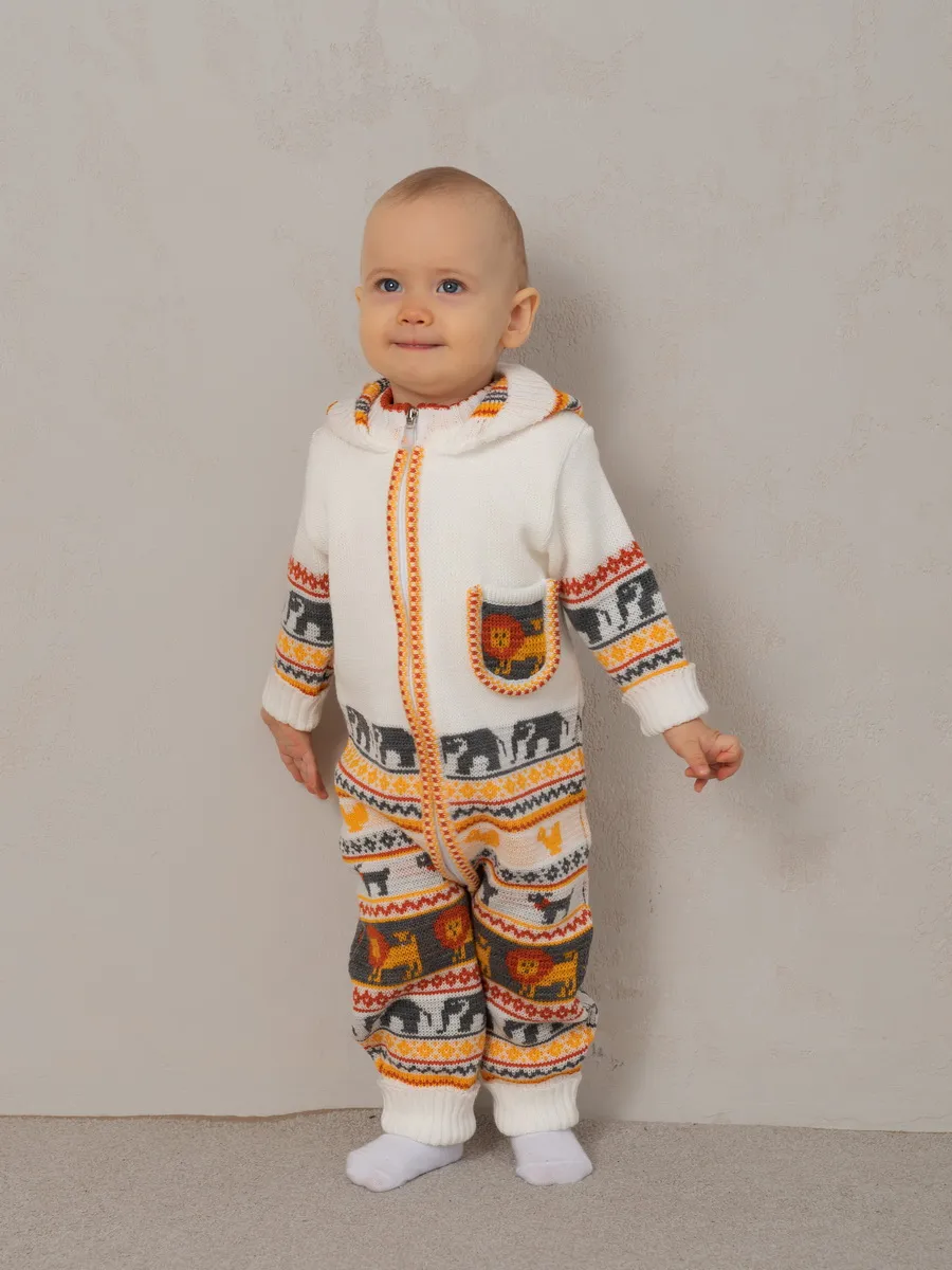 Комбинезон для малыша с забавным орнаментом на молнии с капюшоном и кармашком. Модель комбинезона универсальная и подойдет как для девочки так и для мальчика. Детский комбинезон идеальный вариант как для повседневной одежды второго слоя в холодное время года, так и верхней одежды в межсезонье. Теплый детский комбинезон выполнен из гипоаллергенной пряжи, поэтому малышу будет в нем комфортно, а благодаря свободному крою не стесняет движения. Вязаный комплект выполнен в технике жаккард без протяжек нити на изнаночной стороне. Высокое качество, тщательность исполнения и ручная отделка являются неоспоримыми преимуществами. При выборе размера советуем руководствоваться таблицей в карточке товара.