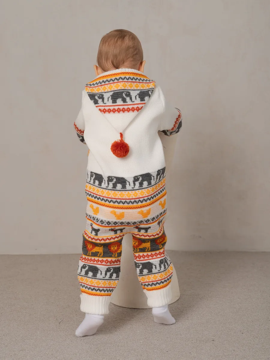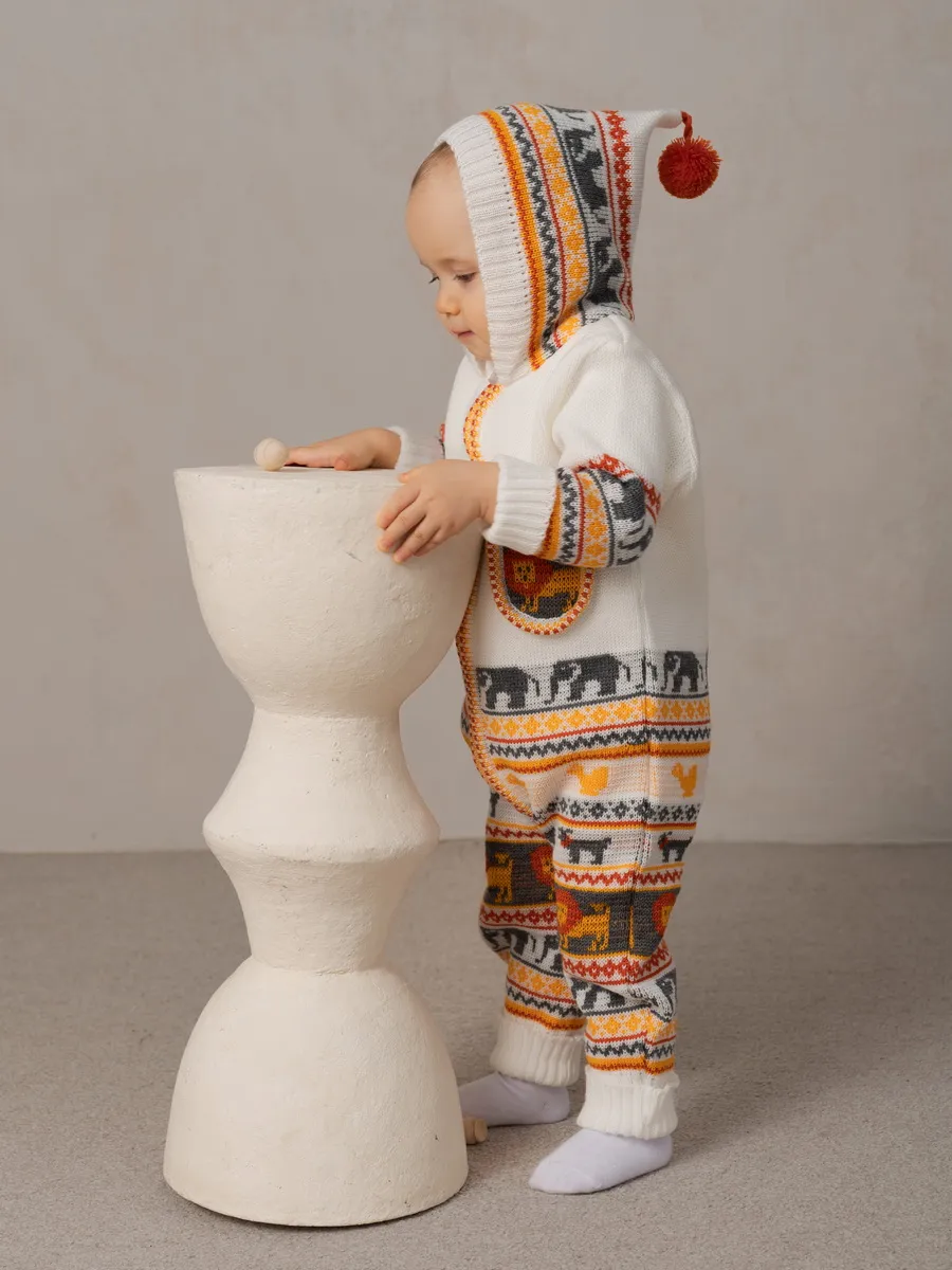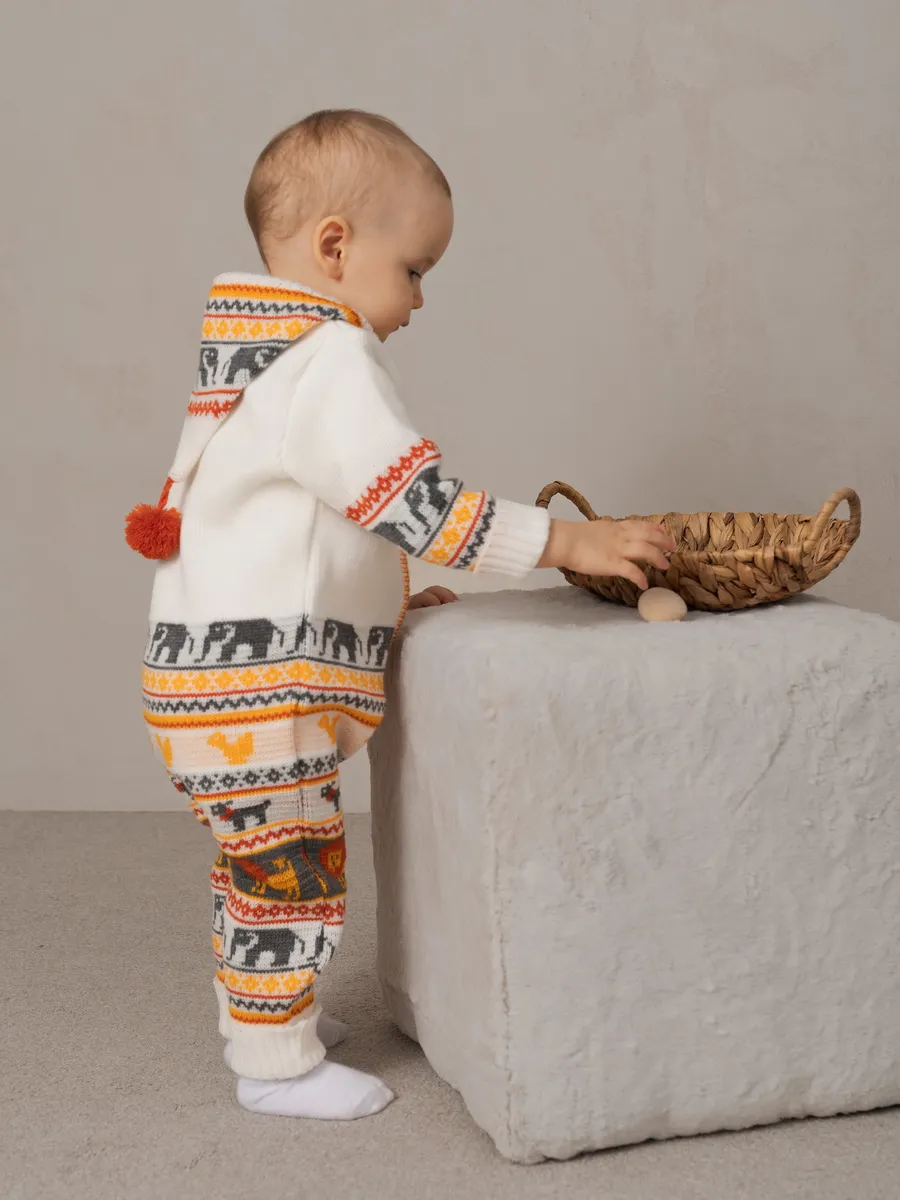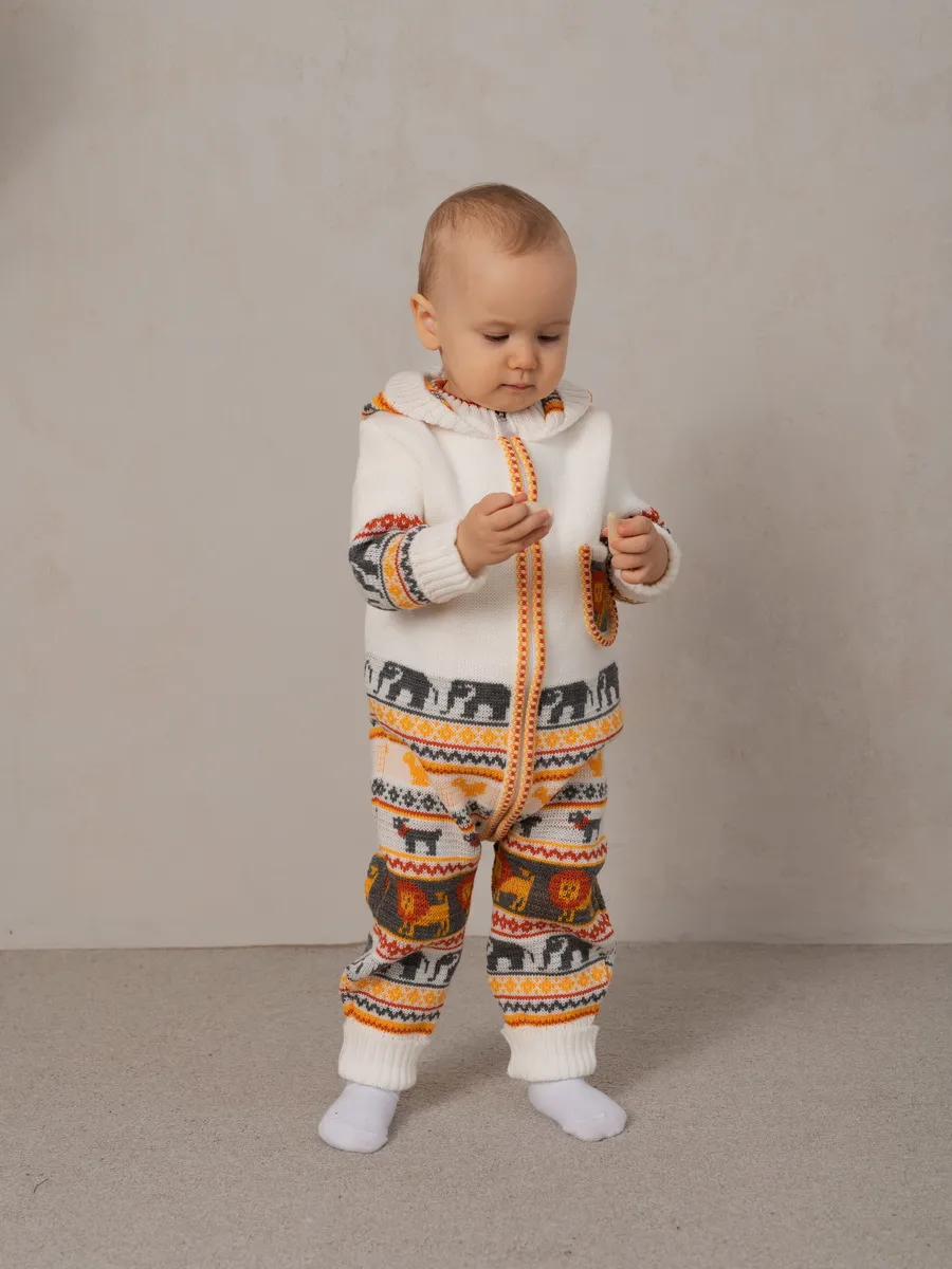 Комбинезон для малыша с забавным орнаментом на молнии с капюшоном и кармашком. Модель комбинезона универсальная и подойдет как для девочки так и для мальчика. Детский комбинезон идеальный вариант как для повседневной одежды второго слоя в холодное время года, так и верхней одежды в межсезонье. Теплый детский комбинезон выполнен из гипоаллергенной пряжи, поэтому малышу будет в нем комфортно, а благодаря свободному крою не стесняет движения. Вязаный комплект выполнен в технике жаккард без протяжек нити на изнаночной стороне. Высокое качество, тщательность исполнения и ручная отделка являются неоспоримыми преимуществами. При выборе размера советуем руководствоваться таблицей в карточке товара.