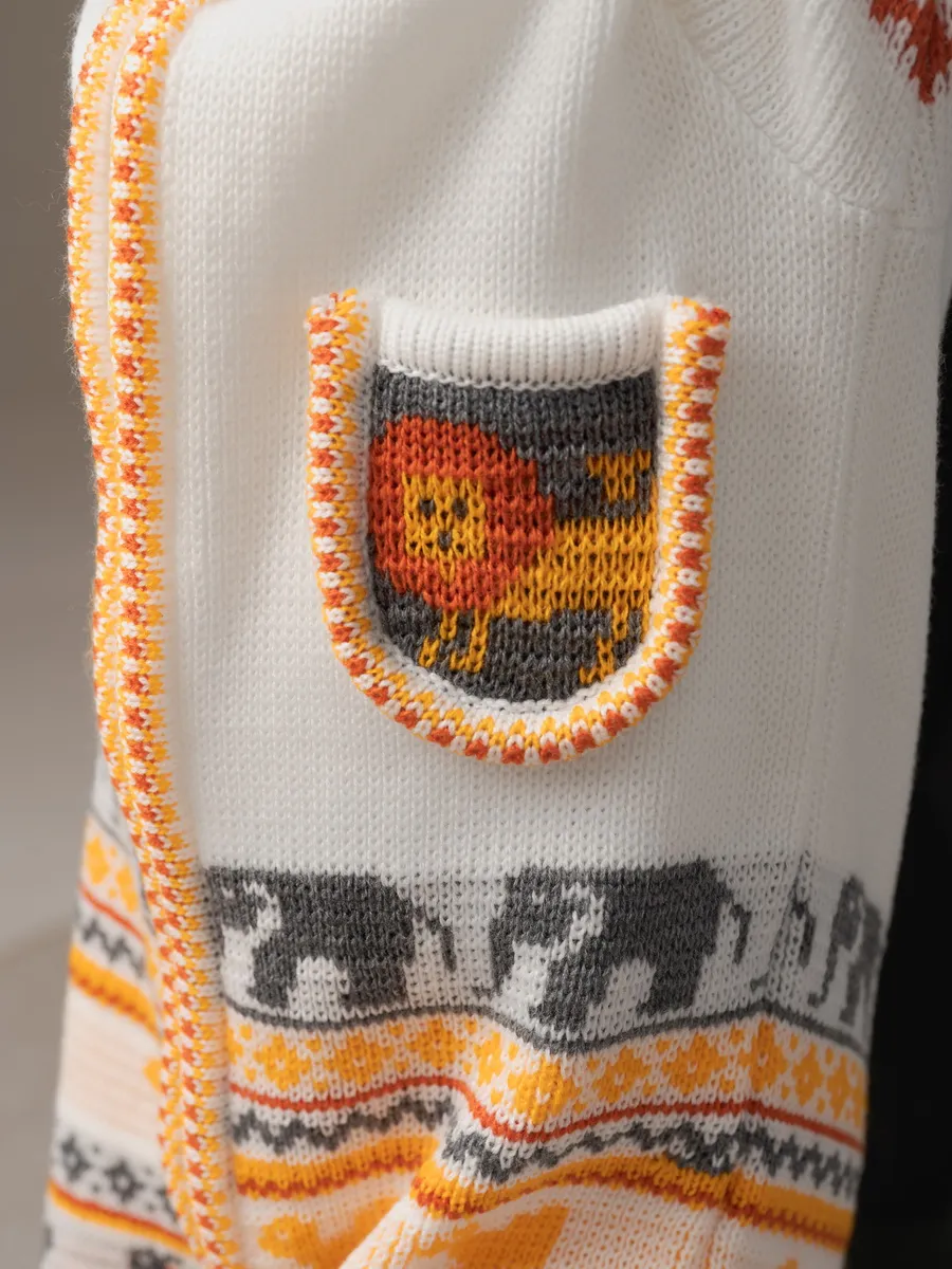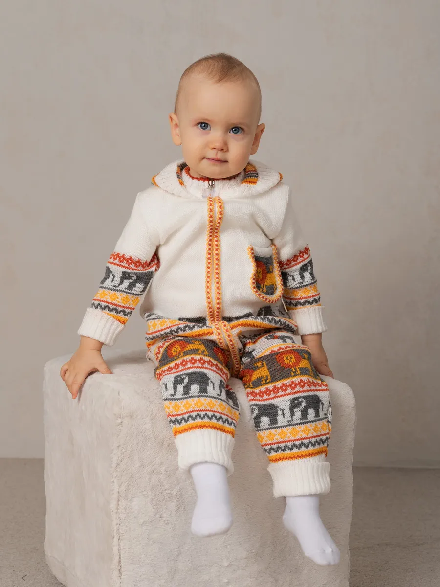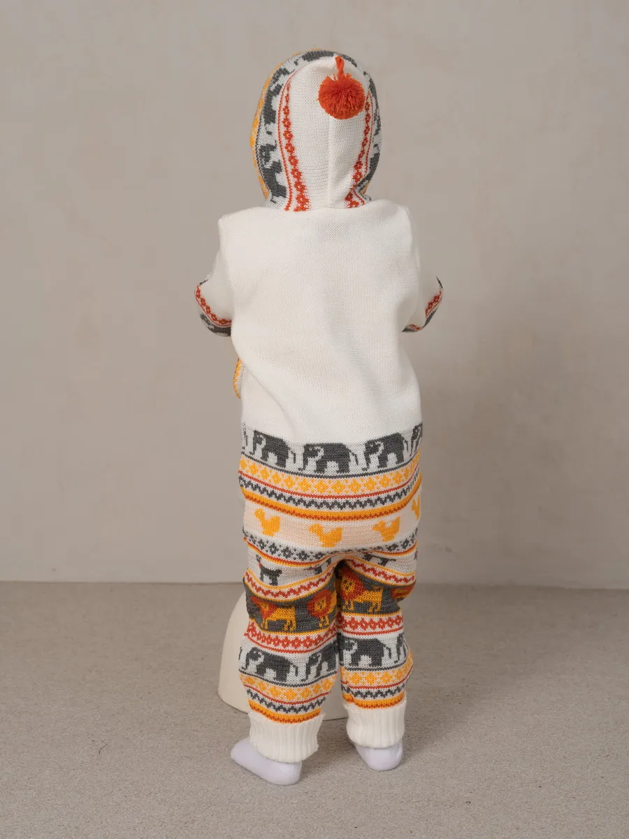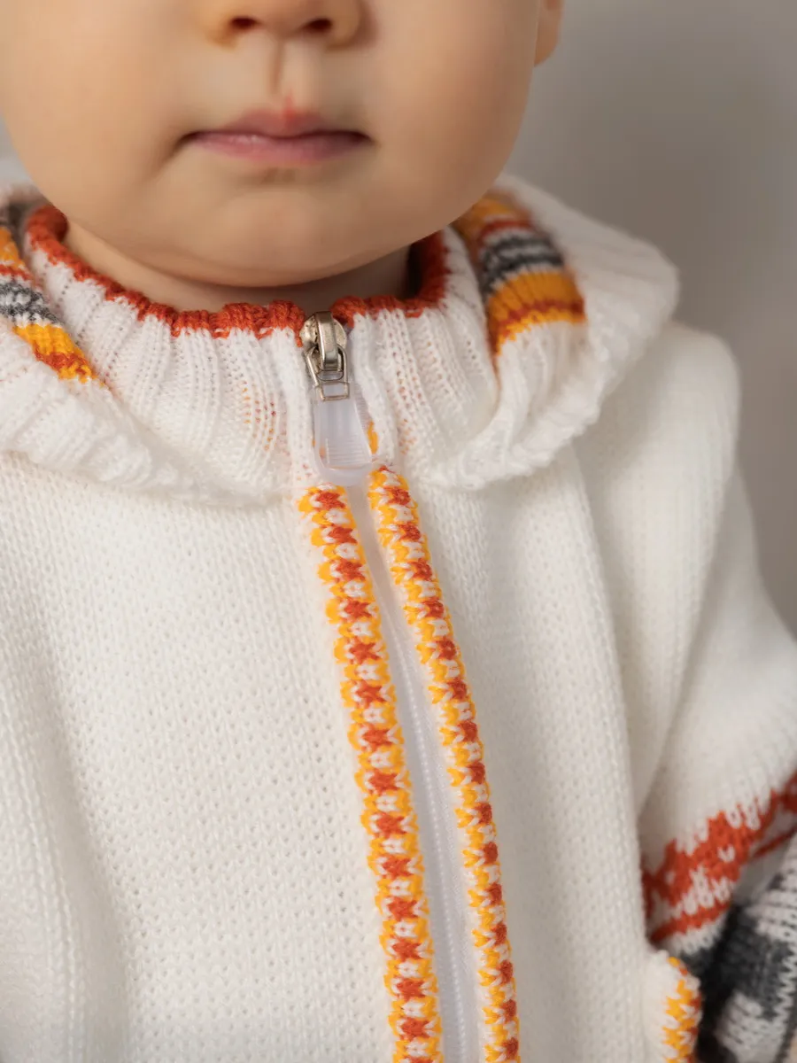 Комбинезон для малыша с забавным орнаментом на молнии с капюшоном и кармашком. Модель комбинезона универсальная и подойдет как для девочки так и для мальчика. Детский комбинезон идеальный вариант как для повседневной одежды второго слоя в холодное время года, так и верхней одежды в межсезонье. Теплый детский комбинезон выполнен из гипоаллергенной пряжи, поэтому малышу будет в нем комфортно, а благодаря свободному крою не стесняет движения. Вязаный комплект выполнен в технике жаккард без протяжек нити на изнаночной стороне. Высокое качество, тщательность исполнения и ручная отделка являются неоспоримыми преимуществами. При выборе размера советуем руководствоваться таблицей в карточке товара.