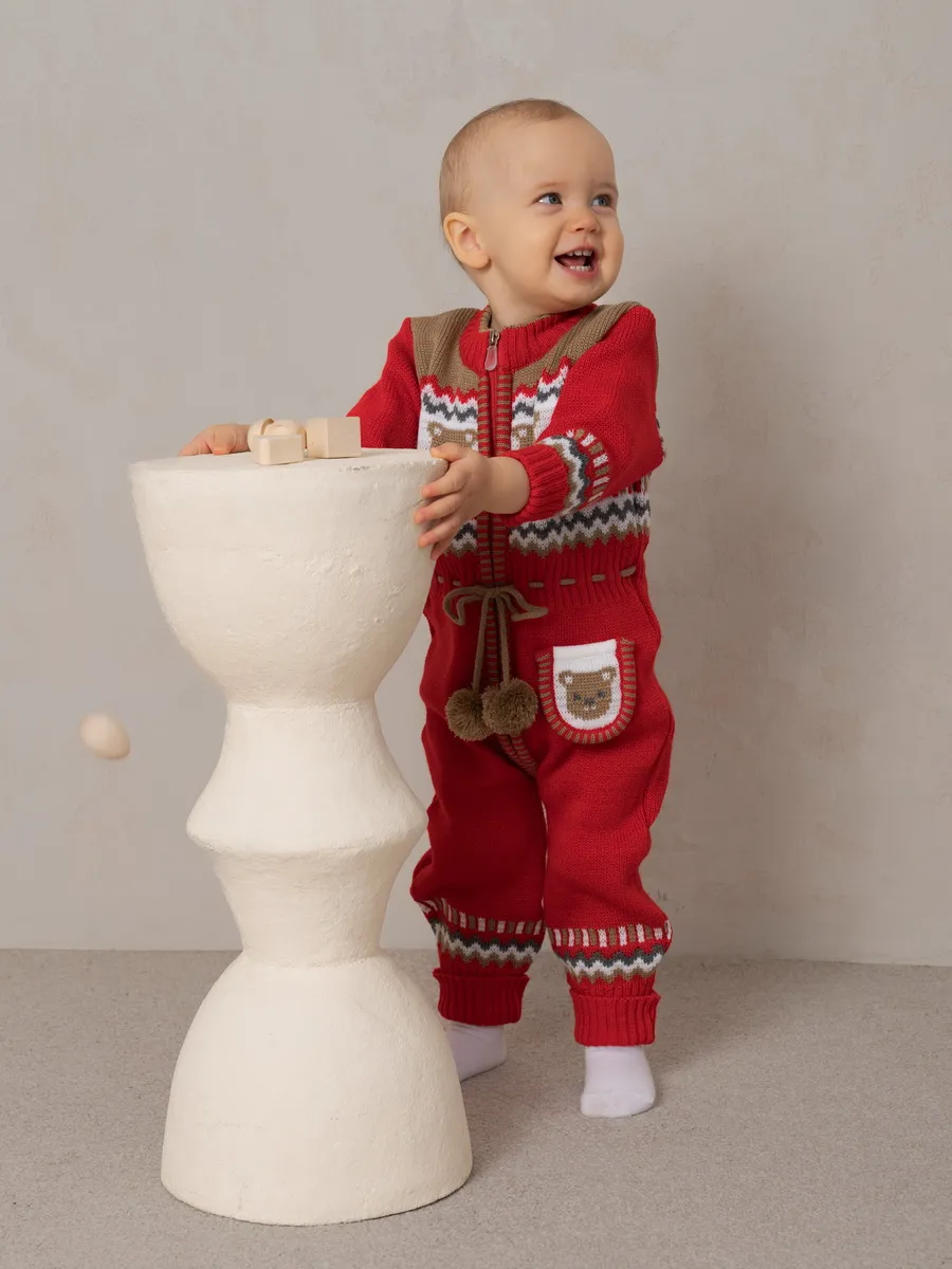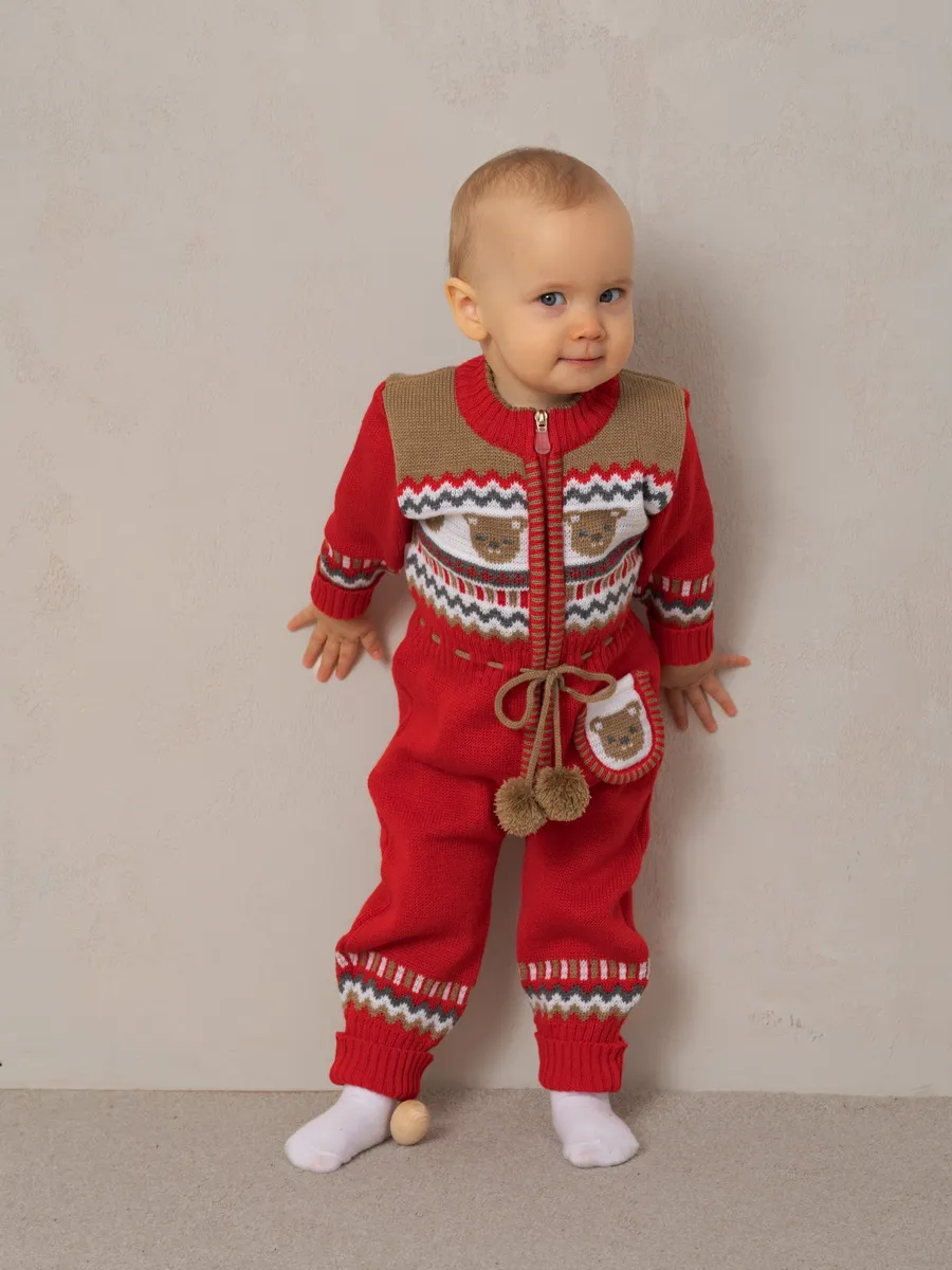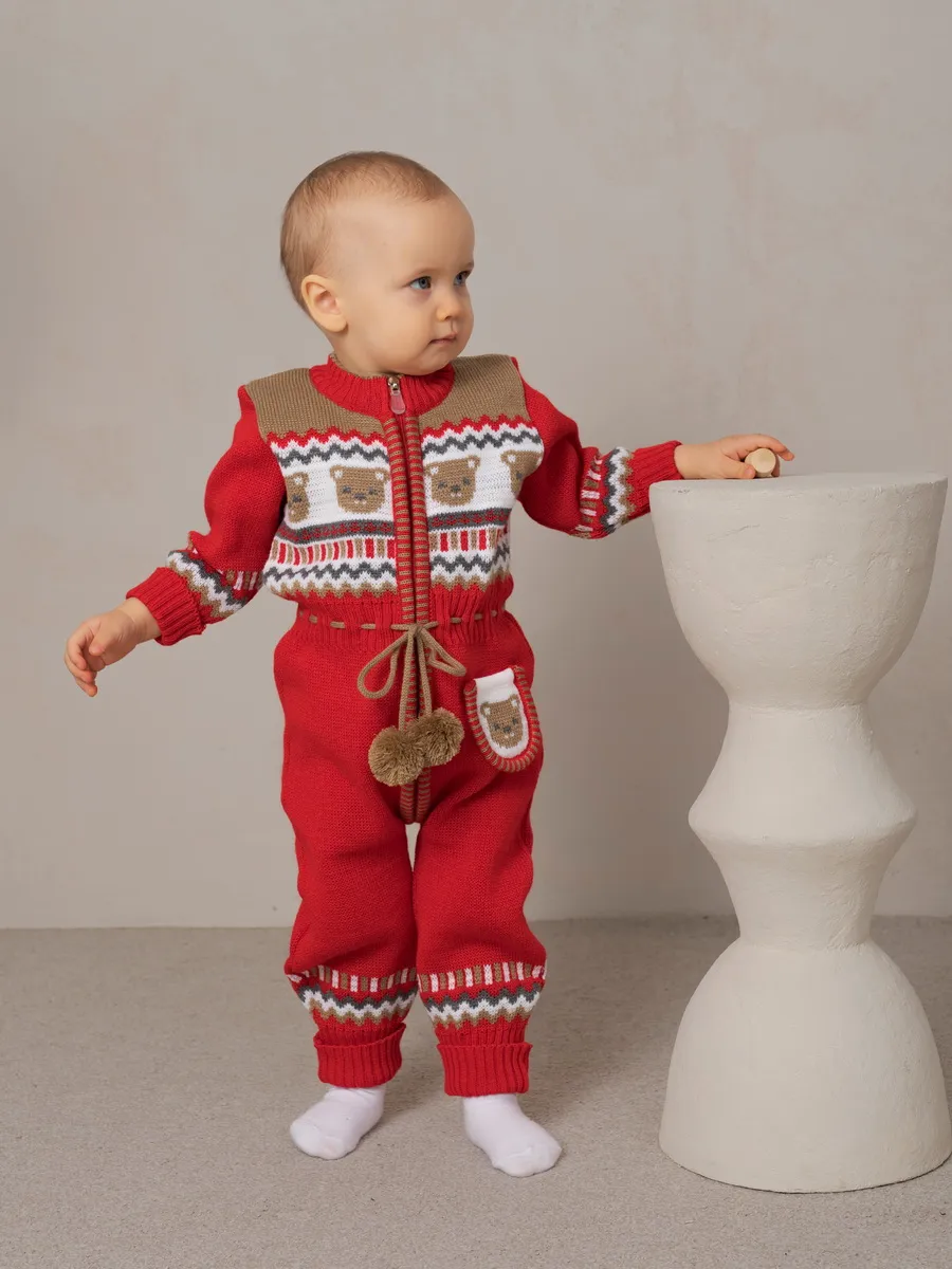 Милый комбинезон с мишками для малыша на молнии с помпончиками на кулиске не оставит равнодушным никого! Модель комбинезона универсальная и подойдет как для девочки так и для мальчика. Комбинезон для новорожденного совмещает в себе практические и эстетические характеристики: накладной кармашек с мордочкой мишки, помпончики-завязочки, отгибающиеся манжеты на рукавах и штанишках, которые можно регулировать по мере роста малыша, удобный воротничок, место для подгузника. Комбинезон подойдет зимой как поддева, а весной, осенью и прохладным летом как верхняя одежда. Бодик выполнен из гипоаллергенной пряжи, поэтому малышу будет в нем комфортно, а благодаря свободному крою не стесняет движения. Вязаный комбинезон выполнен в технике жаккард без протяжек нити на изнаночной стороне. Высокое качество, тщательность исполнения и ручная отделка являются неоспоримыми преимуществами. При выборе размера советуем руководствоваться таблицей в карточке товара.