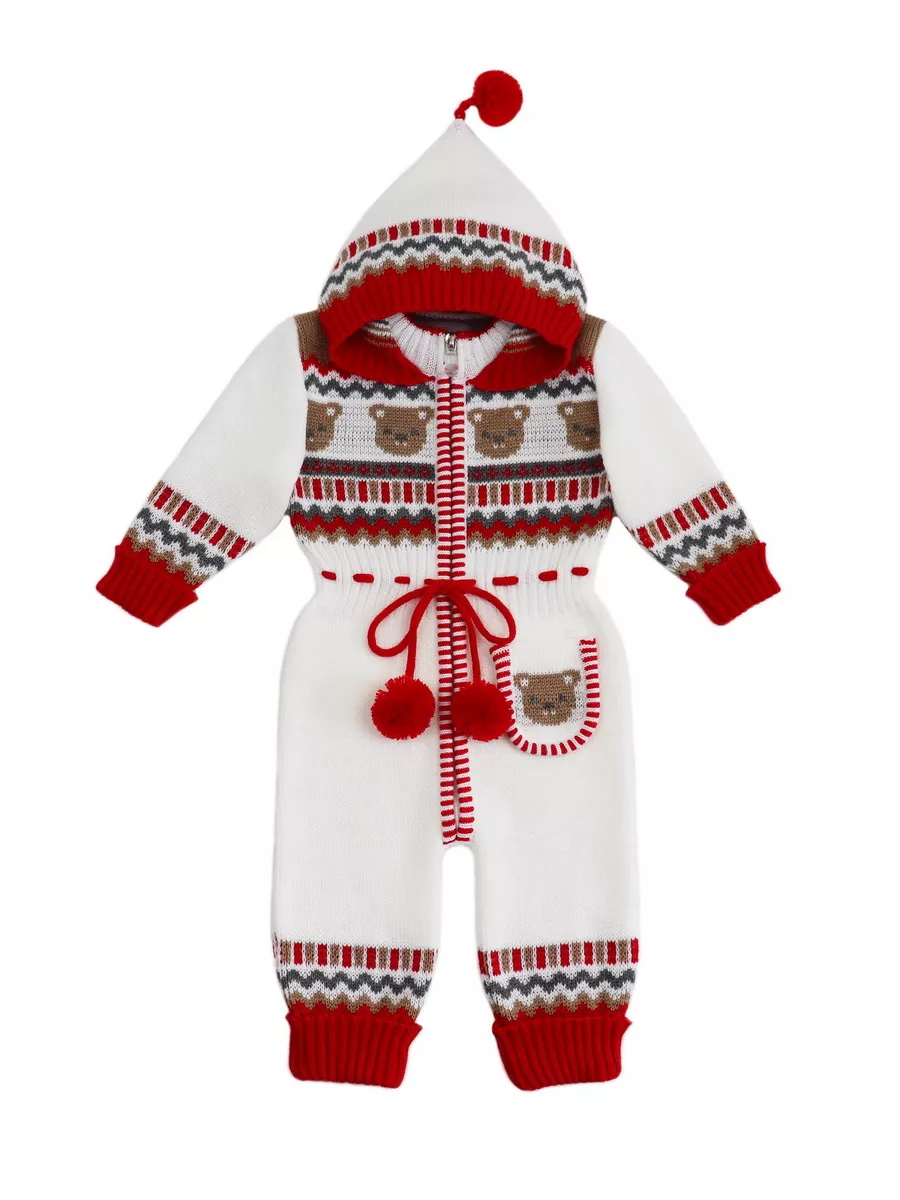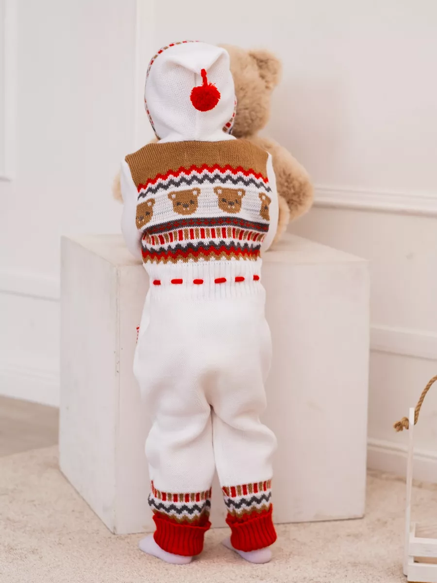 Милый комбинезон с мишками для малыша на молнии с помпончиком на макушке капюшона не оставит равнодушным никого! Модель комбинезона универсальная и подойдет как для девочки так и для мальчика. Комбинезон для новорожденного совмещает в себе практические и эстетические характеристики: накладной кармашек с мордочкой мишки, помпончики-завязочки, отгибающиеся манжеты на рукавах и штанишках, которые можно регулировать по мере роста малыша, удобный воротничок, место для подгузника. Комбинезон подойдет зимой как поддева, а весной, осенью и прохладным летом как верхняя одежда. Бодик выполнен из гипоаллергенной пряжи, поэтому малышу будет в нем комфортно, а благодаря свободному крою не стесняет движения. Вязаный комбинезон выполнен в технике жаккард без протяжек нити на изнаночной стороне. Высокое качество, тщательность исполнения и ручная отделка являются неоспоримыми преимуществами. При выборе размера советуем руководствоваться таблицей в карточке товара.