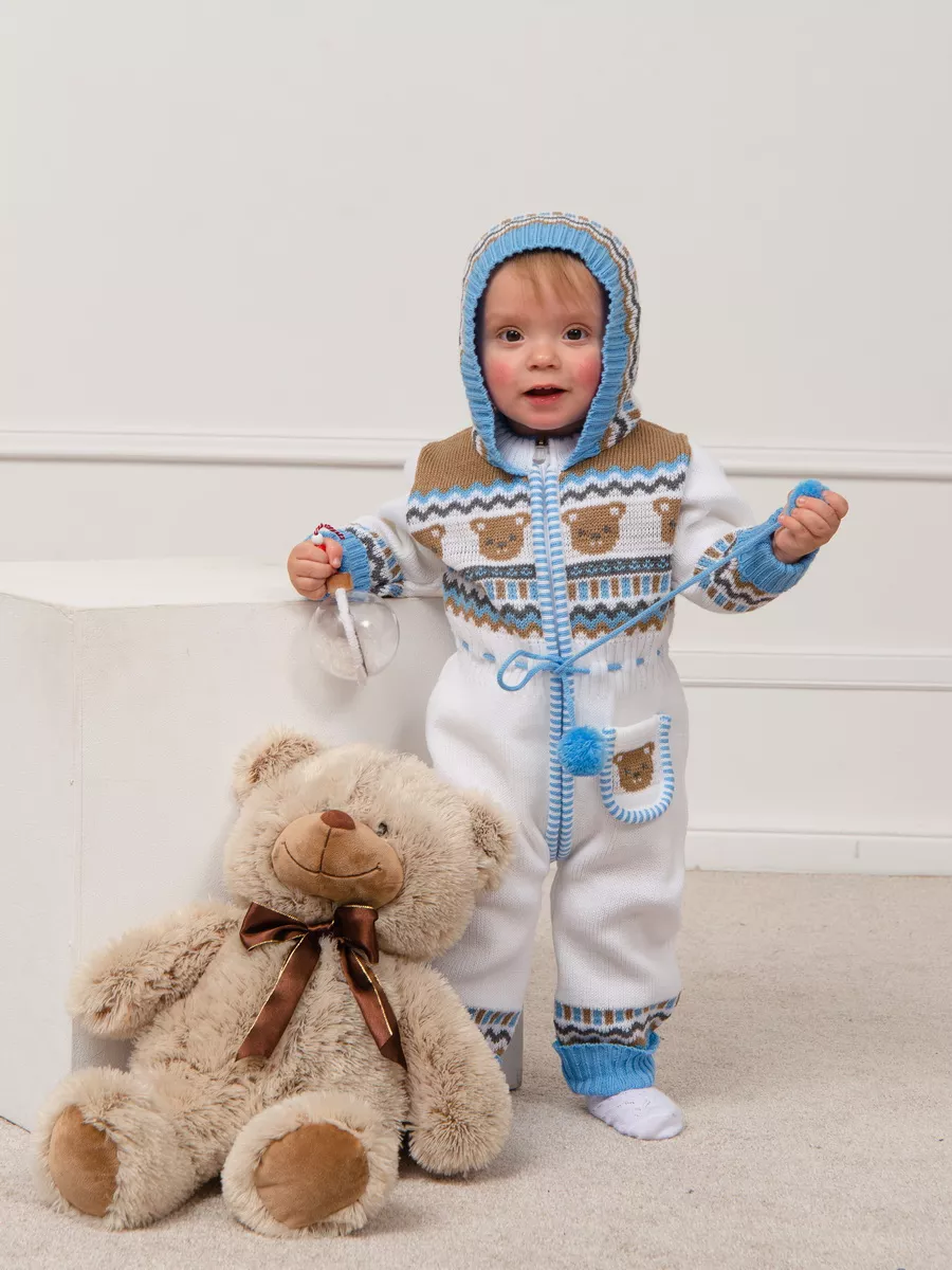 Милый комбинезон с мишками для малыша на молнии с помпончиком на макушке капюшона не оставит равнодушным никого! Модель комбинезона универсальная и подойдет как для девочки так и для мальчика. Комбинезон для новорожденного совмещает в себе практические и эстетические характеристики: накладной кармашек с мордочкой мишки, помпончики-завязочки, отгибающиеся манжеты на рукавах и штанишках, которые можно регулировать по мере роста малыша, удобный воротничок, место для подгузника. Комбинезон подойдет зимой как поддева, а весной, осенью и прохладным летом как верхняя одежда. Бодик выполнен из гипоаллергенной пряжи, поэтому малышу будет в нем комфортно, а благодаря свободному крою не стесняет движения. Вязаный комбинезон выполнен в технике жаккард без протяжек нити на изнаночной стороне. Высокое качество, тщательность исполнения и ручная отделка являются неоспоримыми преимуществами. При выборе размера советуем руководствоваться таблицей в карточке товара.