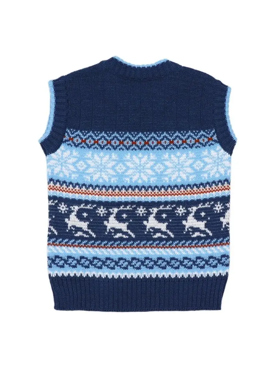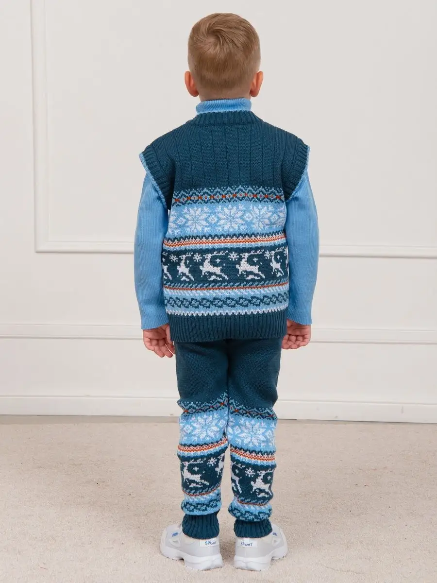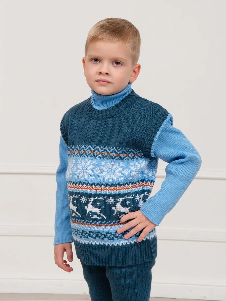 Детская вязаная жилетка обязательно должна быть в повседневном гардеробе ребенка. Жилет выполнен в технике жаккард без протяжек нити на изнаночной стороне. Модель вязаной жилетки универсальная и подойдет как для девочки, так и для мальчика. Свободный крой жилетки обеспечивает идеальную посадку и эффектно дополнит многослойный образ с водолазкой, рубашкой или блузкой в сочетании с брюками, джинсами или юбкой. Вязаный жилет подойдет для повседневной носки в школу и детский сад, для дома и для прогулок в любое время года. При выборе размера советуем руководствоваться таблицей в карточке товара.