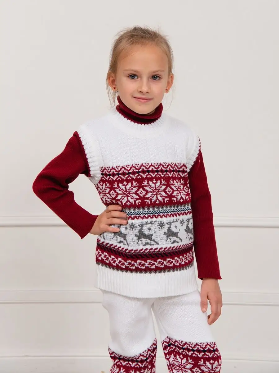 Детская вязаная жилетка обязательно должна быть в повседневном гардеробе ребенка. Жилет выполнен в технике жаккард без протяжек нити на изнаночной стороне. Модель вязаной жилетки универсальная и подойдет как для девочки, так и для мальчика. Свободный крой жилетки обеспечивает идеальную посадку и эффектно дополнит многослойный образ с водолазкой, рубашкой или блузкой в сочетании с брюками, джинсами или юбкой. Вязаный жилет подойдет для повседневной носки в школу и детский сад, для дома и для прогулок в любое время года. При выборе размера советуем руководствоваться таблицей в карточке товара.