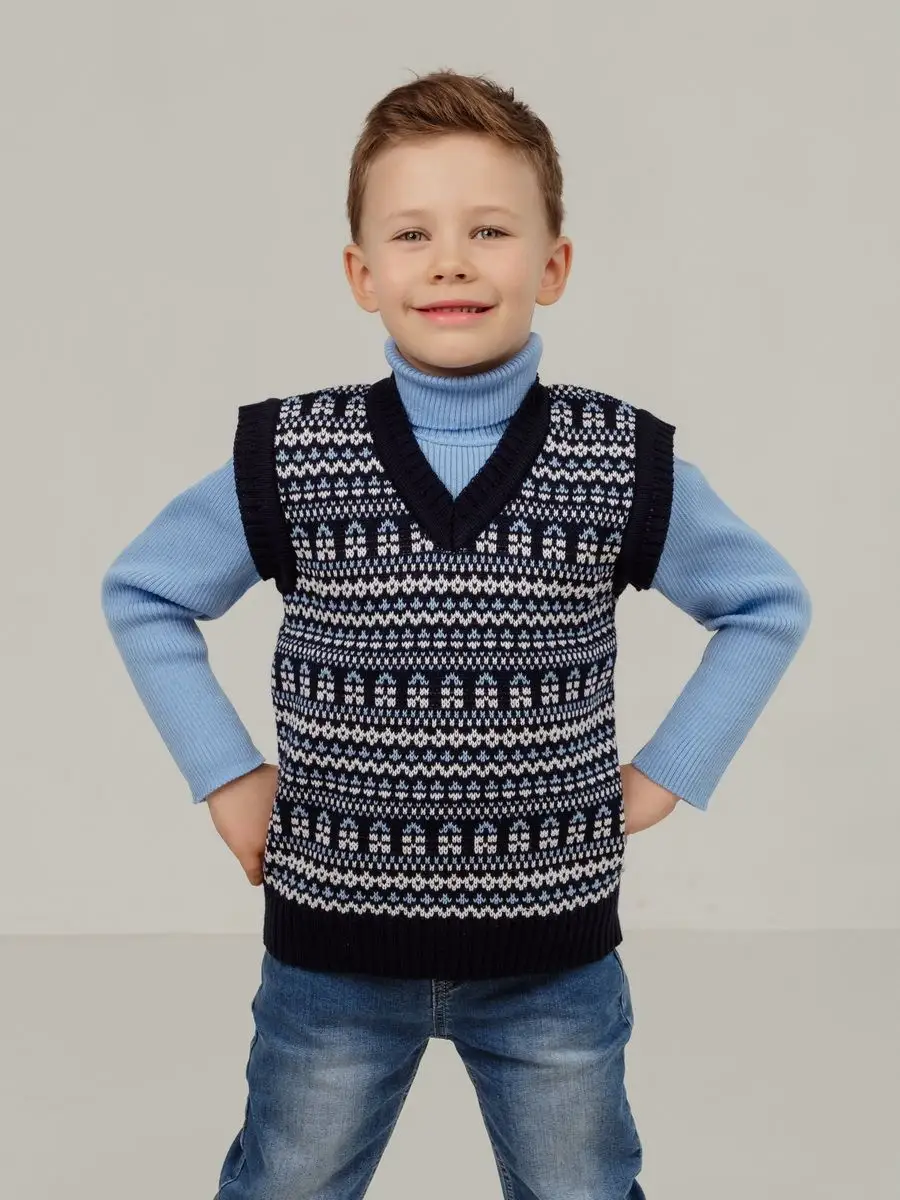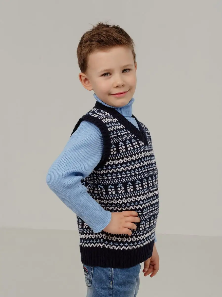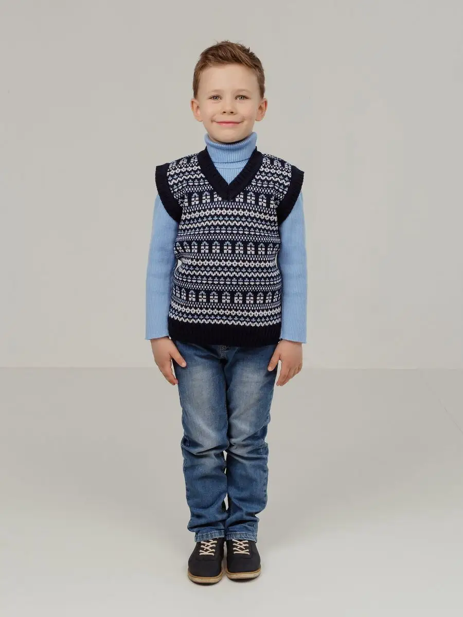 Детская вязаная жилетка обязательно должна быть в повседневном гардеробе ребенка. Жилет выполнен в технике жаккард без протяжек нити на изнаночной стороне. Модель вязаной жилетки универсальная и подойдет как для девочки, так и для мальчика. Свободный крой жилетки обеспечивает идеальную посадку и эффектно дополнит многослойный образ с водолазкой, рубашкой или блузкой в сочетании с брюками, джинсами или юбкой. Вязаный жилет подойдет для повседневной носки в школу и детский сад, для дома и для прогулок в любое время года. При выборе размера советуем руководствоваться таблицей в карточке товара.