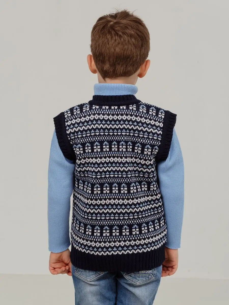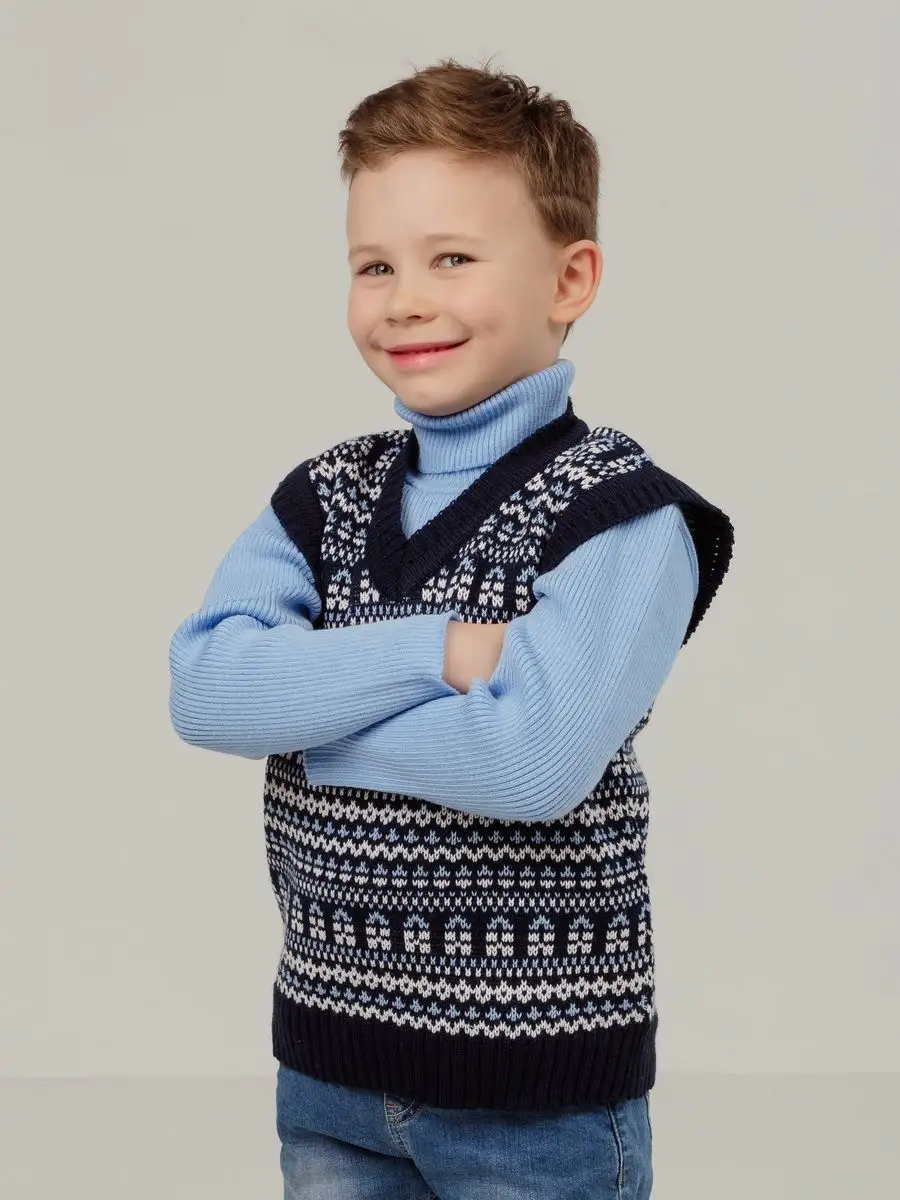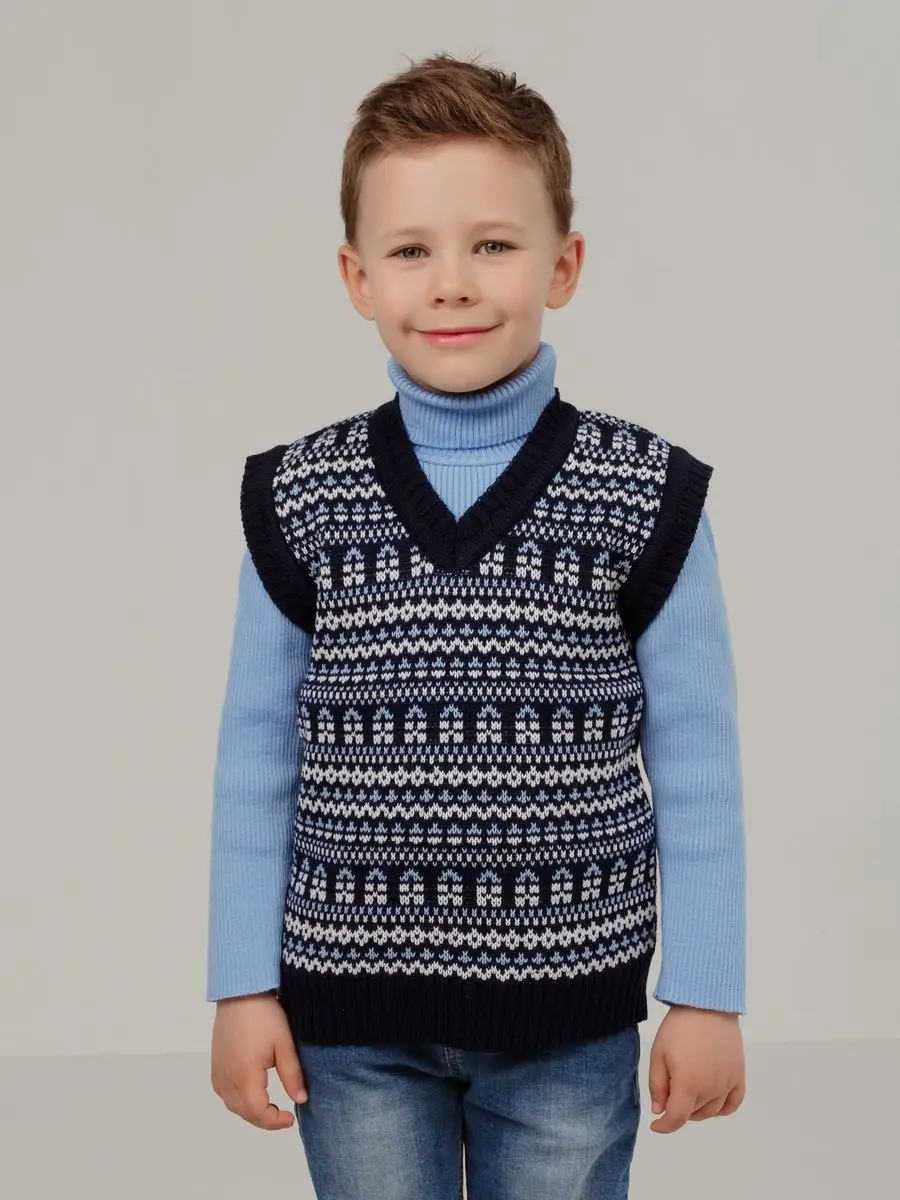 Детская вязаная жилетка обязательно должна быть в повседневном гардеробе ребенка. Жилет выполнен в технике жаккард без протяжек нити на изнаночной стороне. Модель вязаной жилетки универсальная и подойдет как для девочки, так и для мальчика. Свободный крой жилетки обеспечивает идеальную посадку и эффектно дополнит многослойный образ с водолазкой, рубашкой или блузкой в сочетании с брюками, джинсами или юбкой. Вязаный жилет подойдет для повседневной носки в школу и детский сад, для дома и для прогулок в любое время года. При выборе размера советуем руководствоваться таблицей в карточке товара.