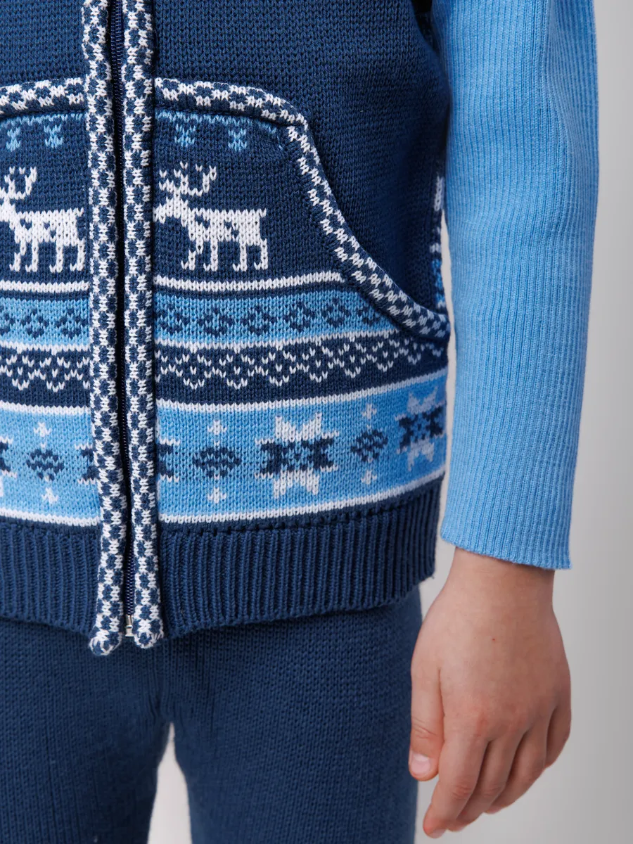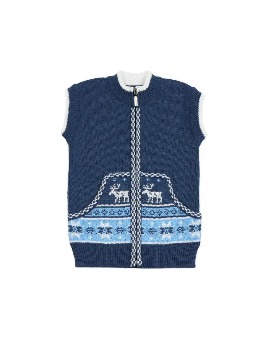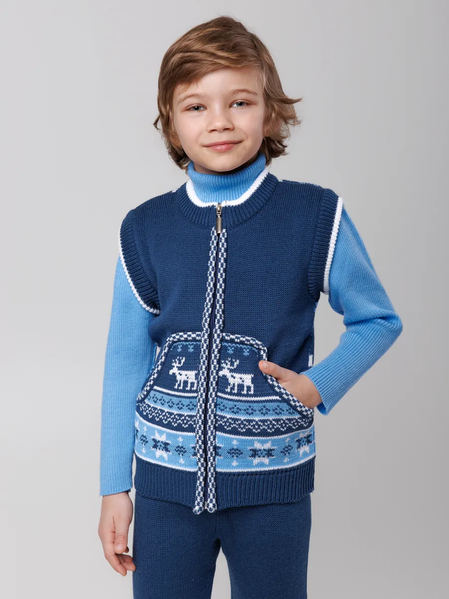 Детская вязаная жилетка на молнии с карманами должна быть в повседневном гардеробе ребенка. Жилет выполнен в технике жаккард без протяжек нити на изнаночной стороне. Модель вязаной жилетки универсальная и подойдет как для девочки, так и для мальчика. Особенностью модели являются карманы "кенгуру", которые делают жилетку более интересной и придают функциональности. Свободный крой жилетки обеспечивает идеальную посадку и эффектно дополнит многослойный образ с водолазкой, рубашкой или блузкой в сочетании с брюками, джинсами или юбкой. Вязаный жилет подойдет для повседневной носки в школу и детский сад, для дома и для прогулок в любое время года. Высокое качество, тщательность исполнения и ручная отделка являются неоспоримыми преимуществами. При выборе размера советуем руководствоваться таблицей в карточке товара.